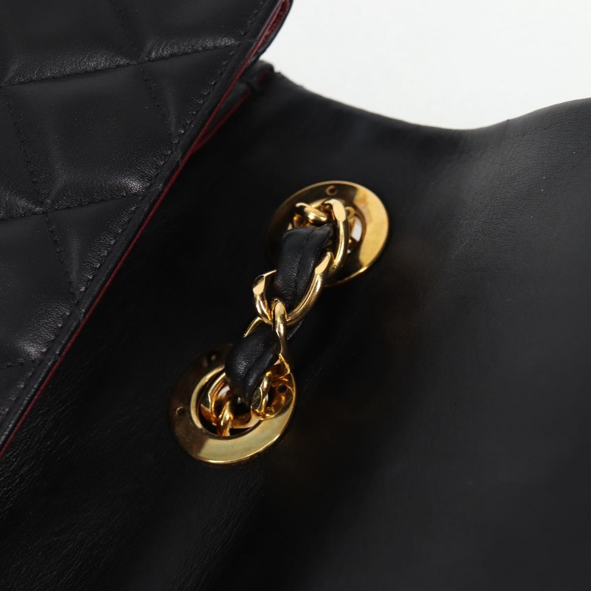 CHANEL Big Matelasse Chain Shoulder Bag Lamb Skin Black Gold CC Auth ki5773V
