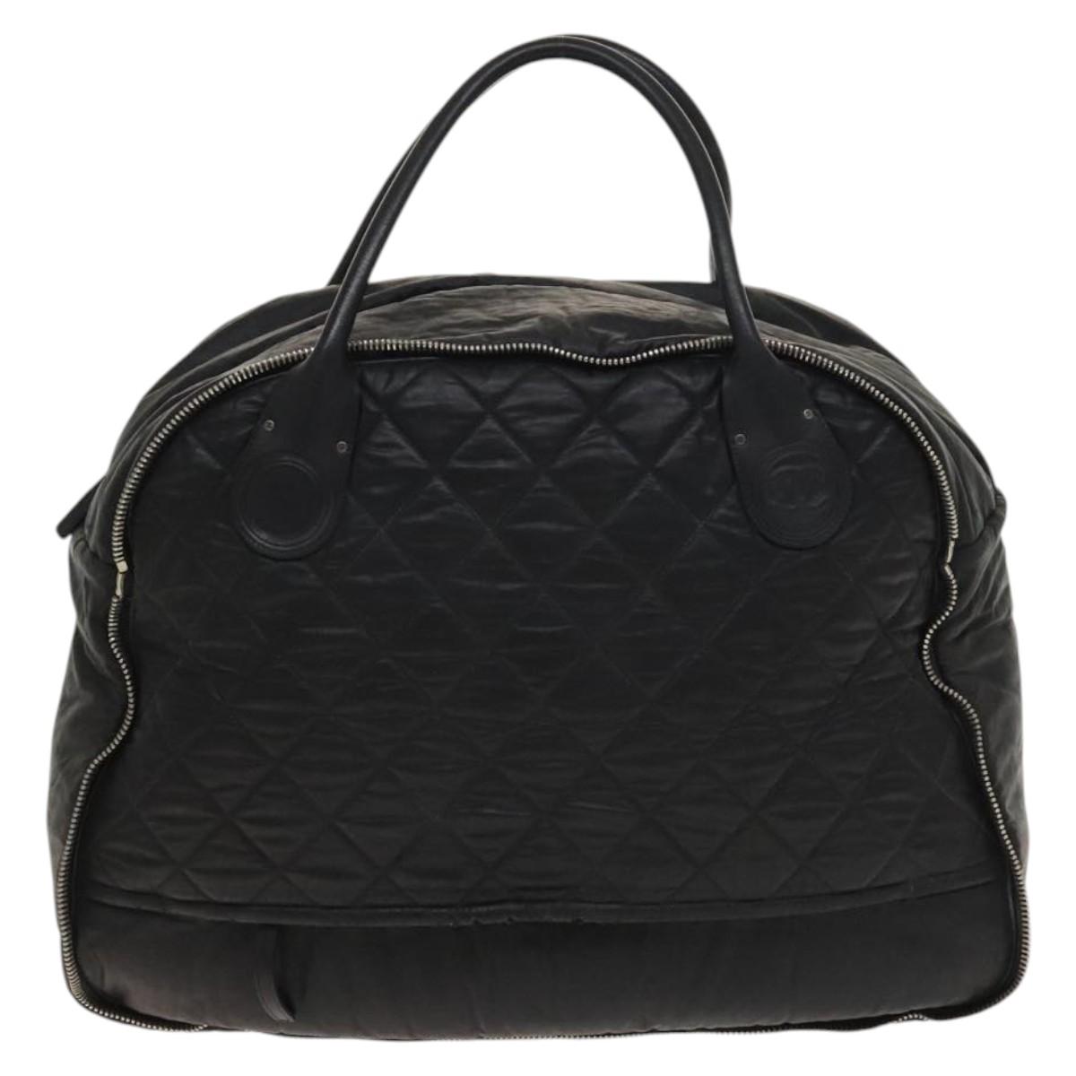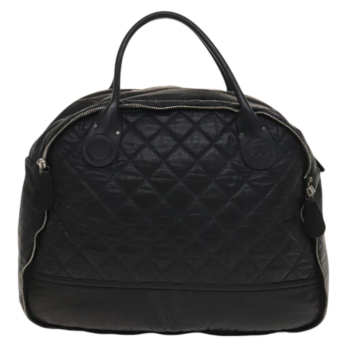 CHANEL Boston Bag Coated Canvas Black Silver CC Auth bs29253