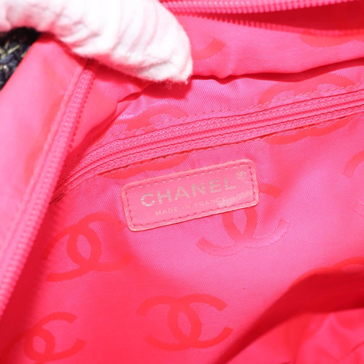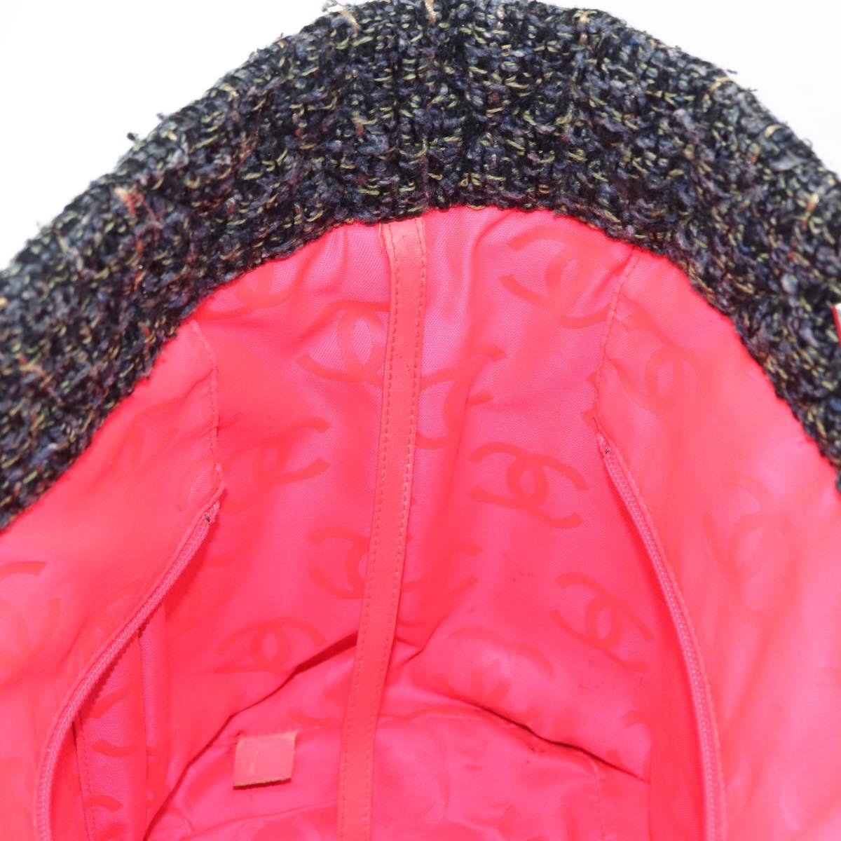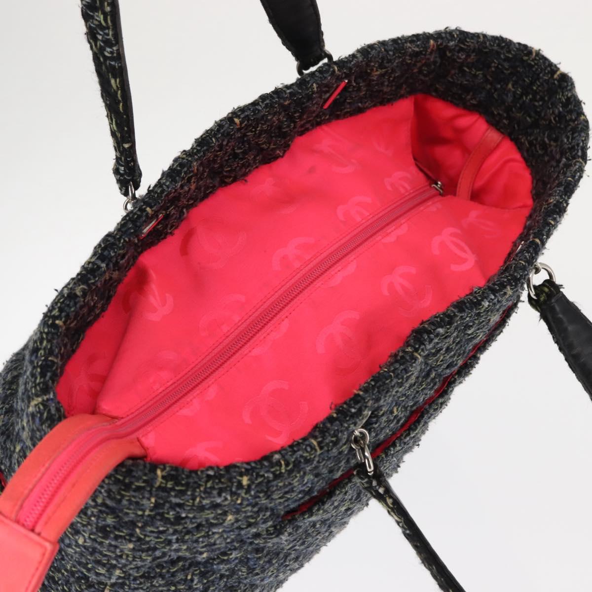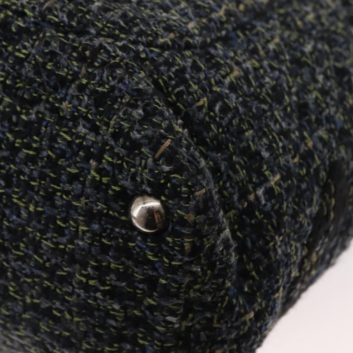 CHANEL Cambon Line Tote Bag tweed Navy Silver CC Auth bs29930