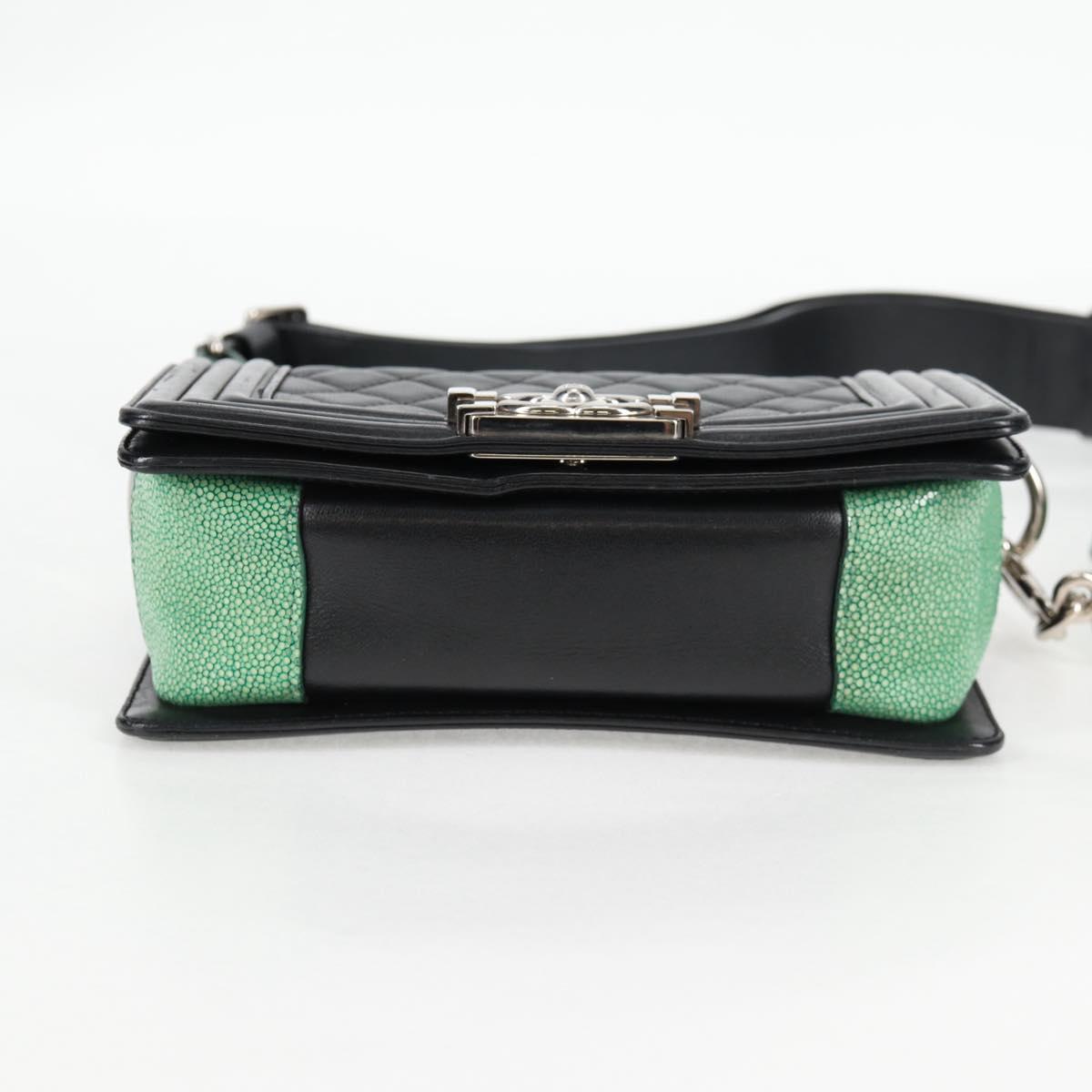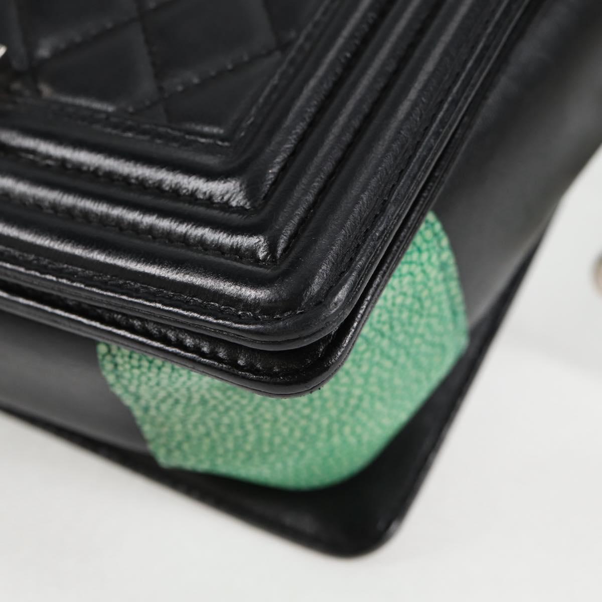 CHANEL Chain Boy Chanel Shoulder Bag Lamb Skin Black Silver CC Auth PP648M