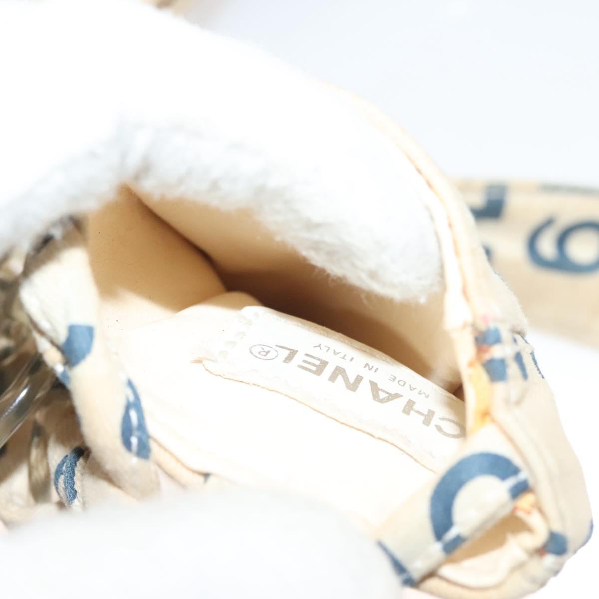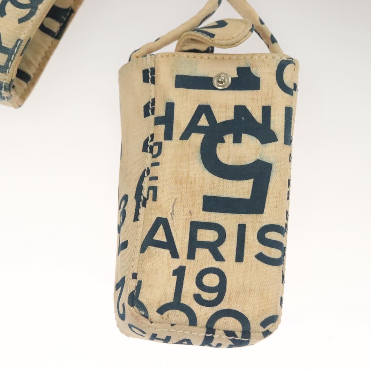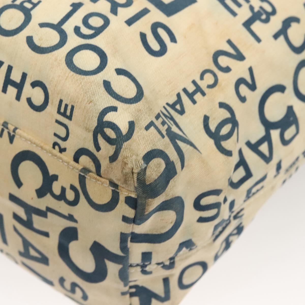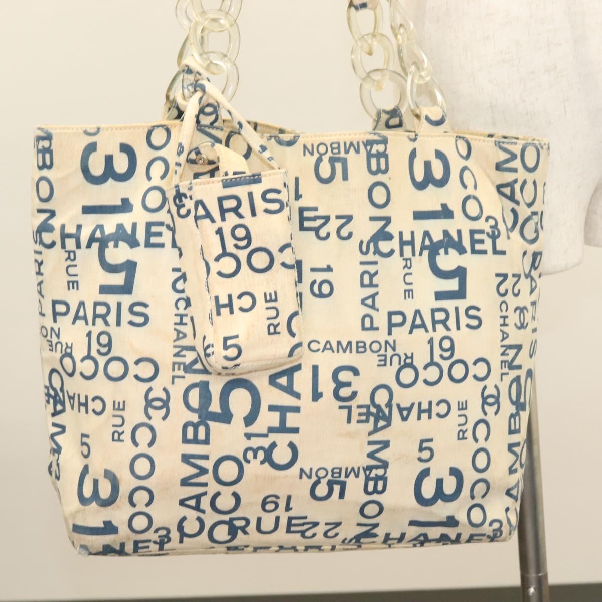 CHANEL Chain Bysy Line Tote Bag Canvas Plastic White clear CC Auth 130966
