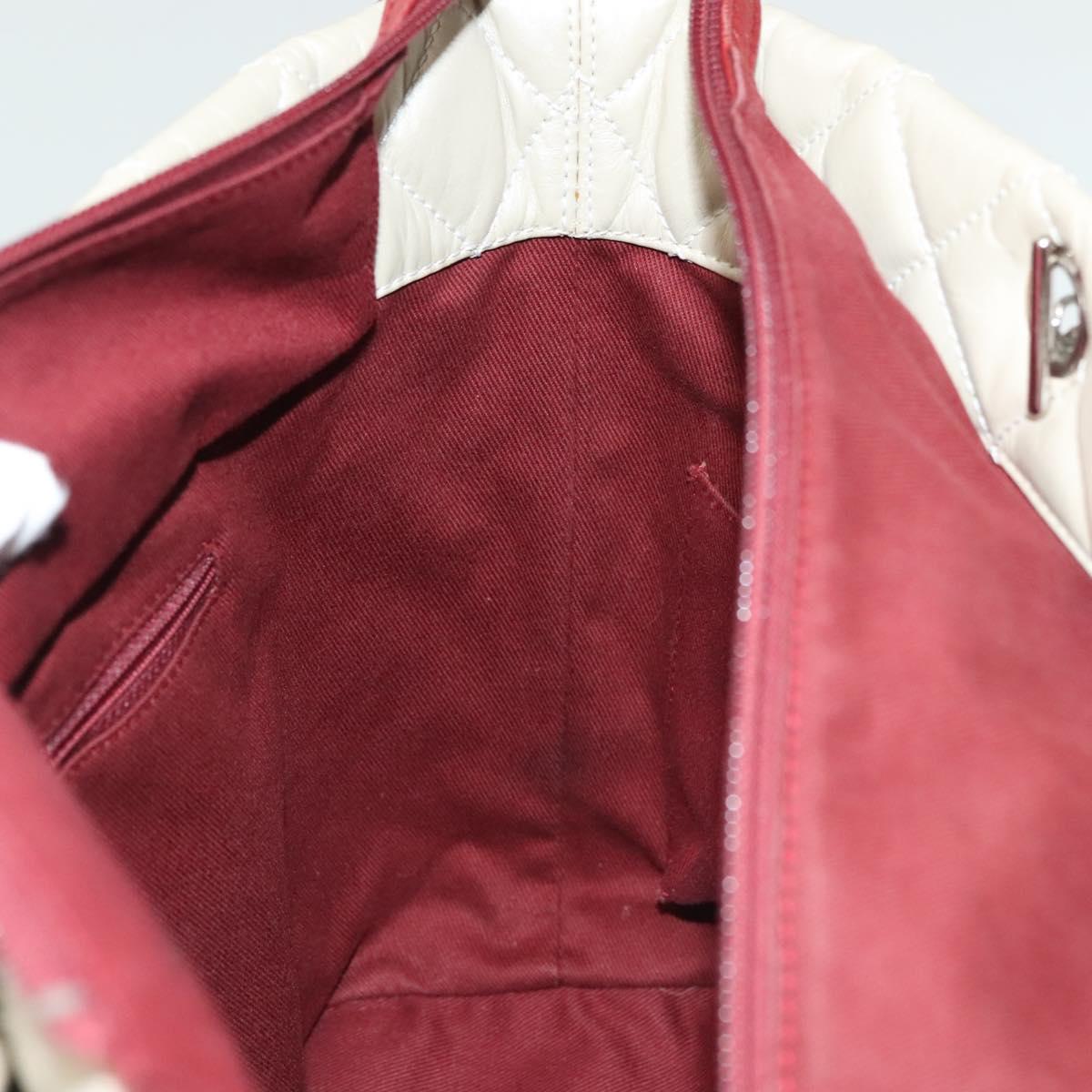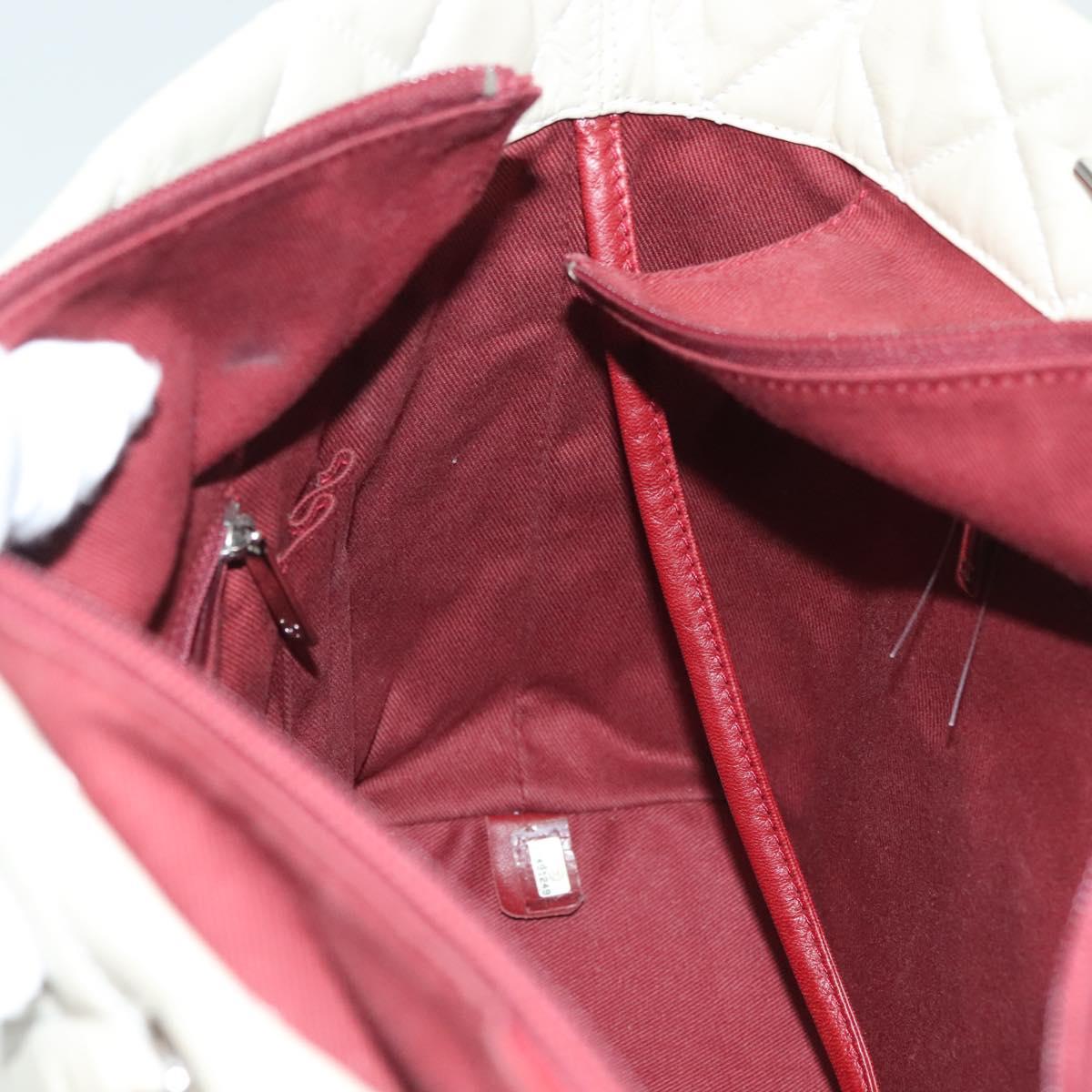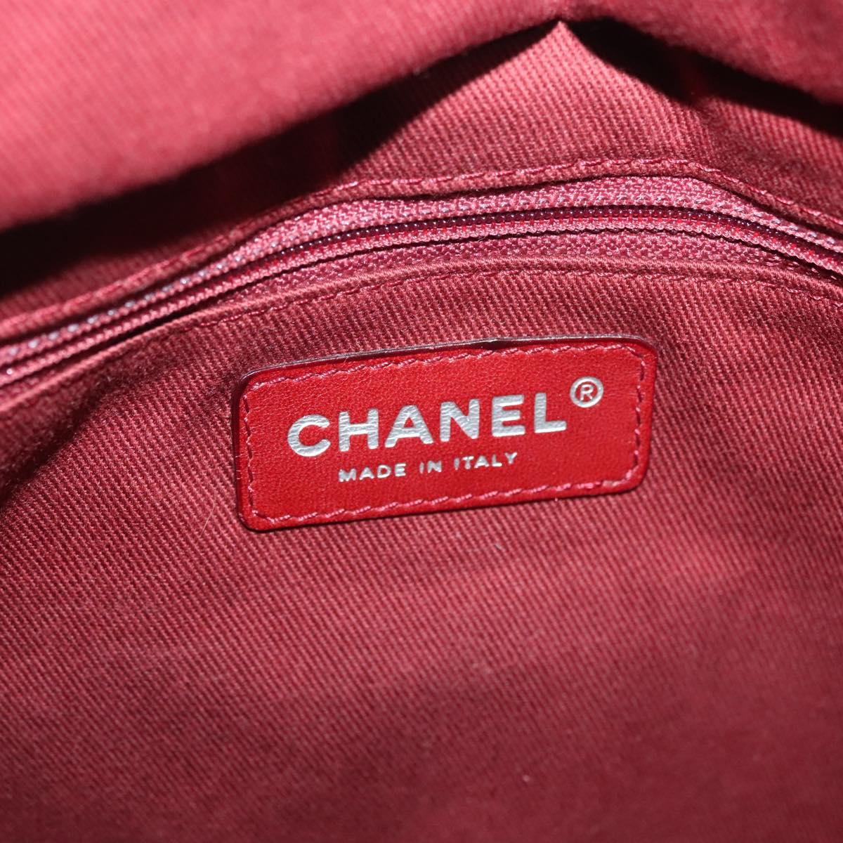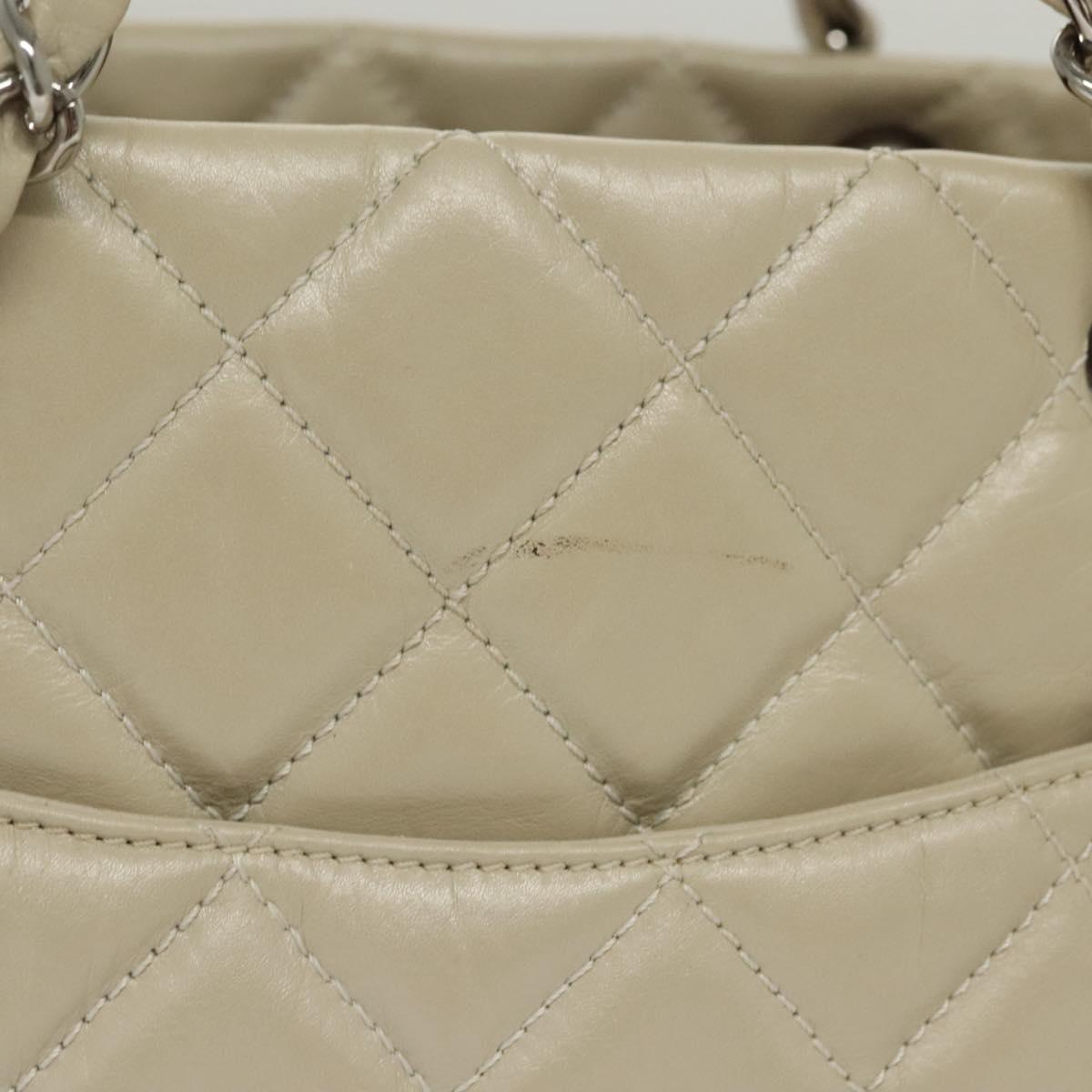 CHANEL Chain Cambon Line Cotton Club Bag Leather Beige Silver CC Auth bs28856