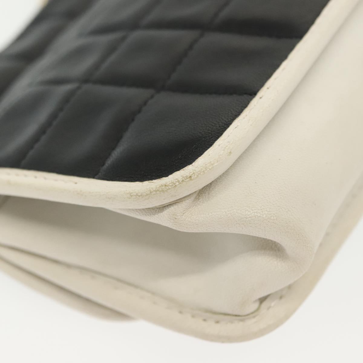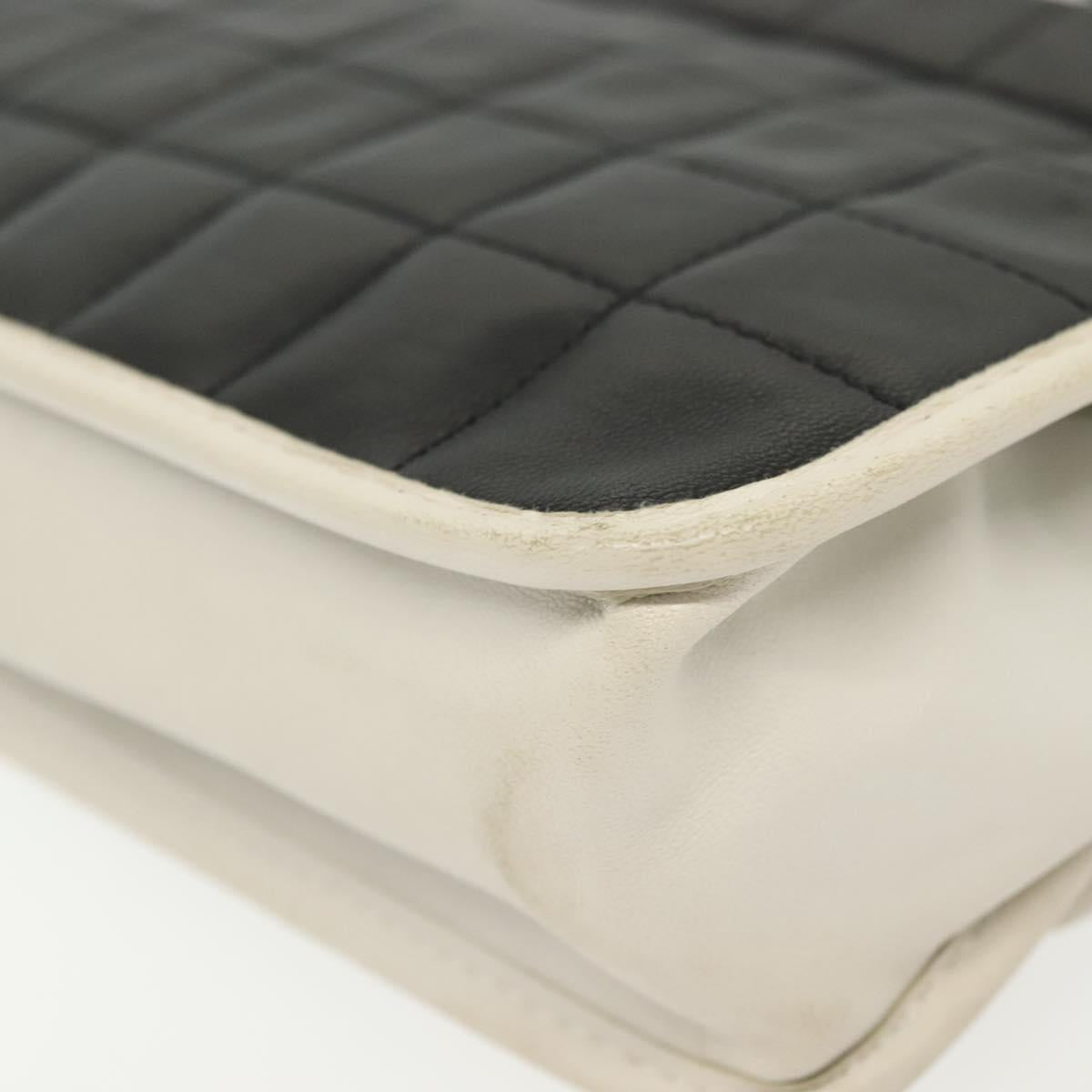 CHANEL Chain Choco Bar Line Bag Lamb Skin Black White gold CC Auth 141256