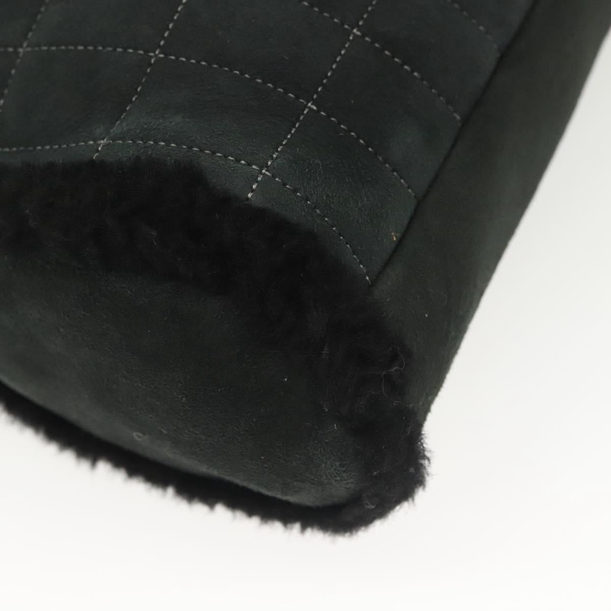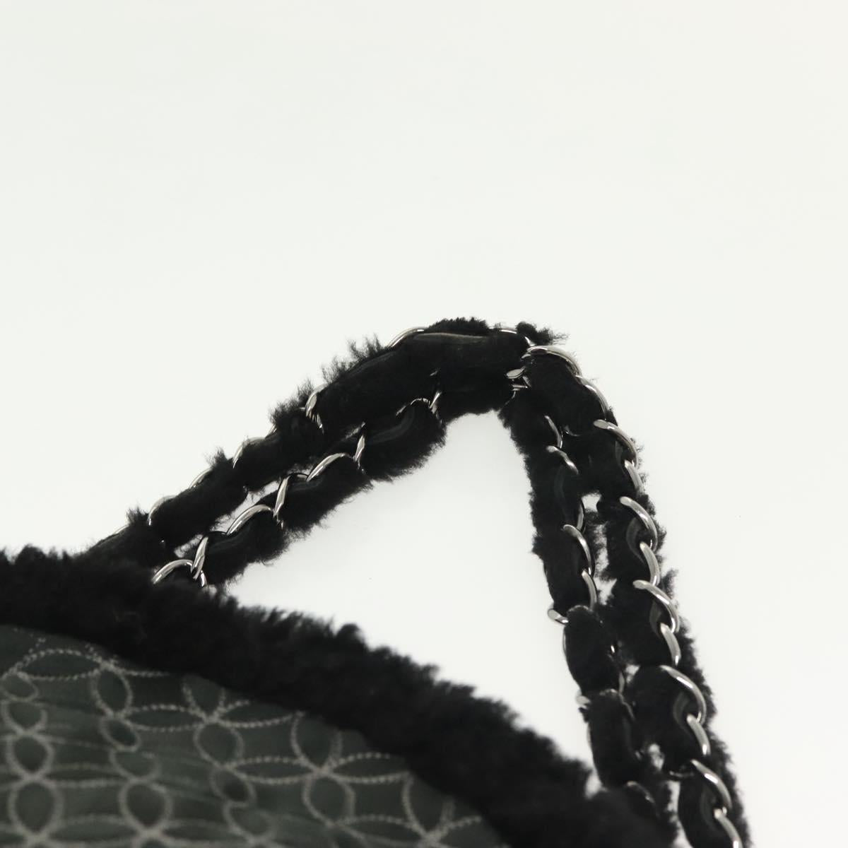 CHANEL Chain Choco Bar Shoulder Bag Mouton Black Silver CC Auth 140140