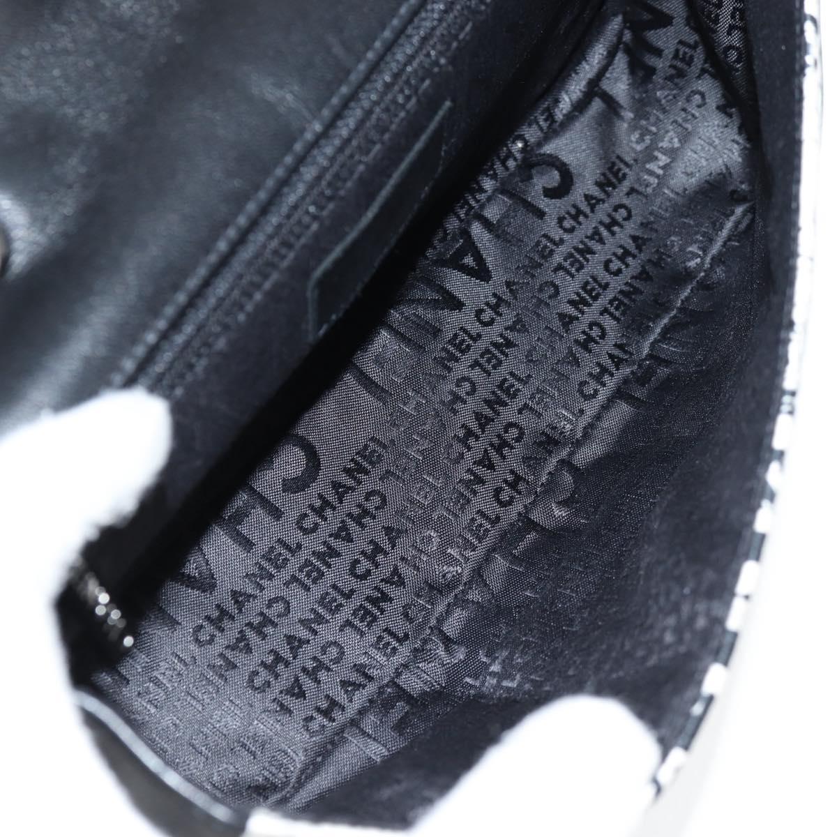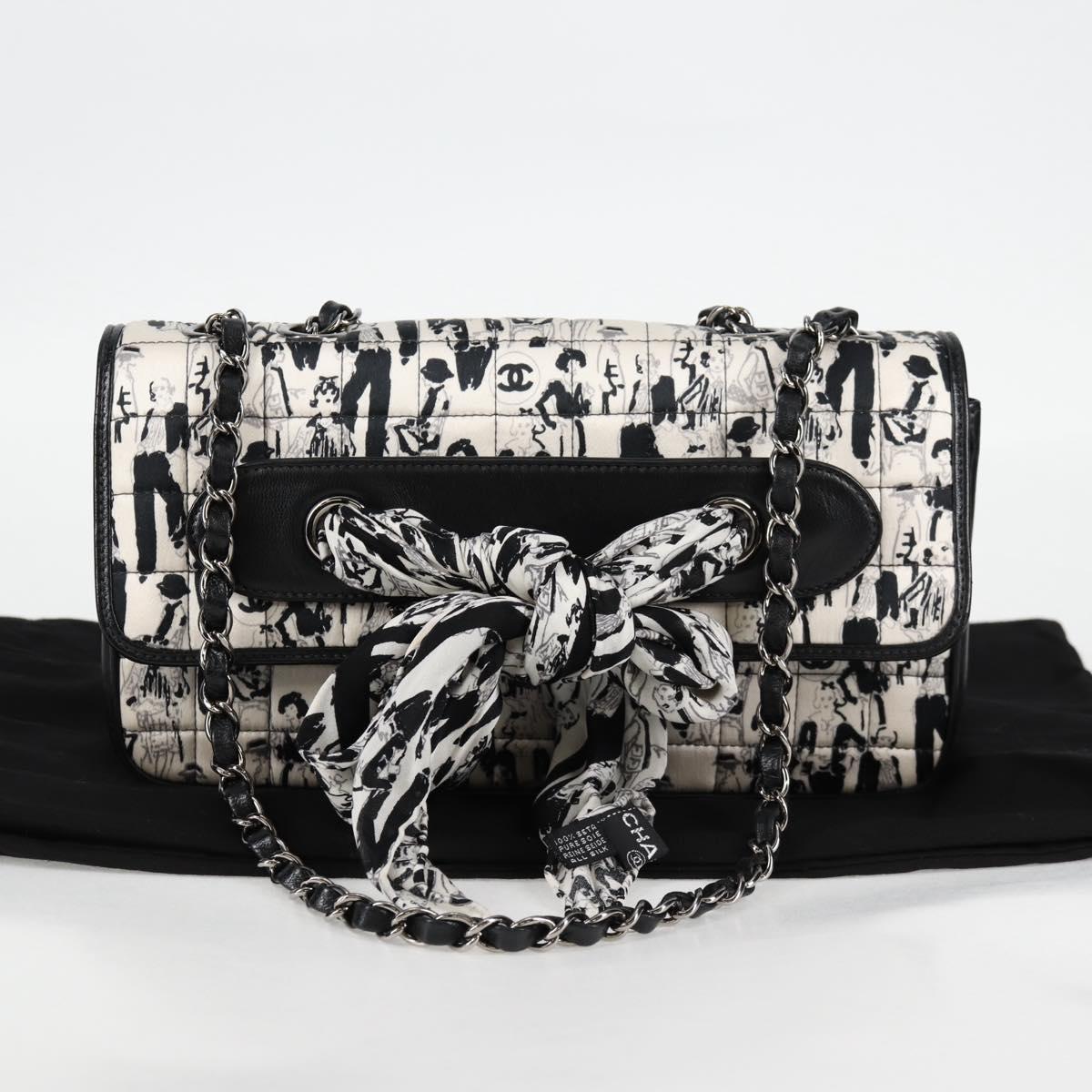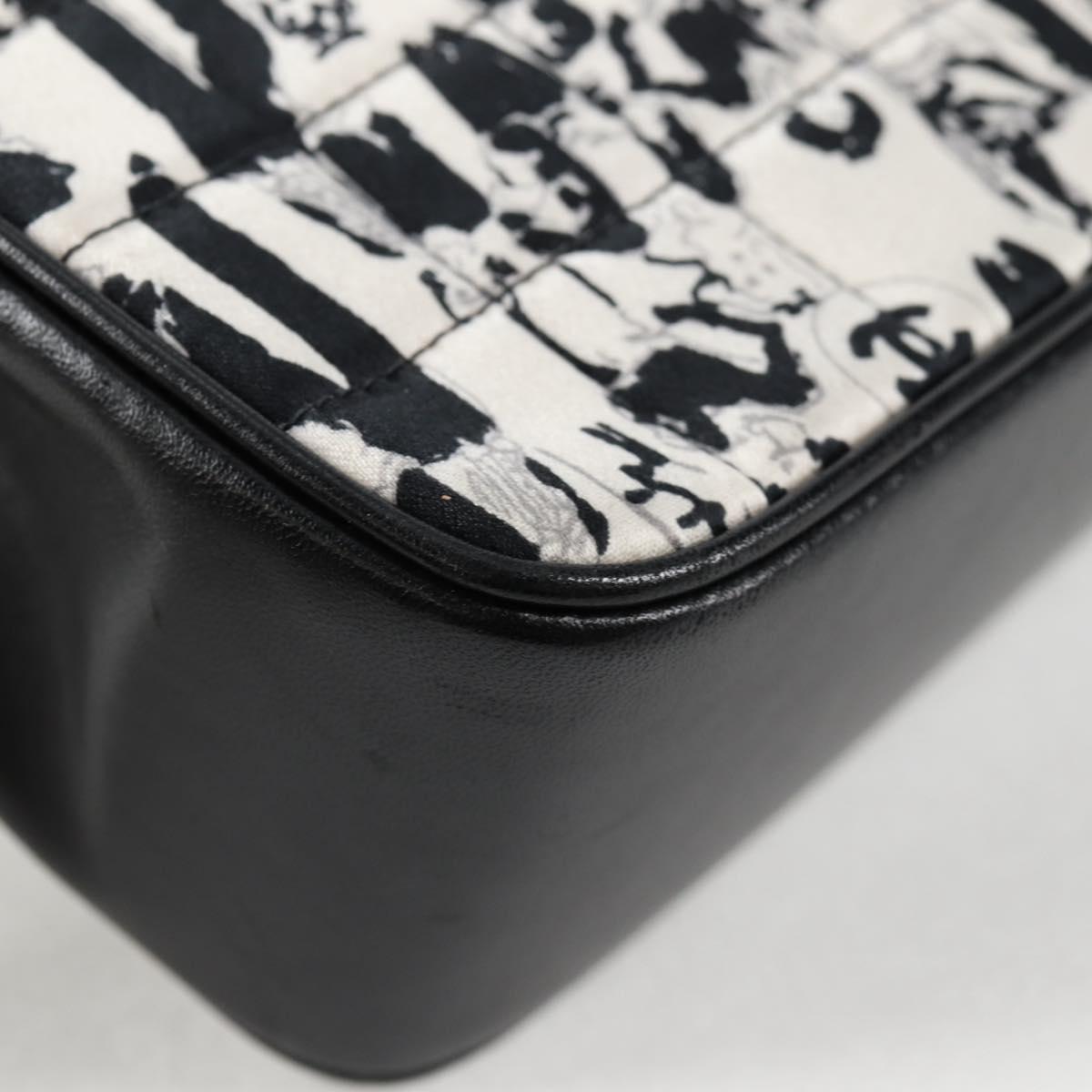 CHANEL Chain COCO Mark Choco Bar Shoulder Bag Satin Black White CC Auth 128055V
