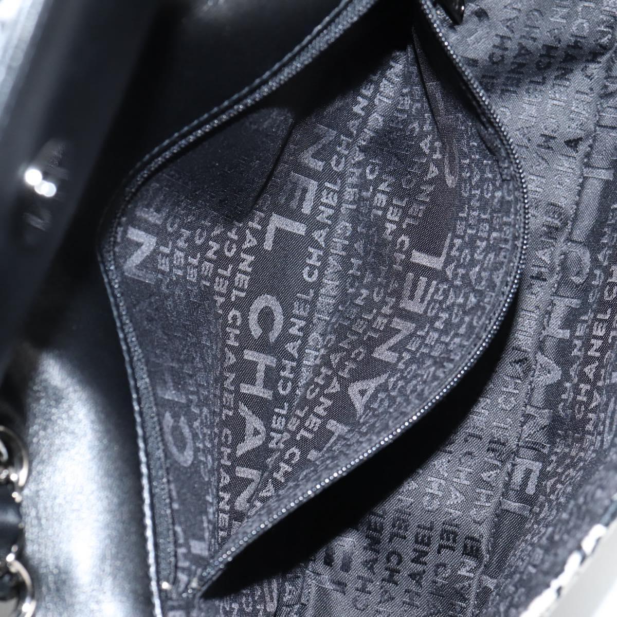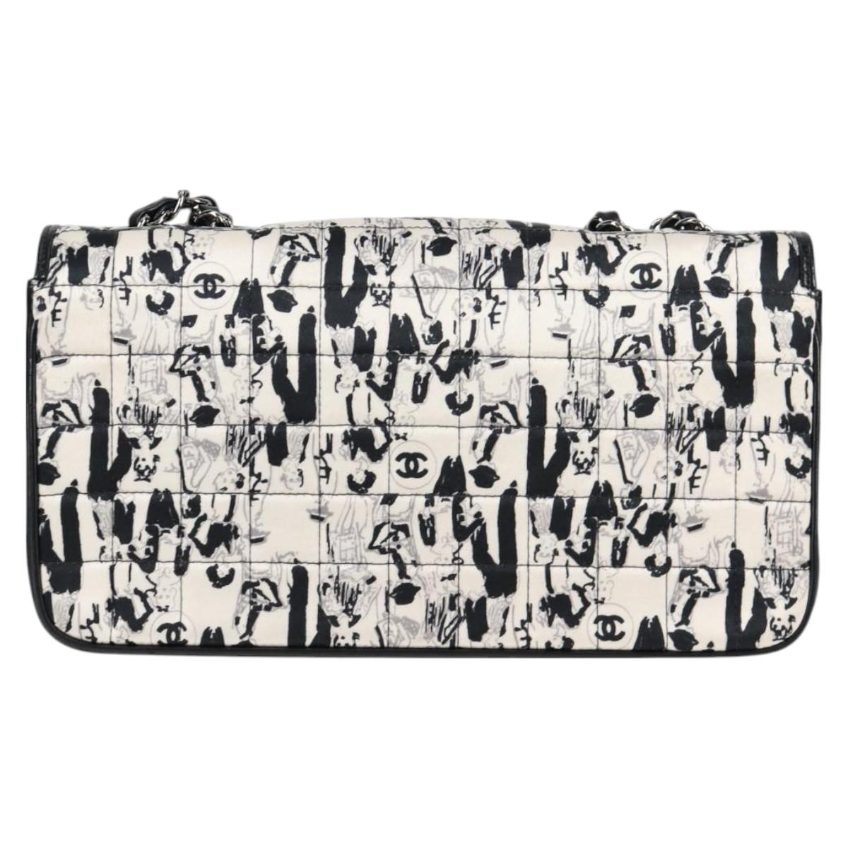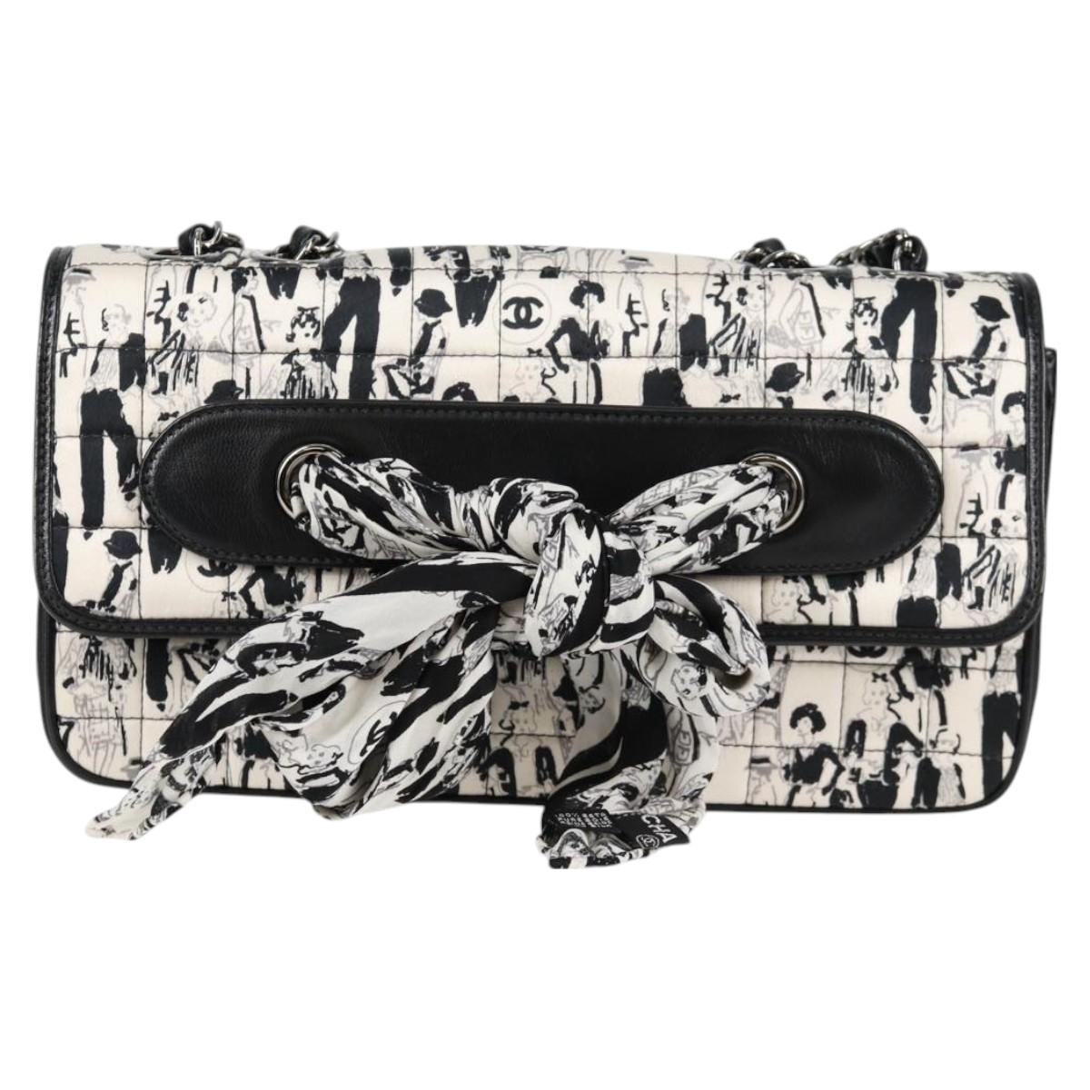 CHANEL Chain COCO Mark Choco Bar Shoulder Bag Satin Black White CC Auth 128055V