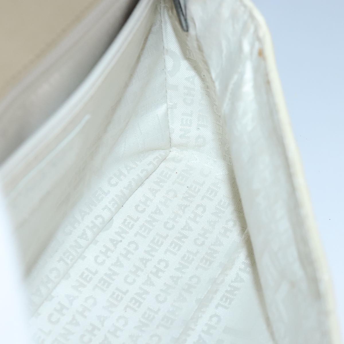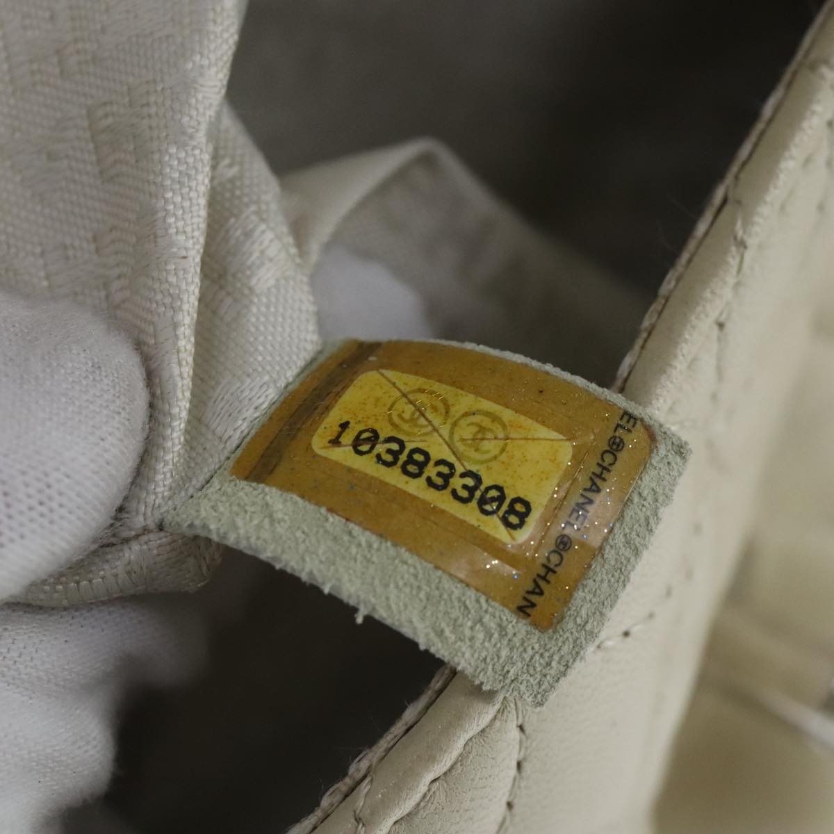 CHANEL Chain Flower Stitch Shoulder Bag Lamb Skin Beige Silver CC Auth bs19654