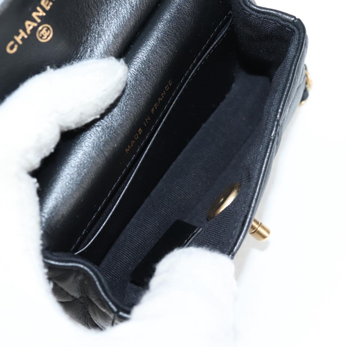 CHANEL Chain Pouch Shoulder Bag Lamb Skin Black Gold CC Auth 128104SM