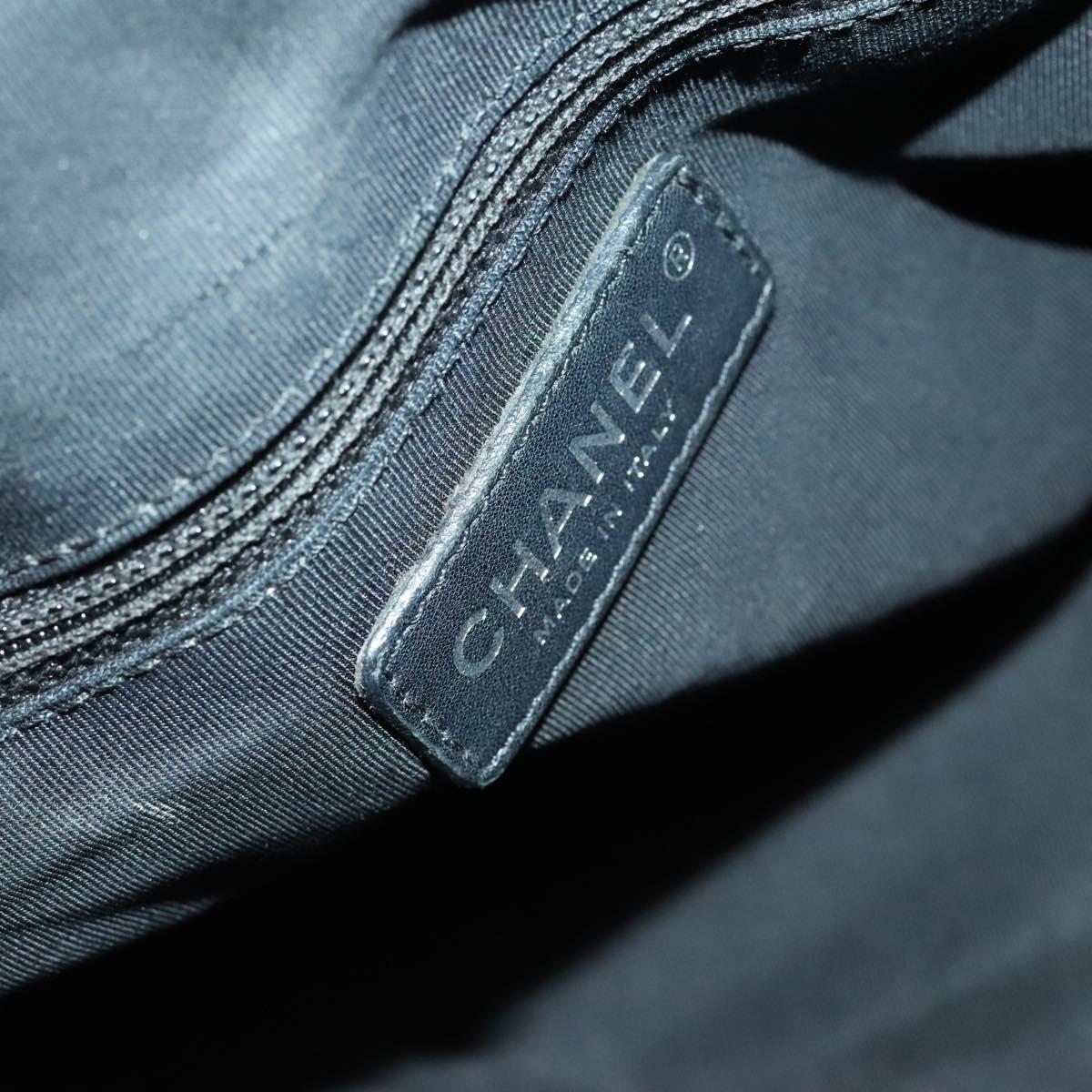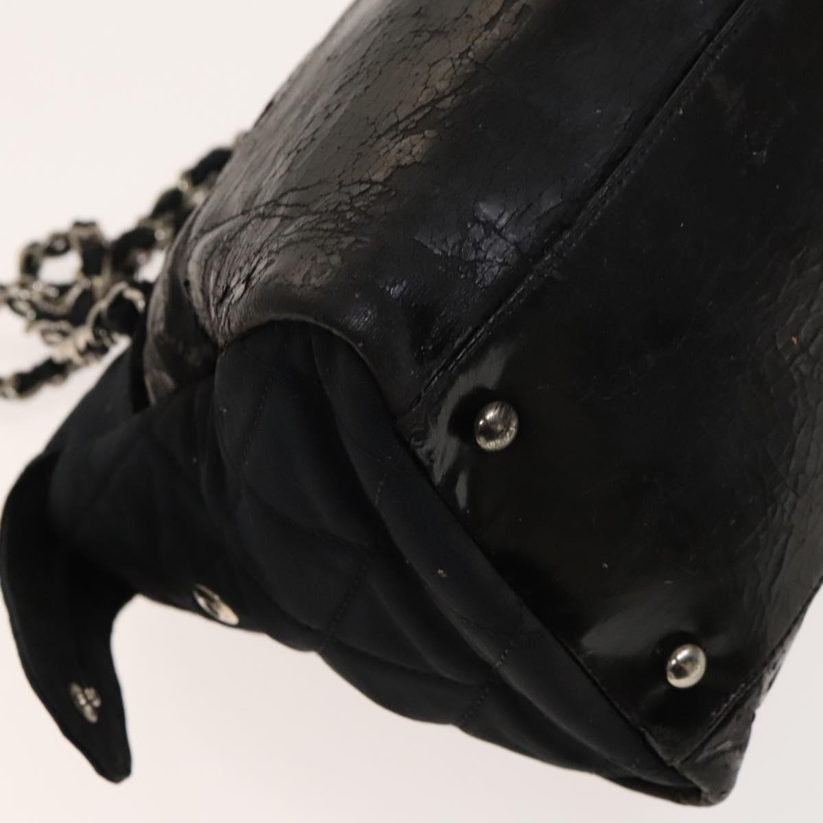 CHANEL Chain Shoulder Bag Enamel Nylon Black Silver CC Auth bs28658