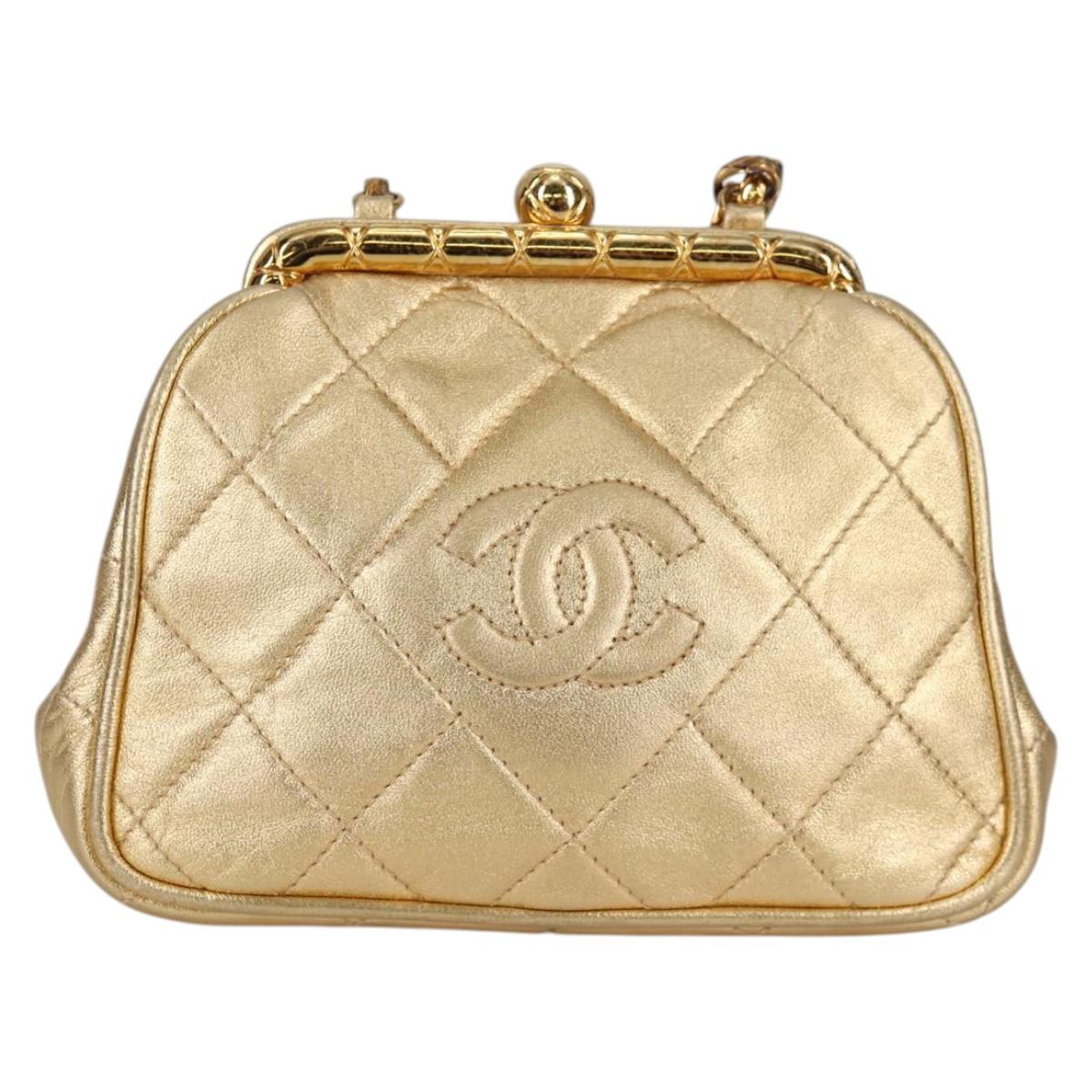 CHANEL Chain Shoulder Bag Lamb Skin Gold Tone CC Auth 135116A