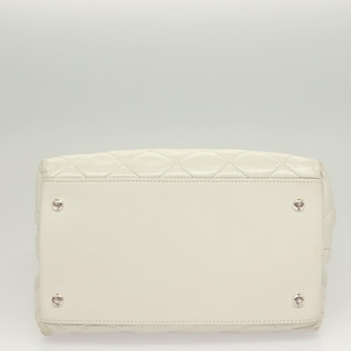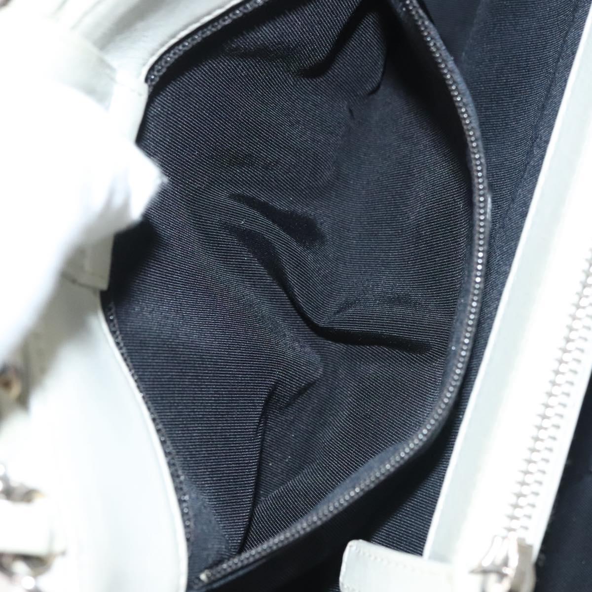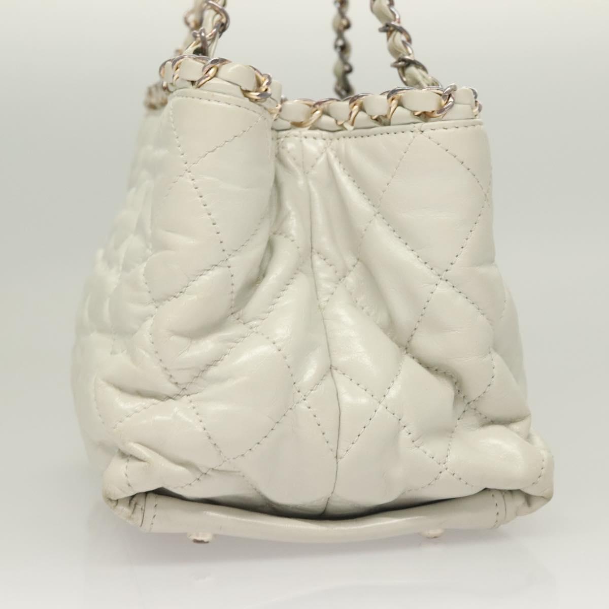 CHANEL Chain Shoulder Bag Lamb Skin White Silver CC Auth 128035