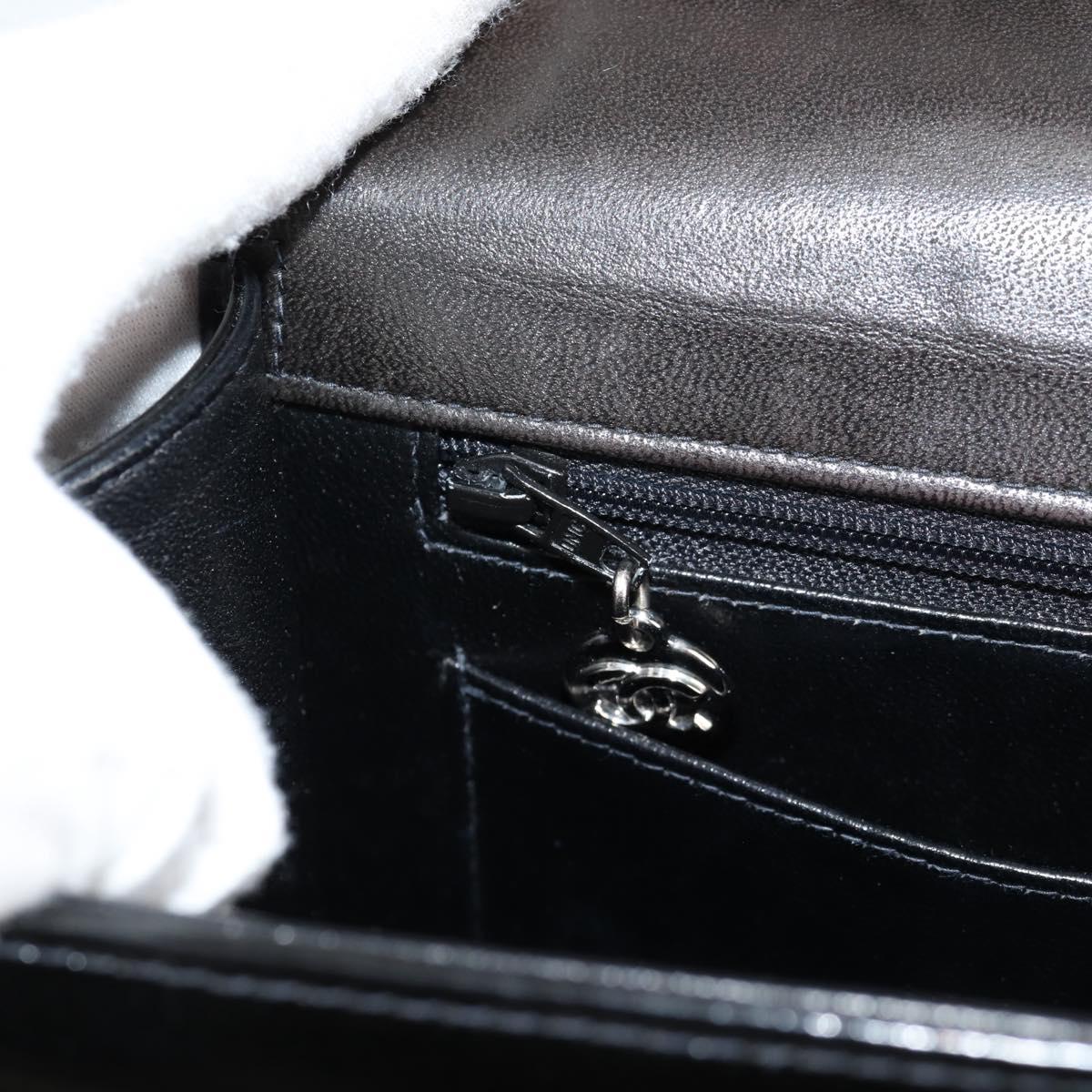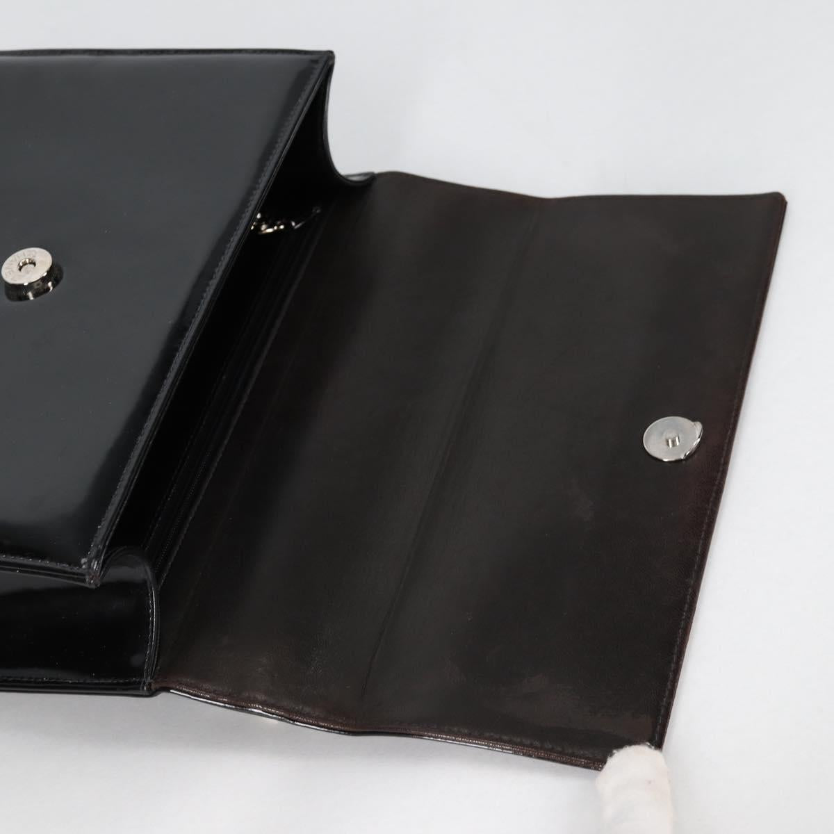 CHANEL Chain Shoulder Bag Patent leather Black Silver CC Auth 139979V