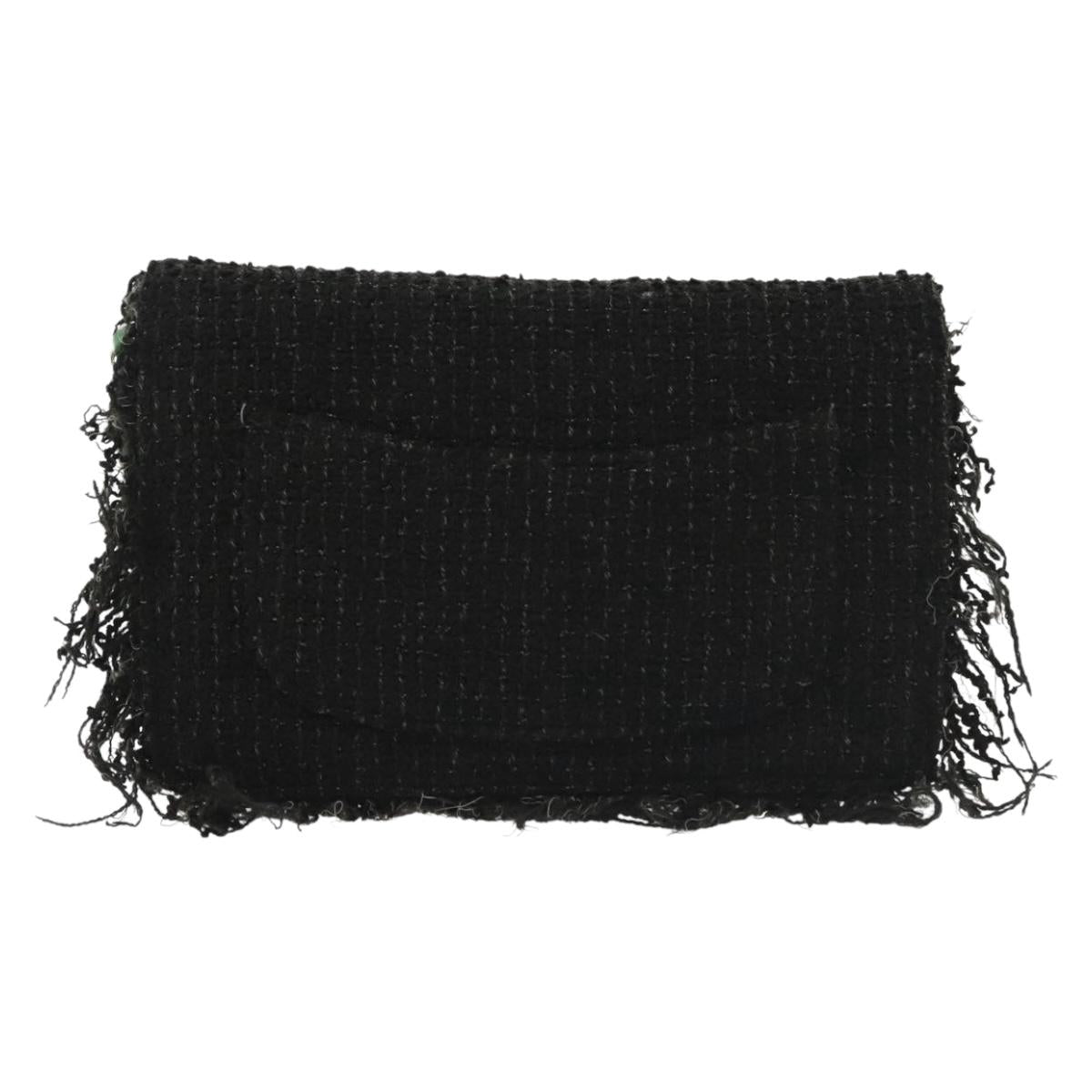 CHANEL Chain Wallet Tweed Black Silver CC Auth 142315