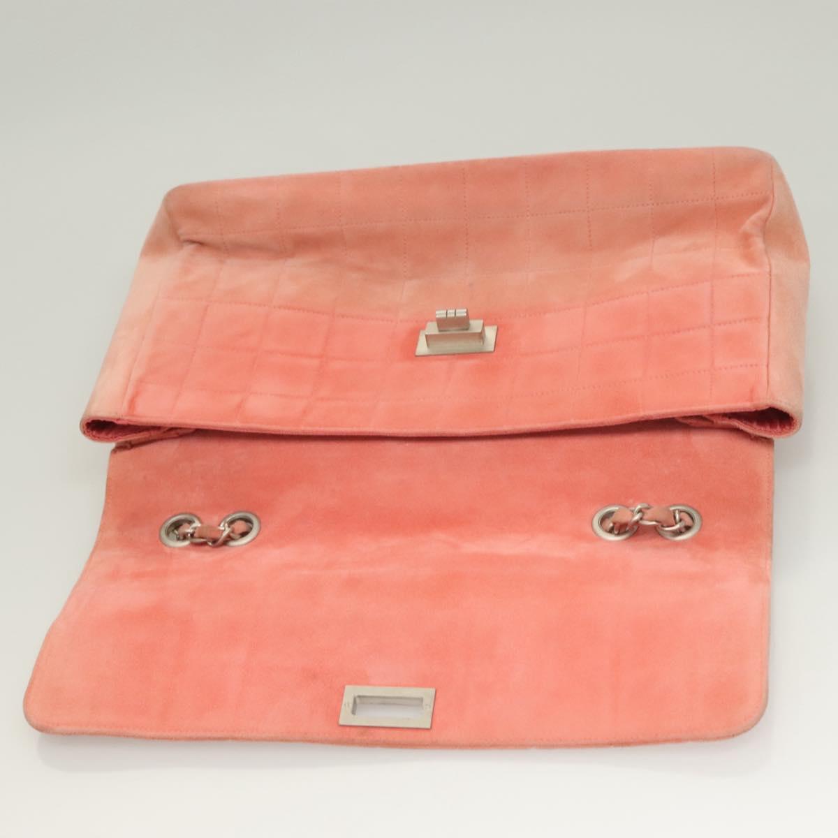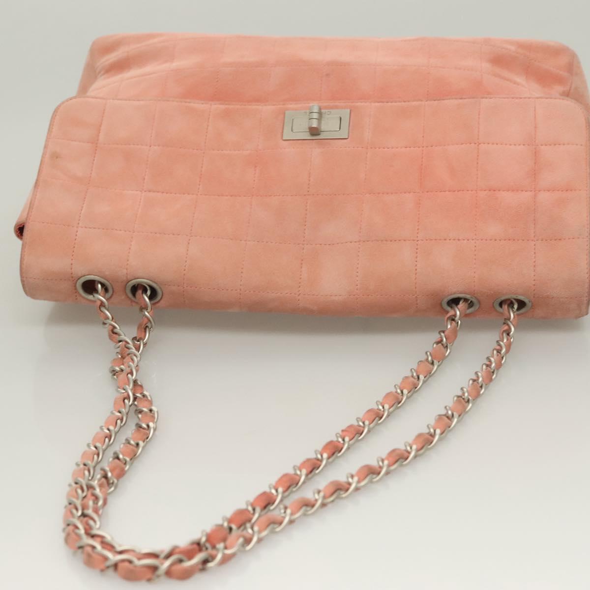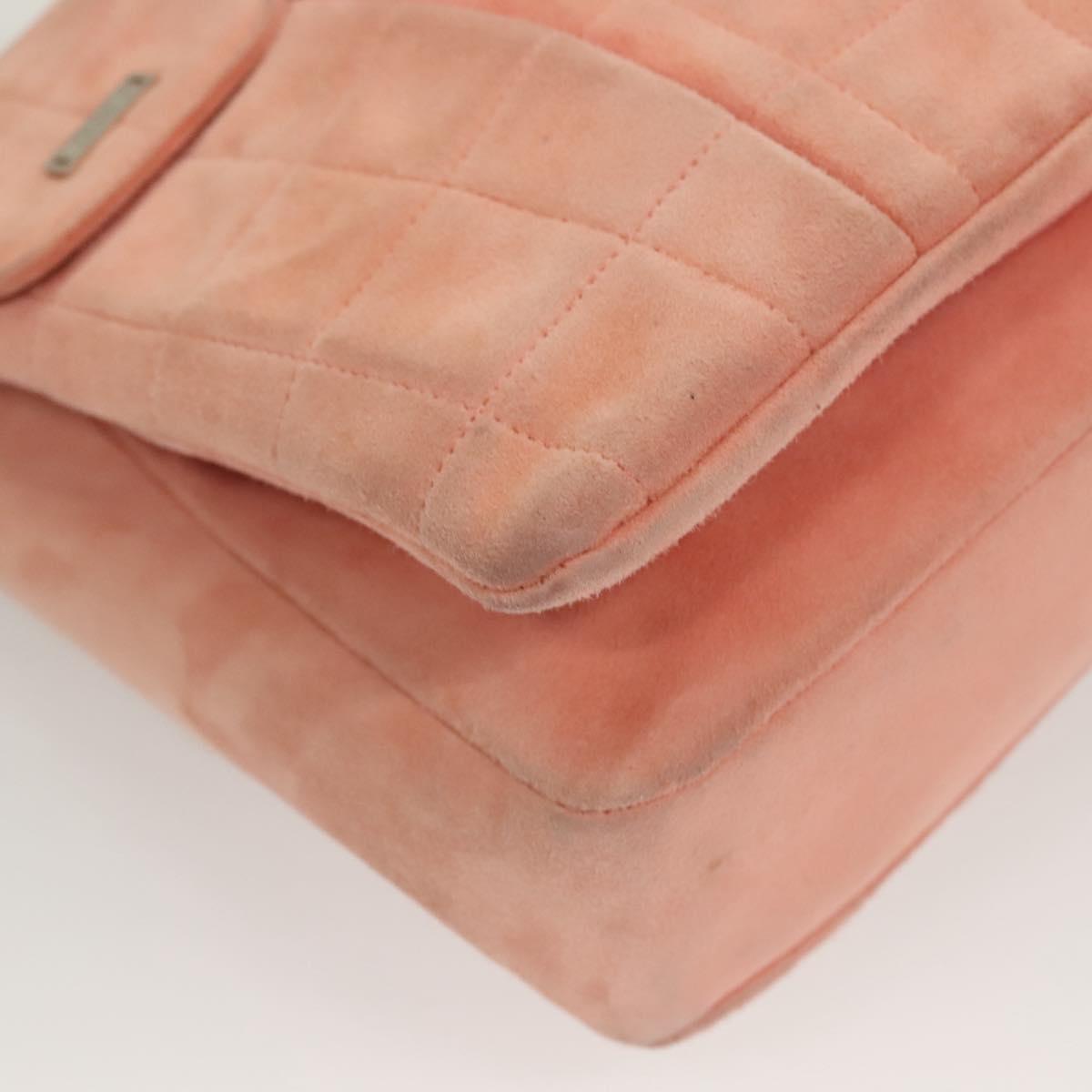CHANEL Choco Bar Chain Shoulder Bag Suede Pink CC Auth 130967