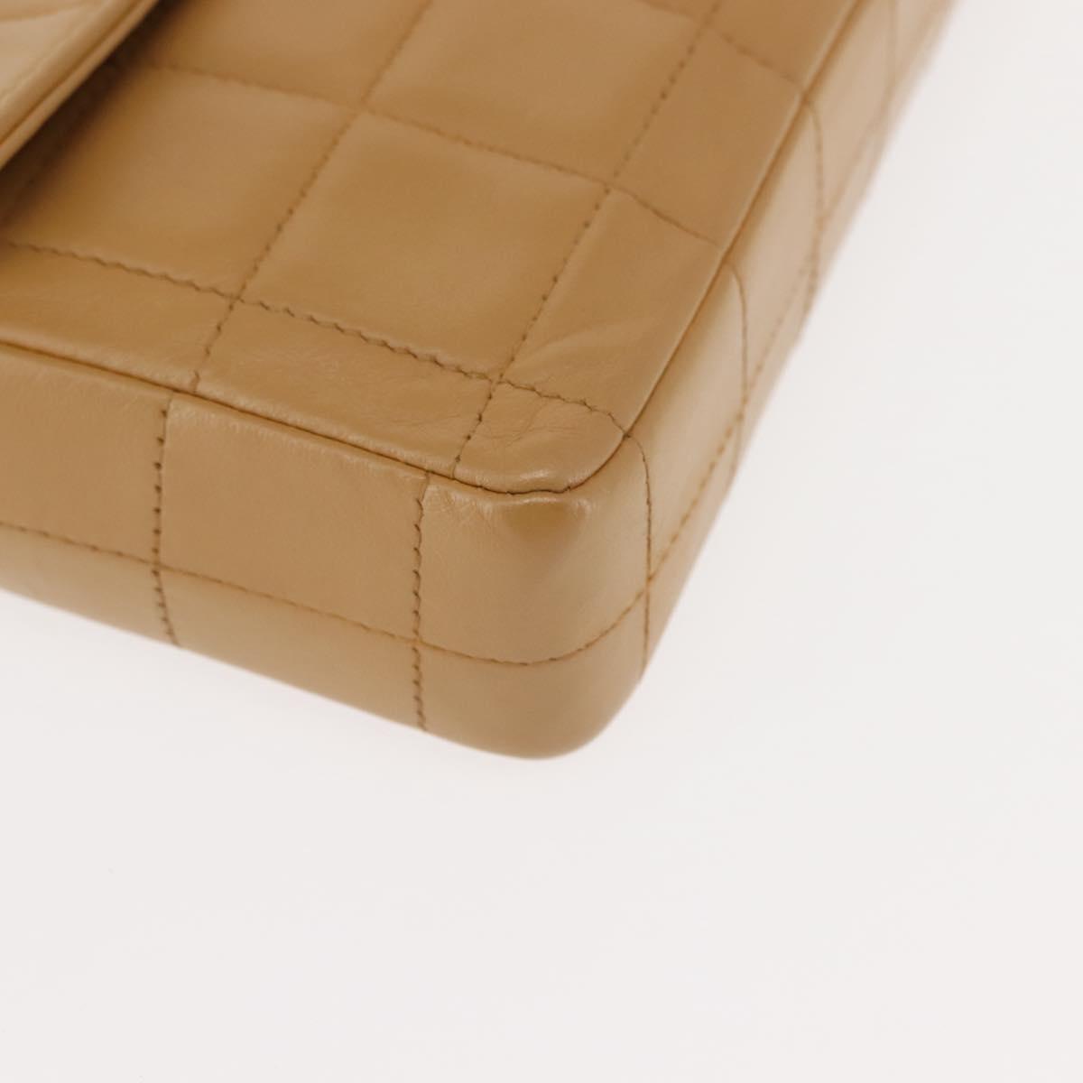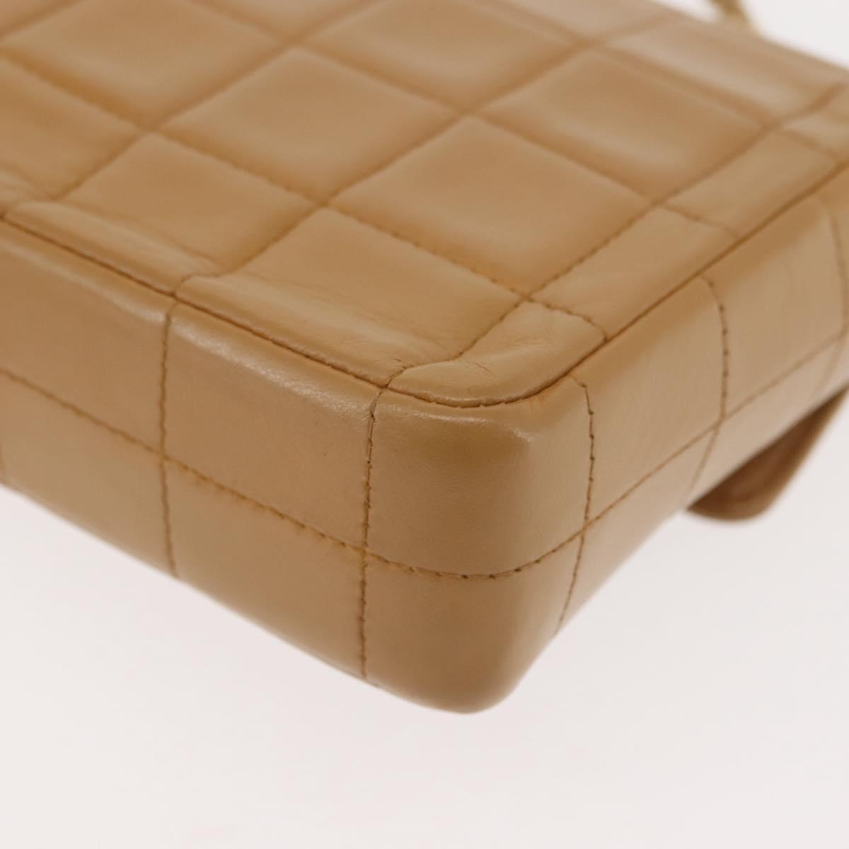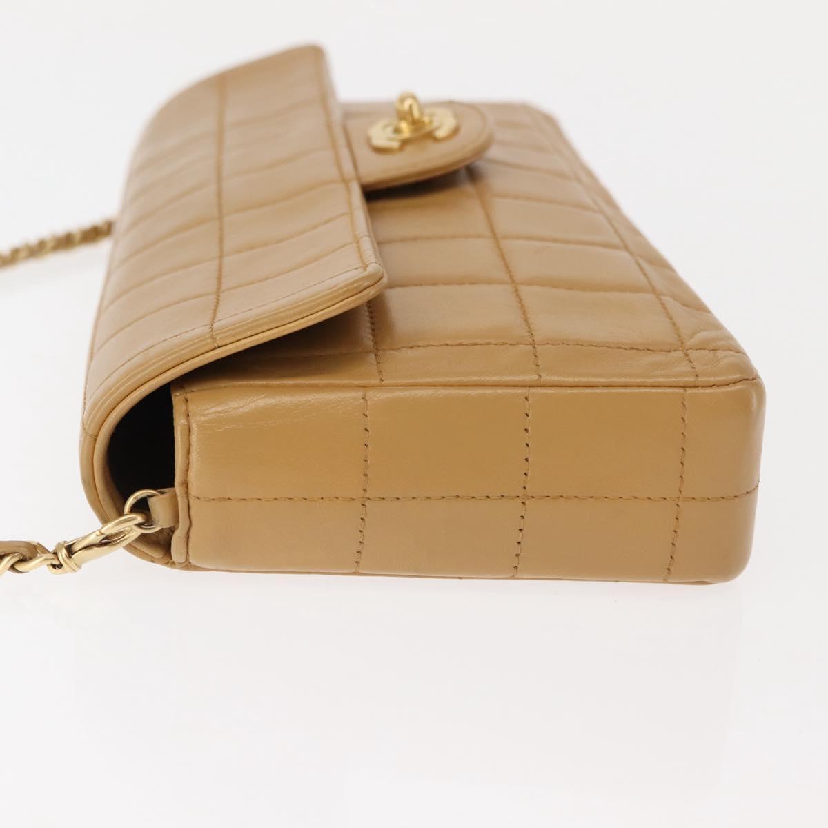 CHANEL Choco Bar Flap Chain Shoulder Bag Lamb Skin Beige Gold CC Auth bs29970