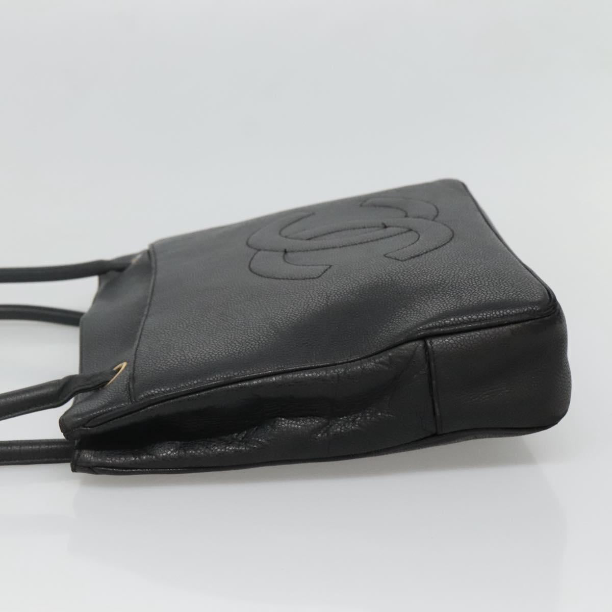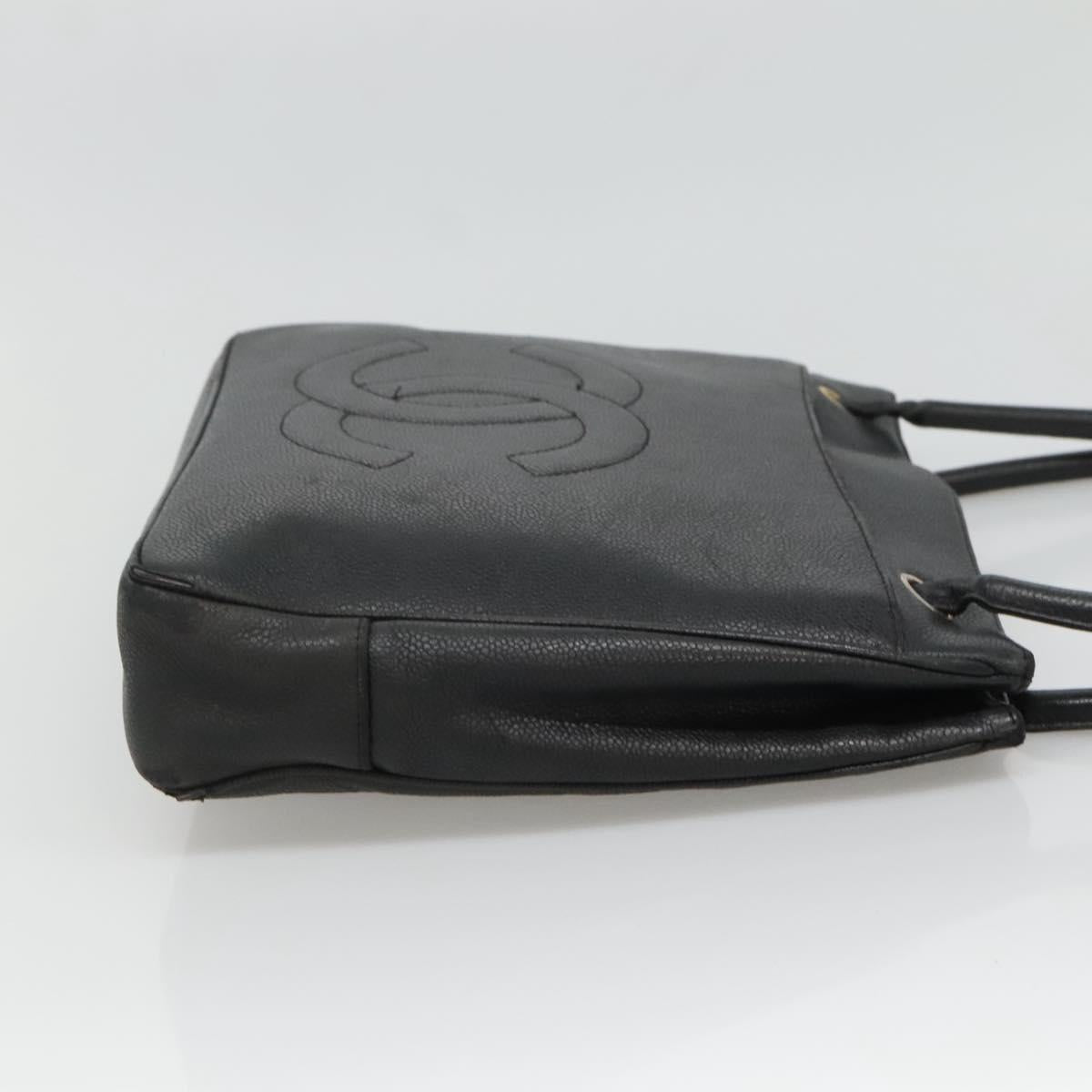 CHANEL COCO Mark Tote Bag Caviar Skin Black Gold CC Auth BA3454