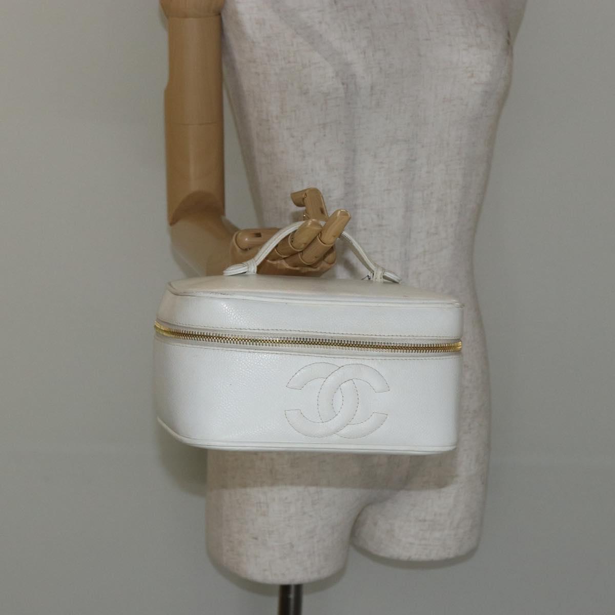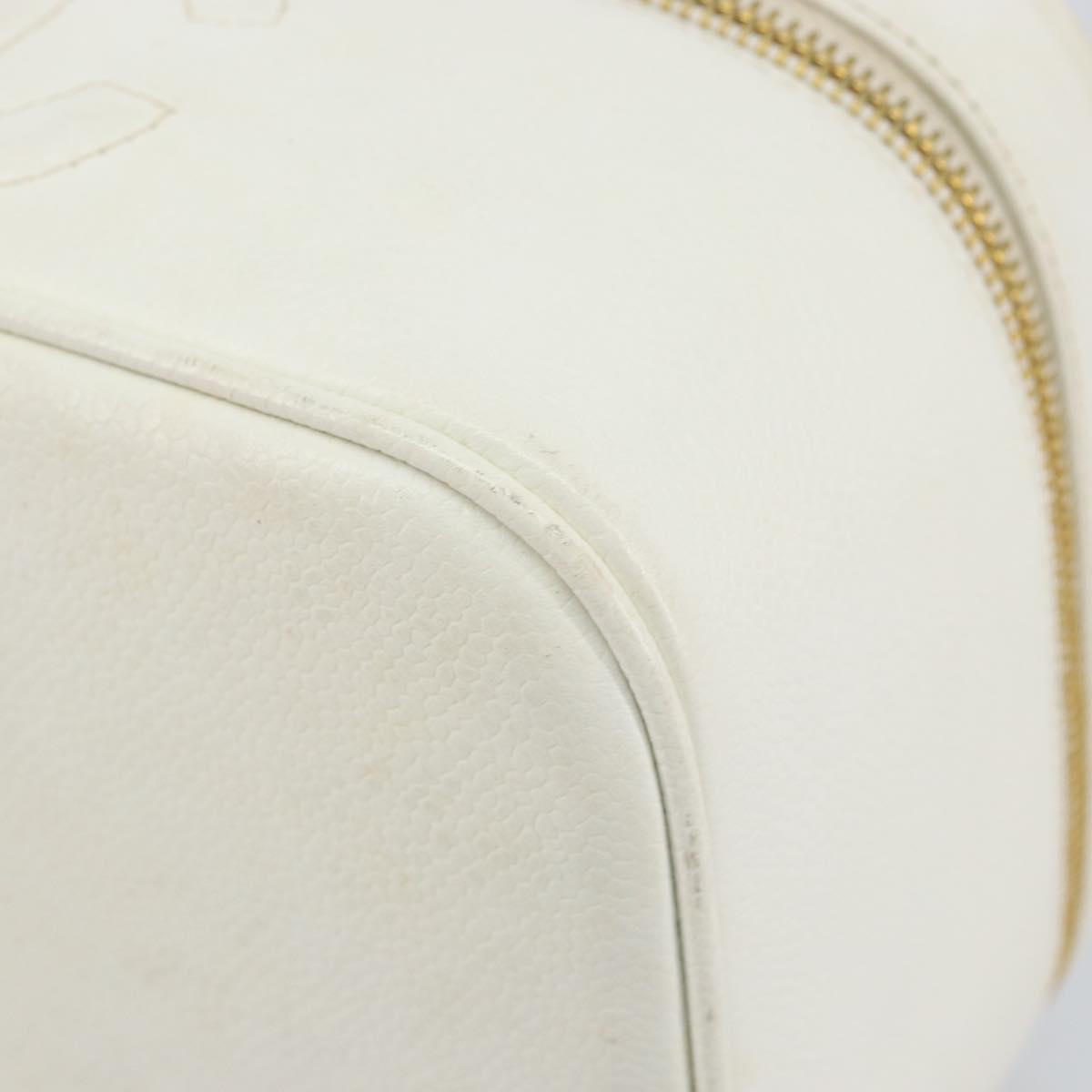 CHANEL COCO Mark vanity Pouch Caviar Skin White Gold CC Auth hk2965
