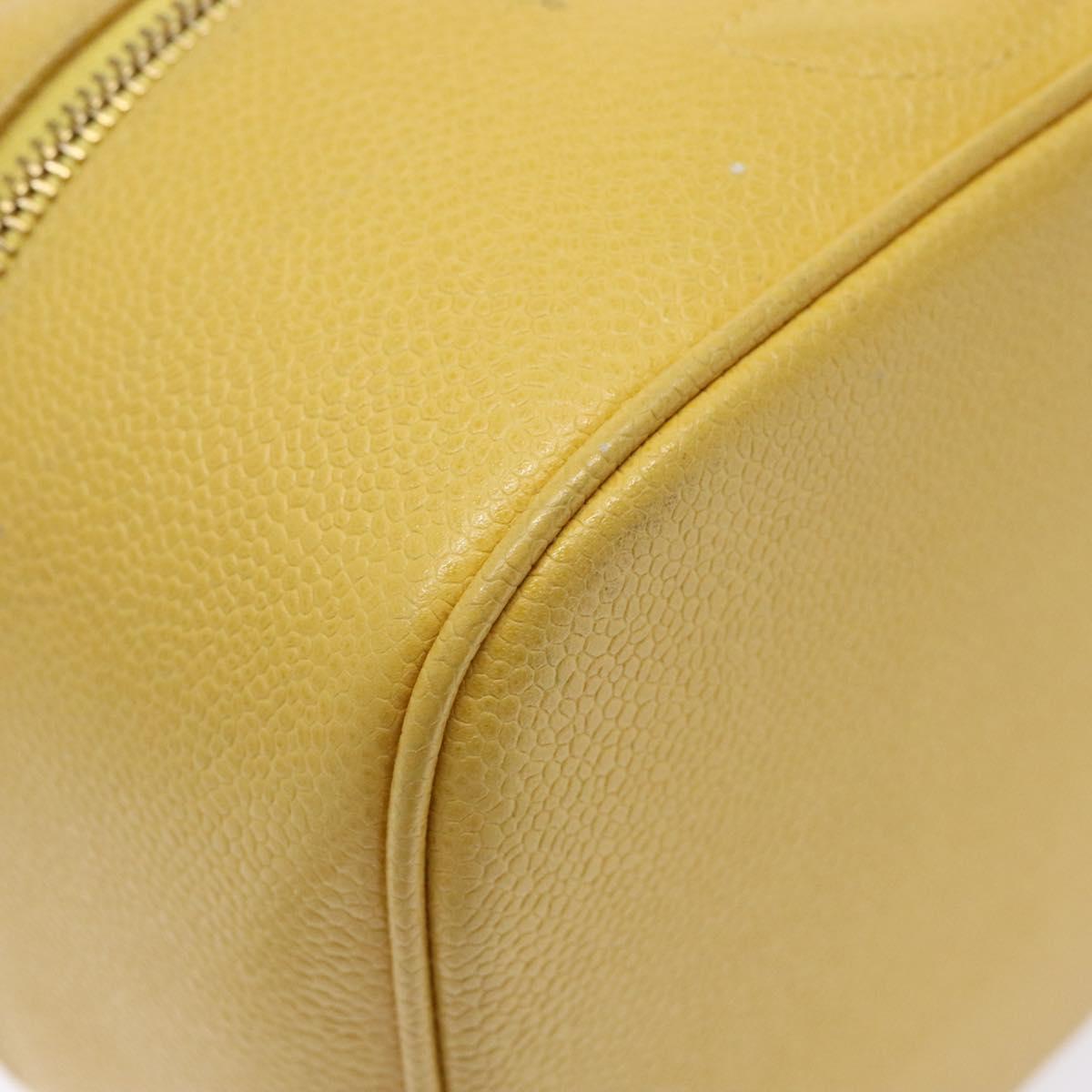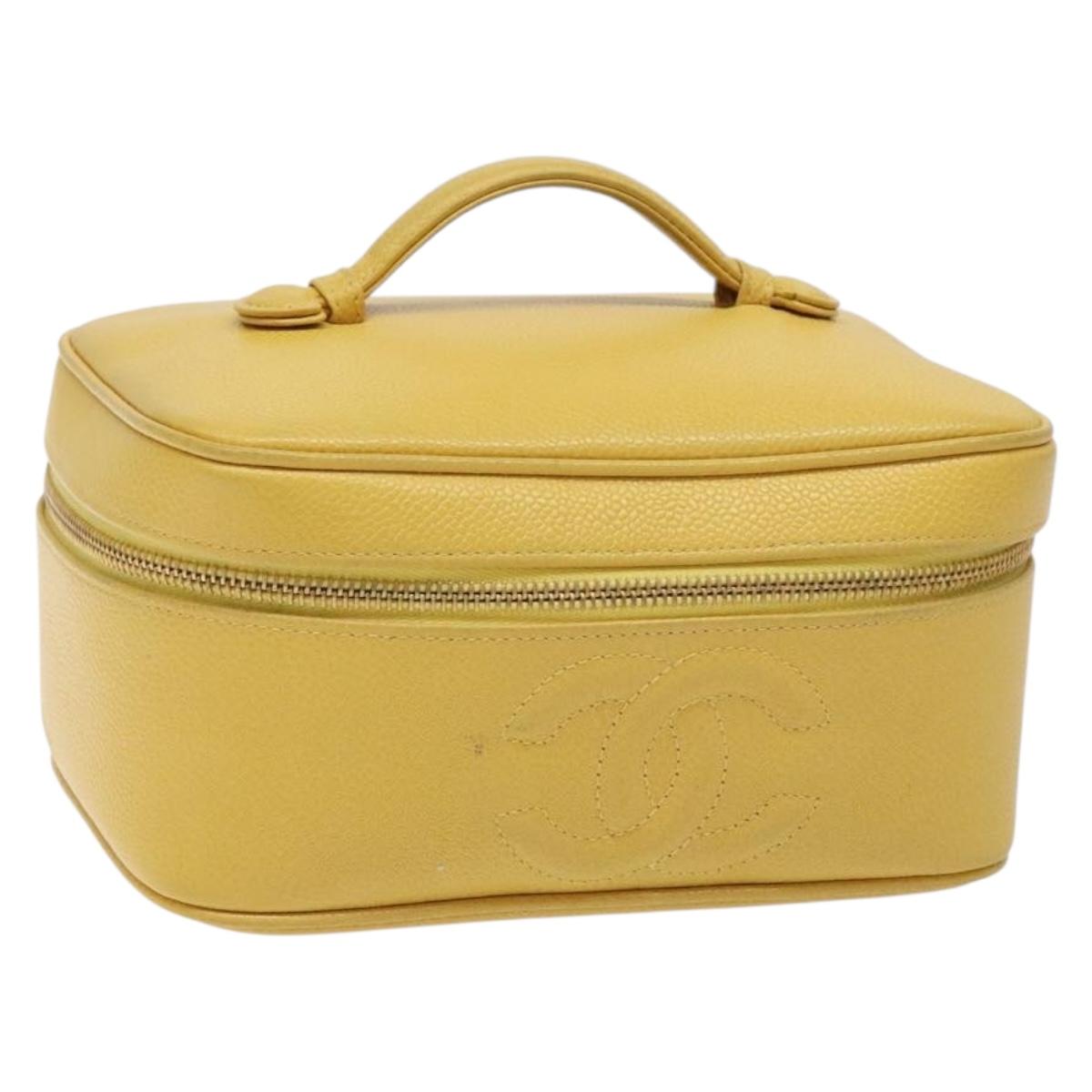 CHANEL COCO Mark Vanity Pouch Caviar Skin Yellow Gold CC Auth fm4842