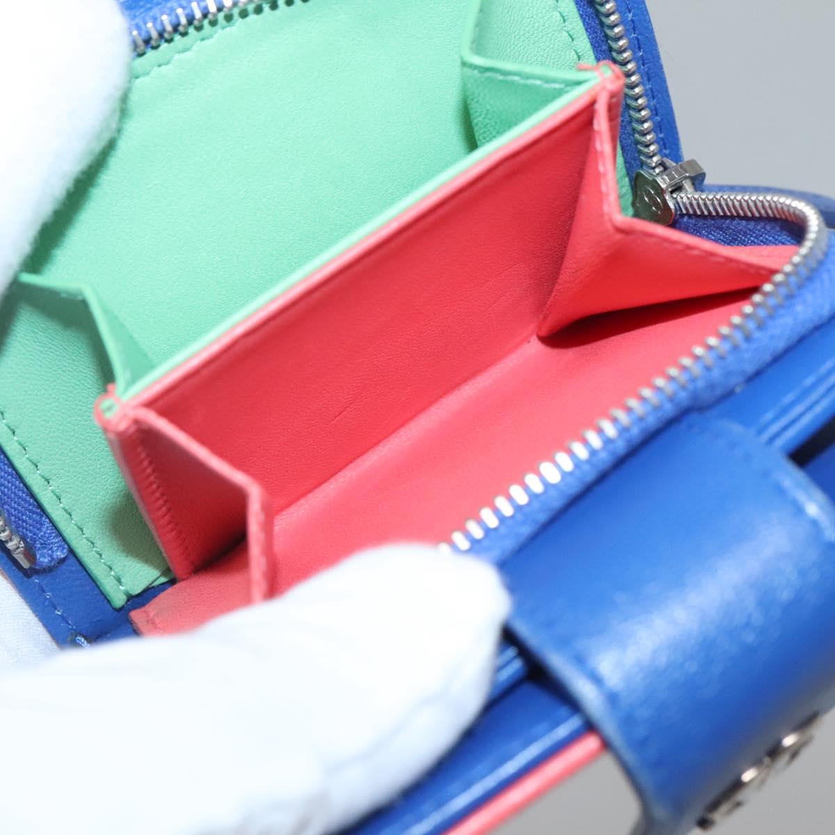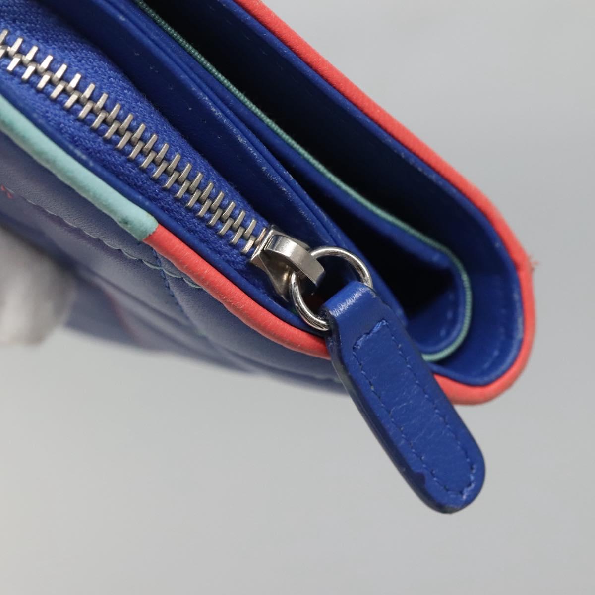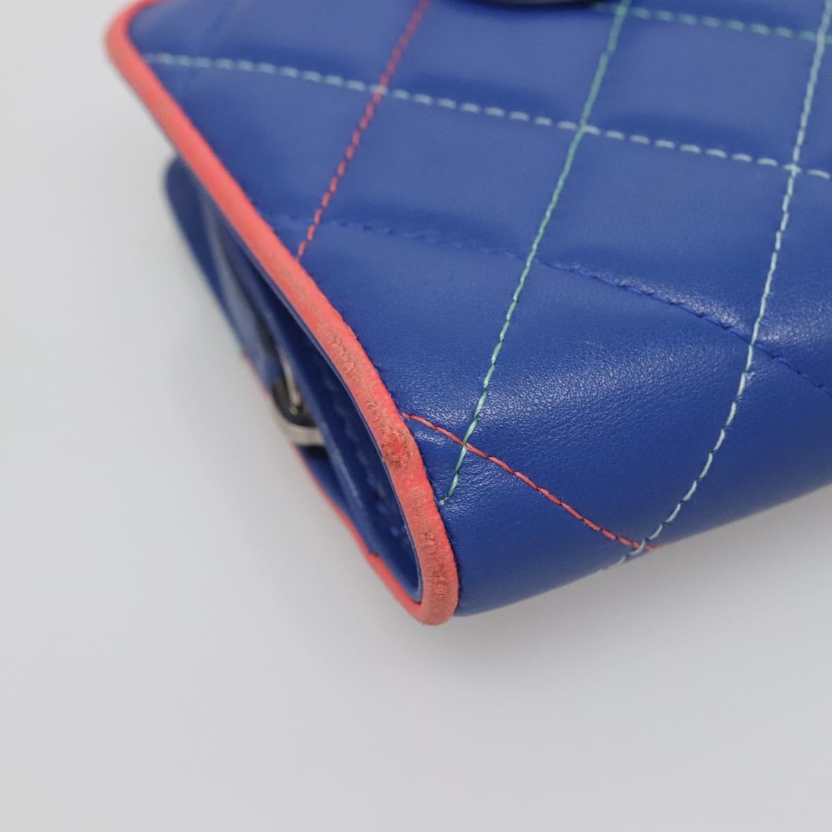 CHANEL Compact Wallet Lamb Skin Blue CC Auth 142369