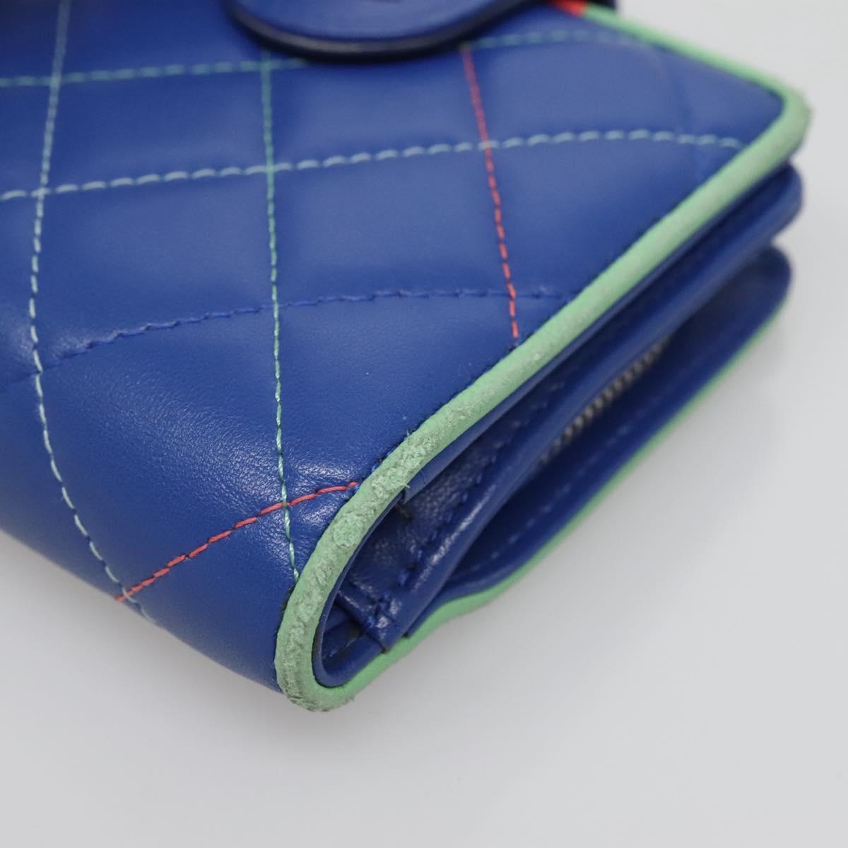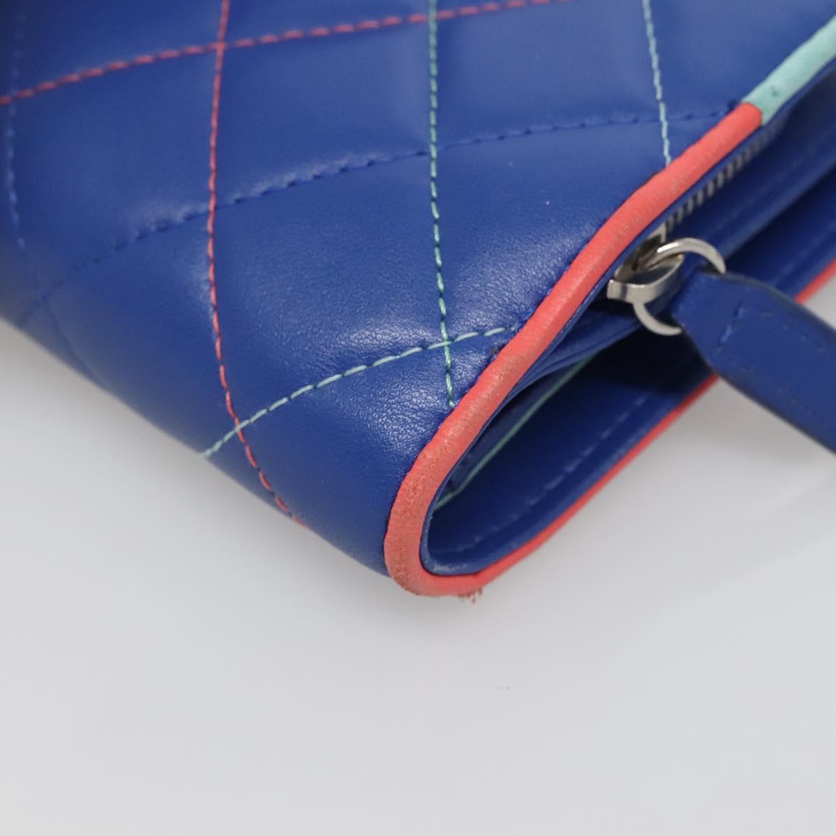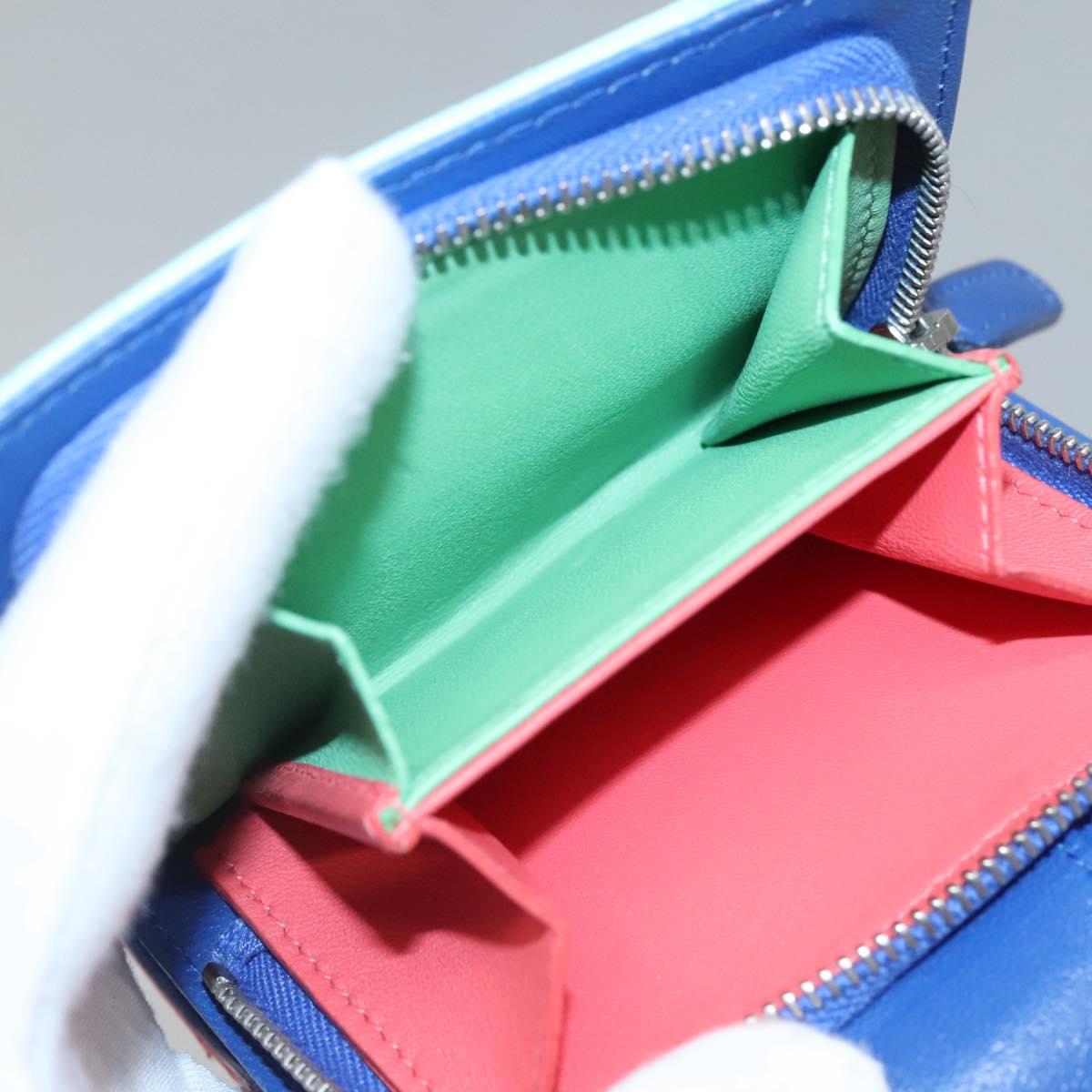 CHANEL Compact Wallet Lamb Skin Blue CC Auth 142369