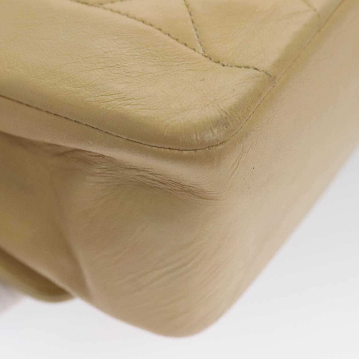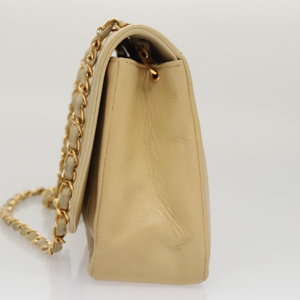 CHANEL Diana 25 Chain Shoulder Bag Lamb Skin Beige Gold CC Auth PP039