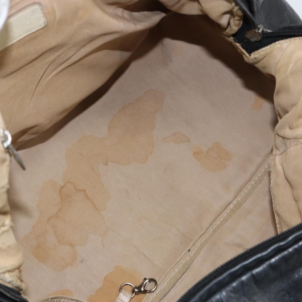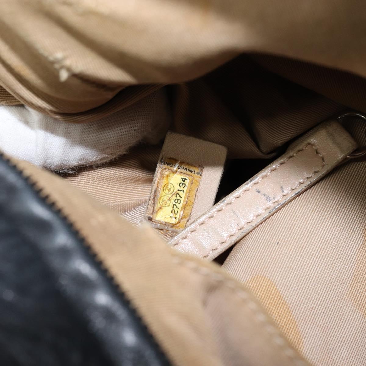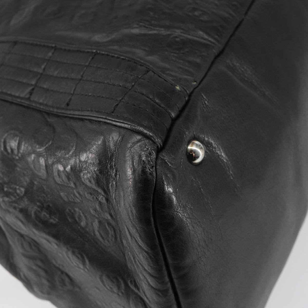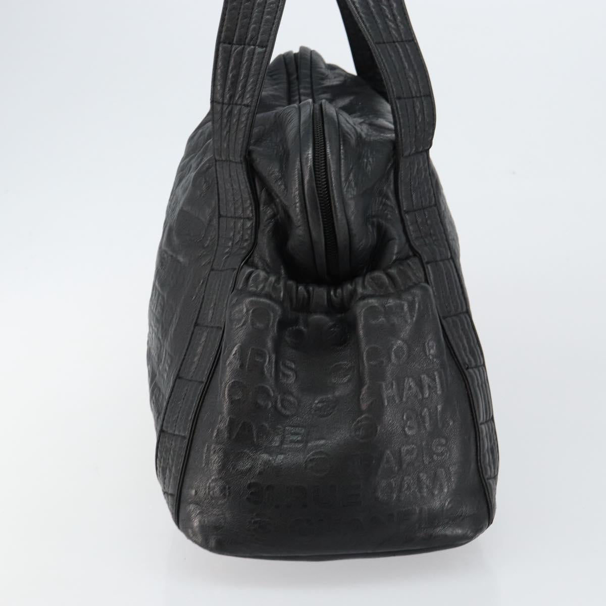 CHANEL Embossed Logo Unlimited Boston Bag Leather Black Silver CC Auth bs29953