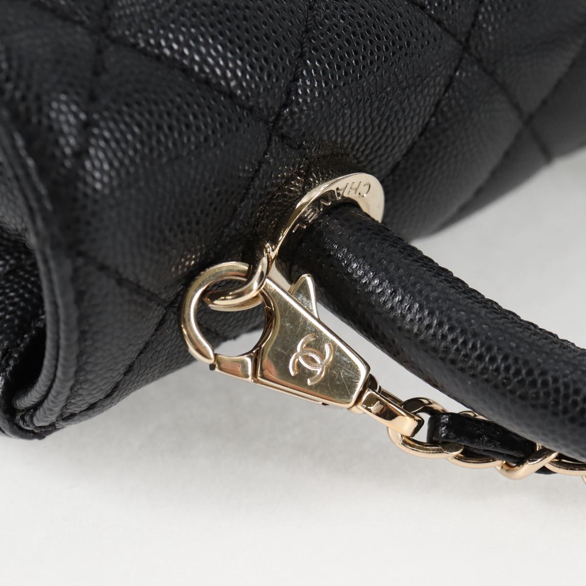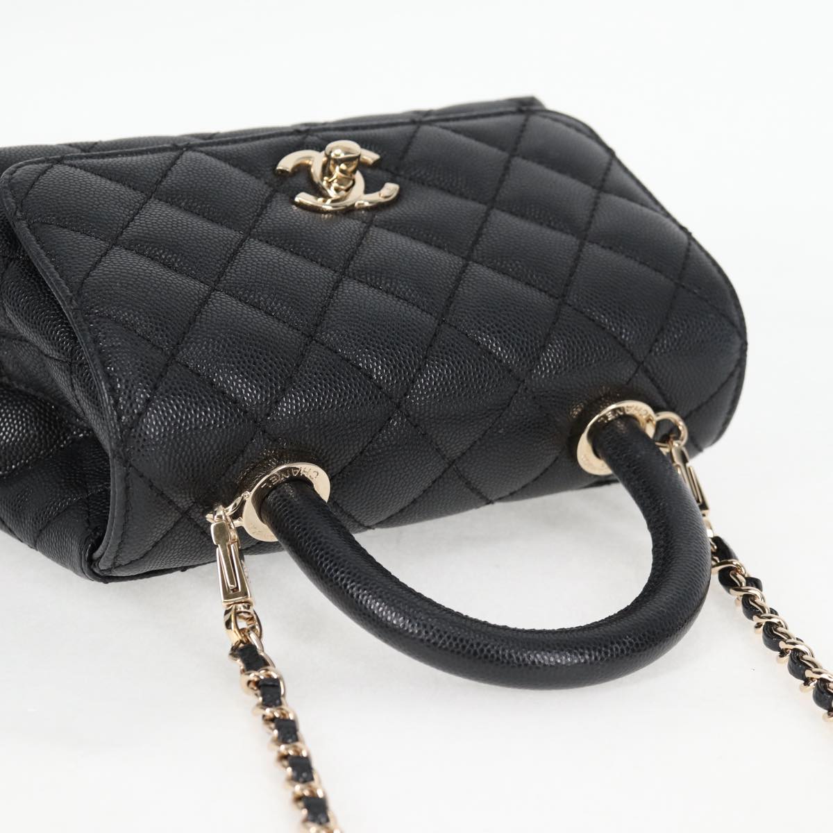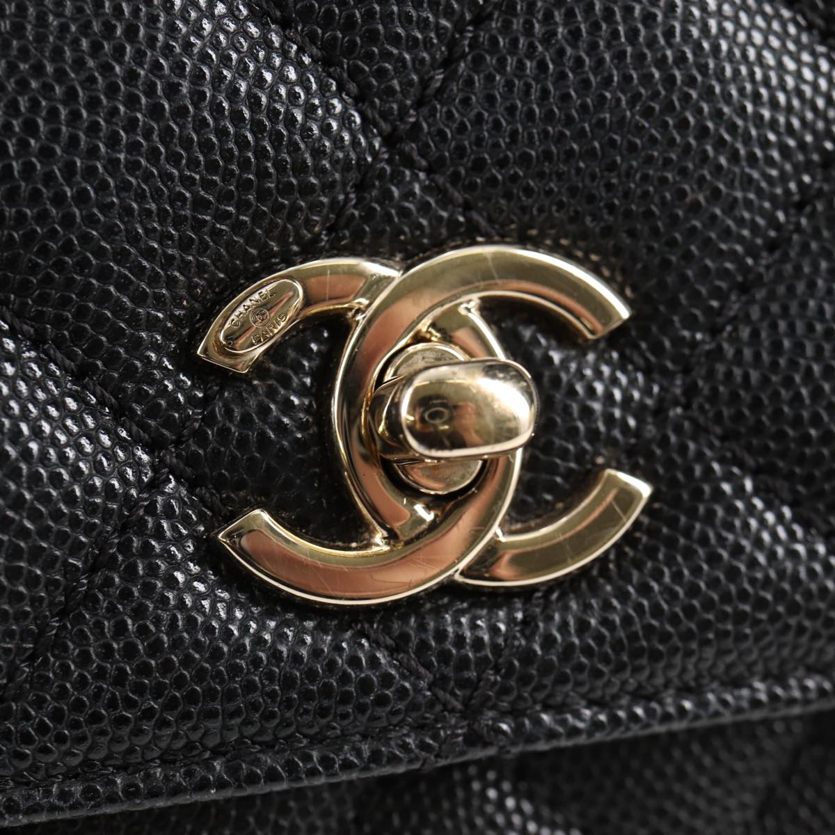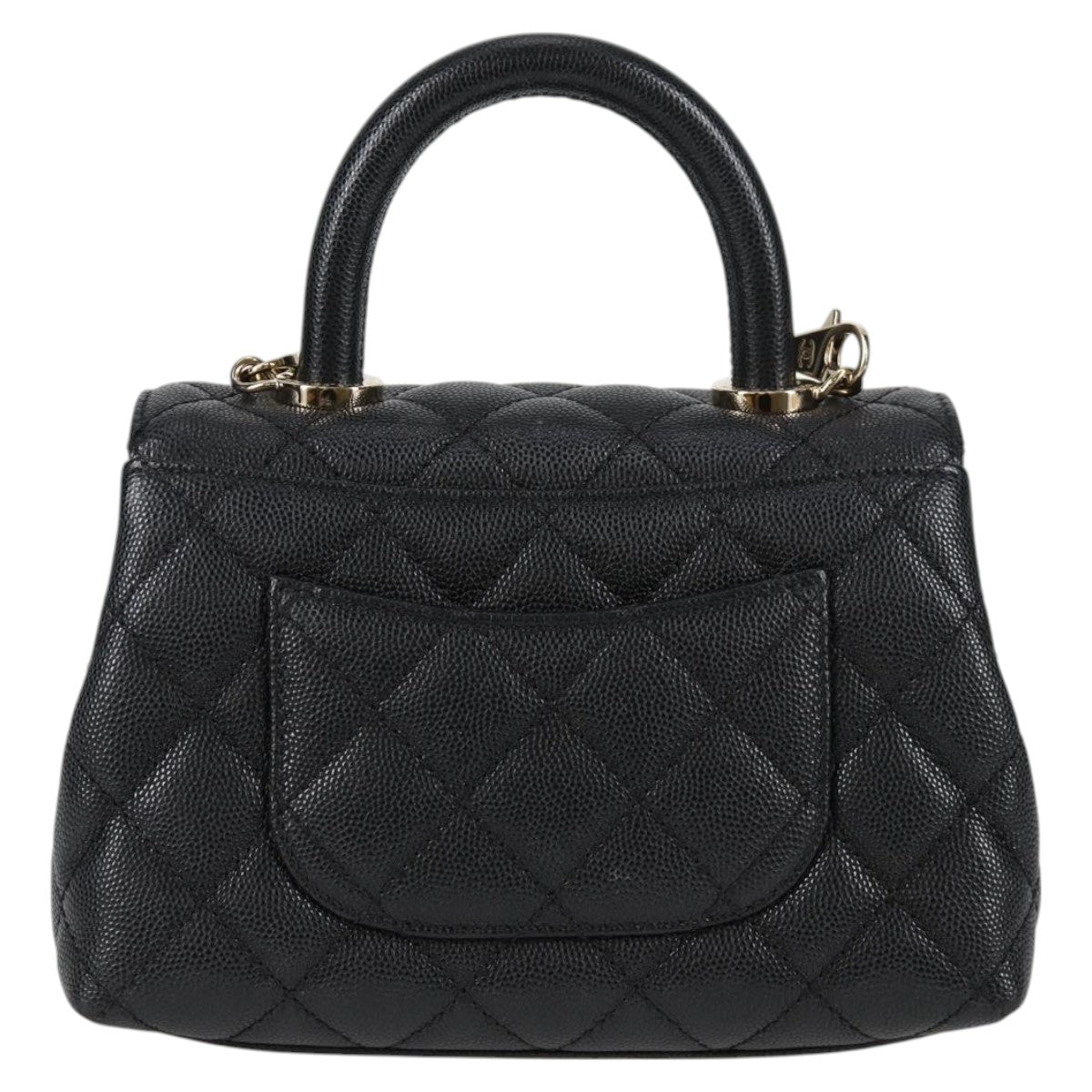 CHANEL Matelasse Coco Handle XXS 2021 Handbag Black Gold Caviar Skin
