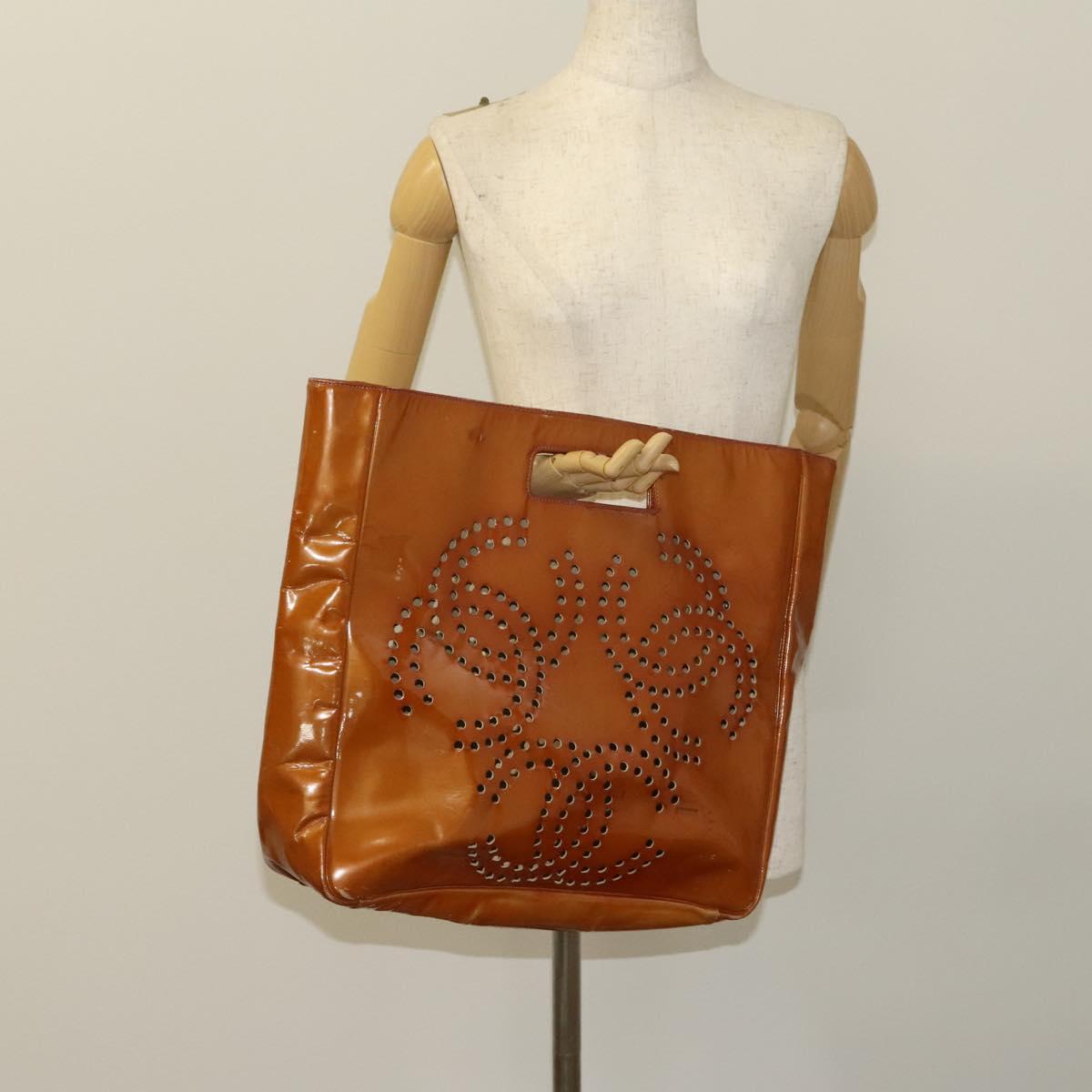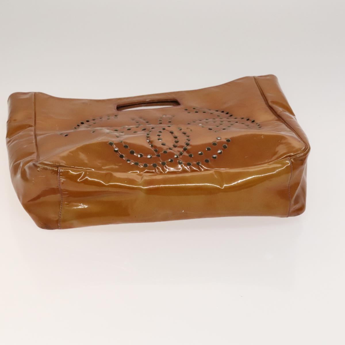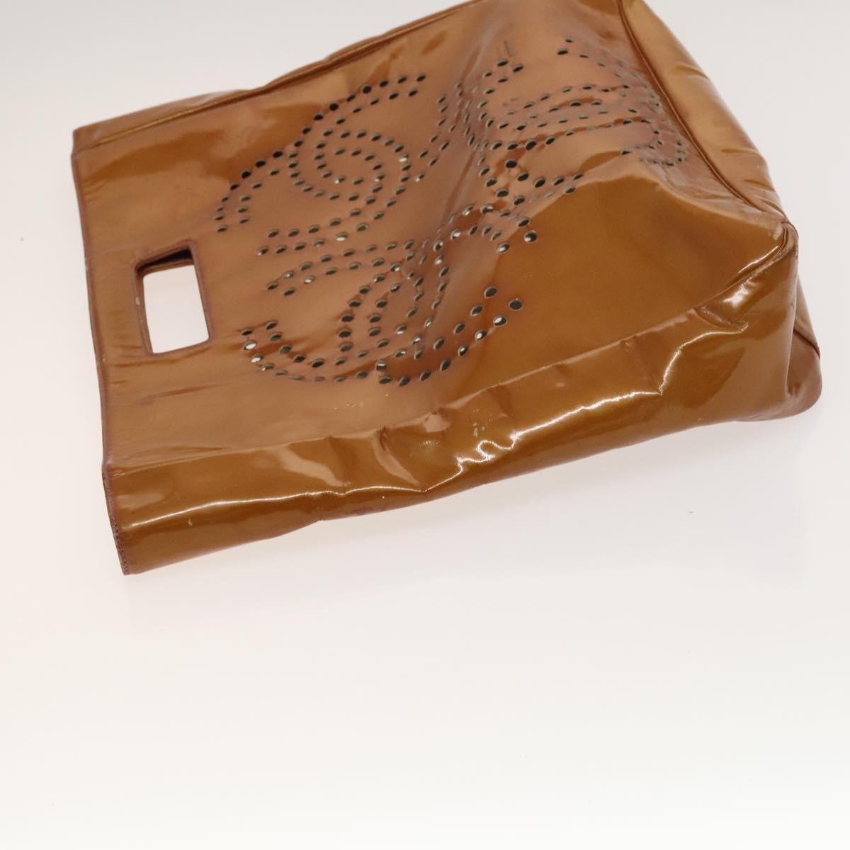 CHANEL Hand Bag Enamel Beige Silver CC Auth 130879