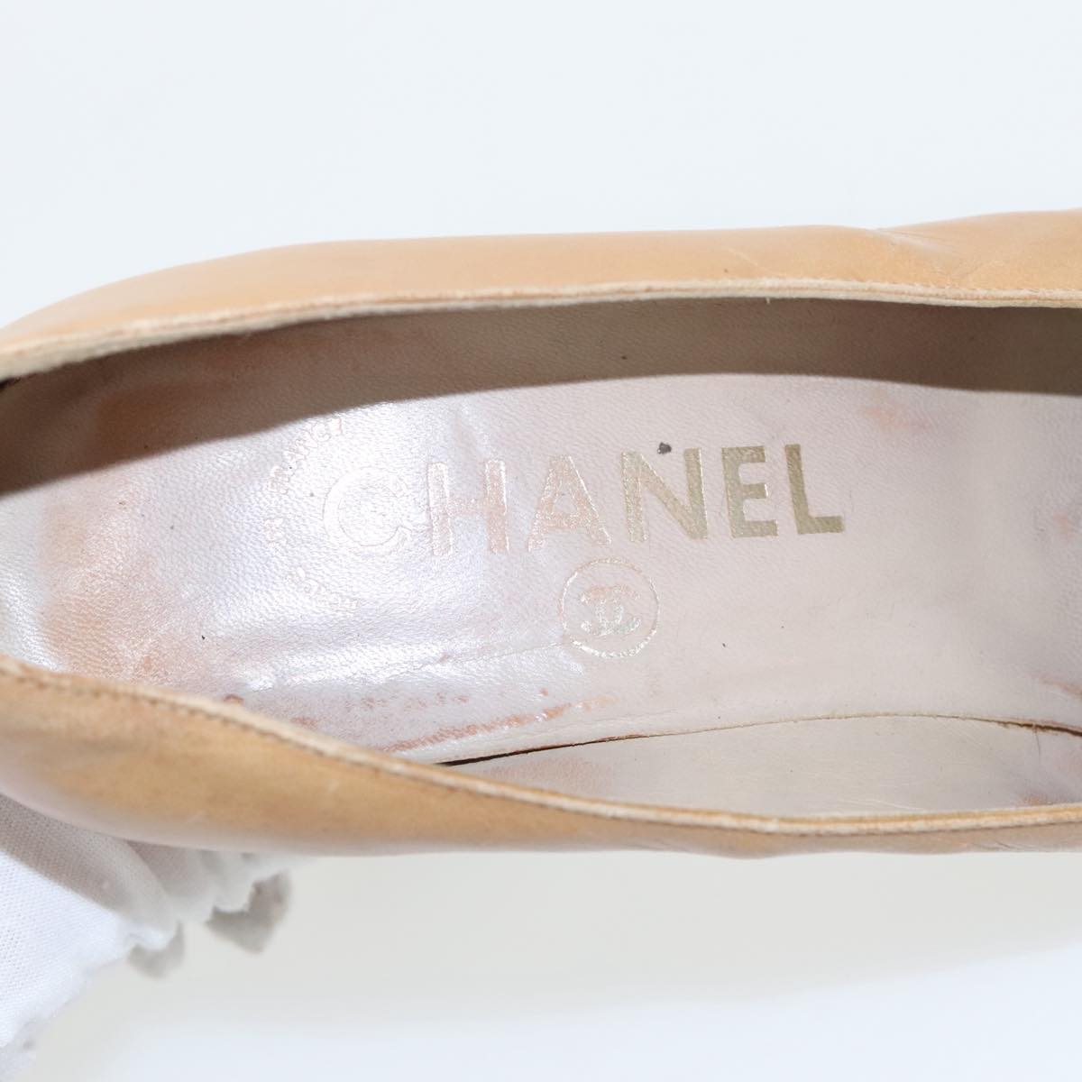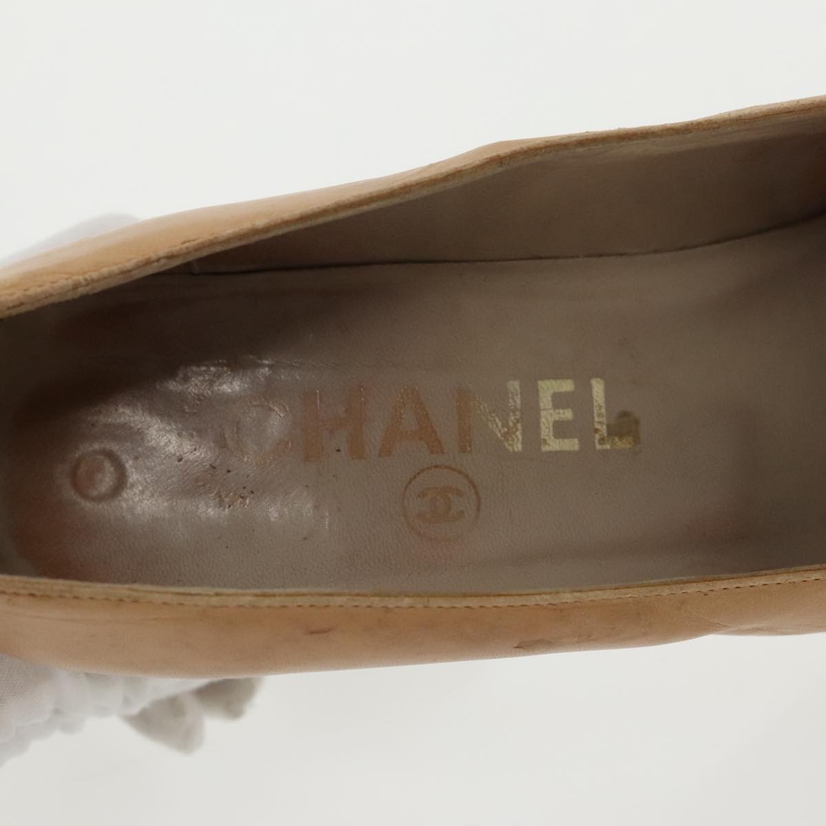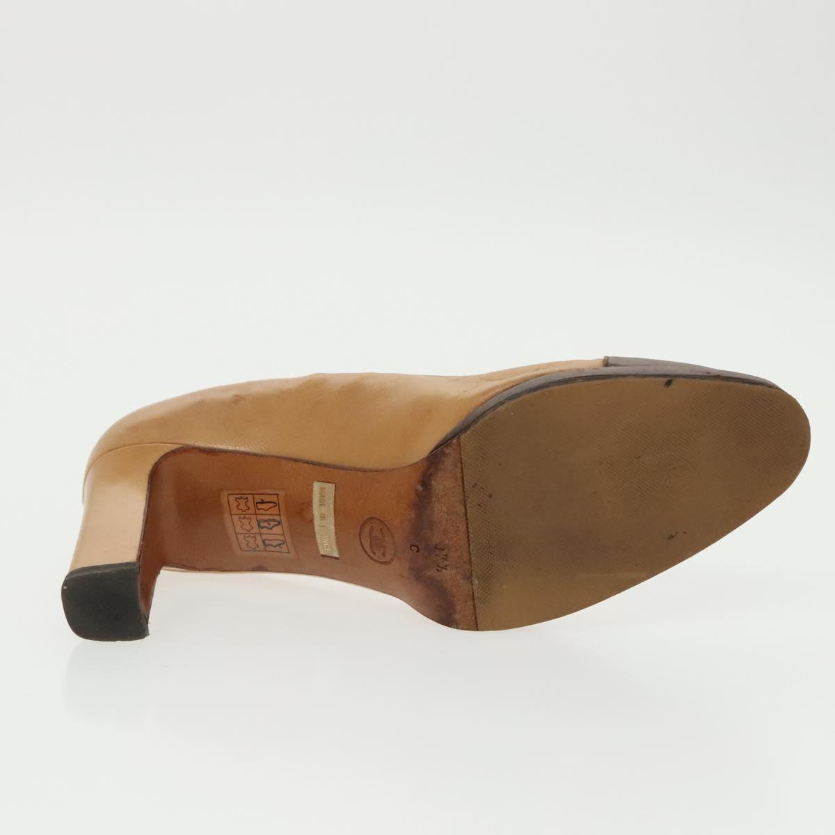 CHANEL High Heels Leather Beige Brown CC Auth ac3348