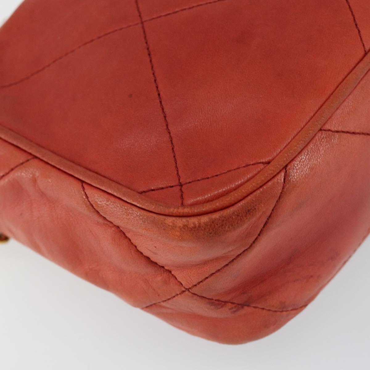 CHANEL Lamb Skin Shoulder Bag Red Gold CC Auth BA6554