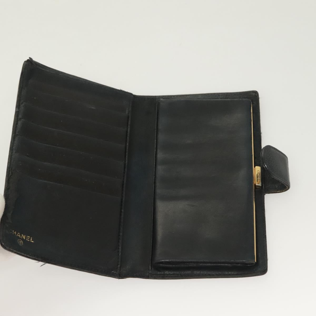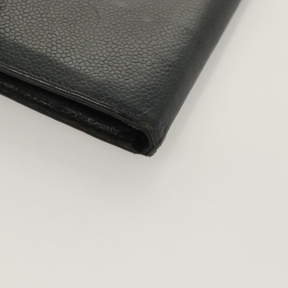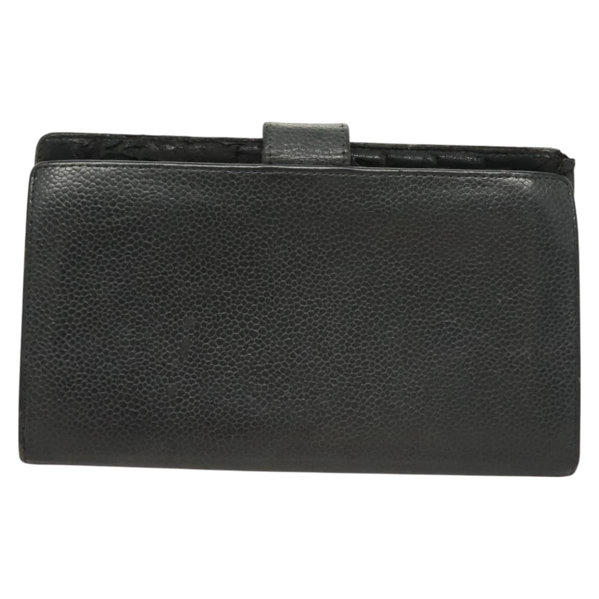 CHANEL Long Wallet Caviar Skin Black Gold CC Auth bs27231