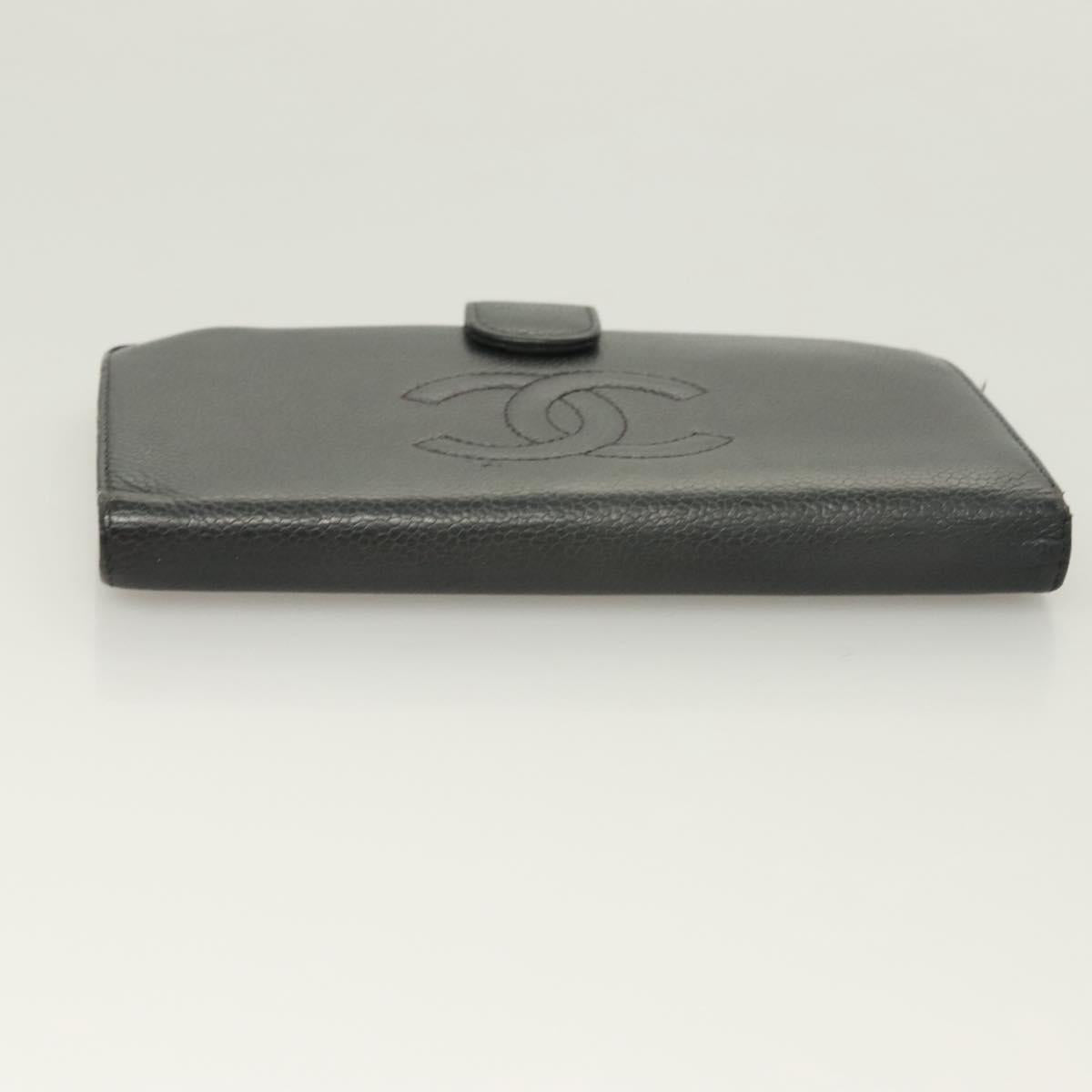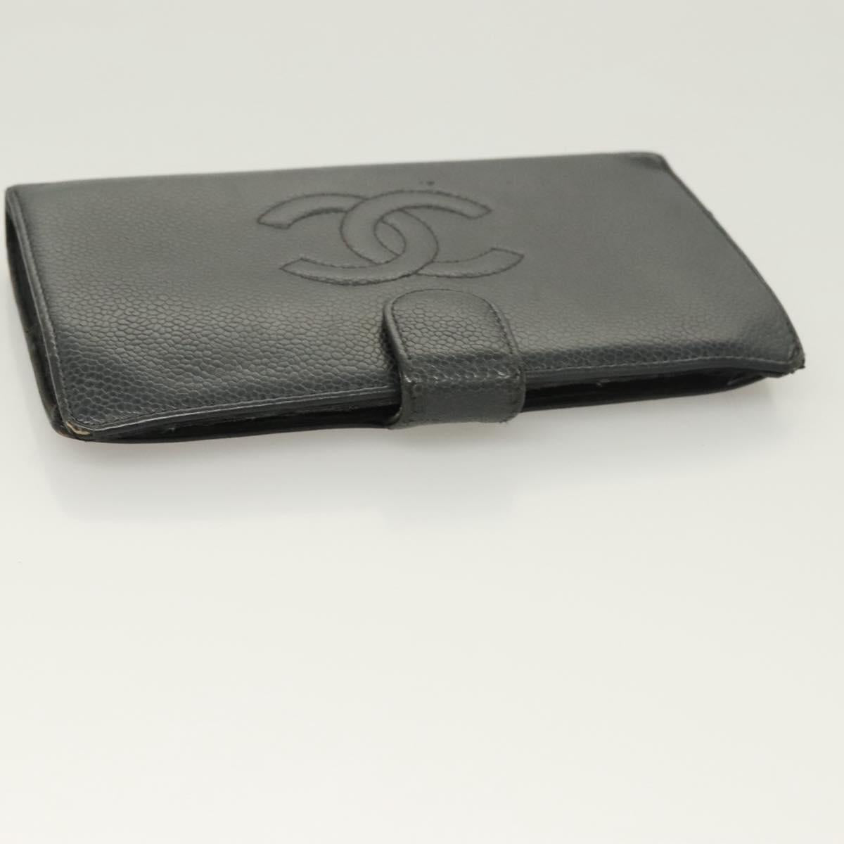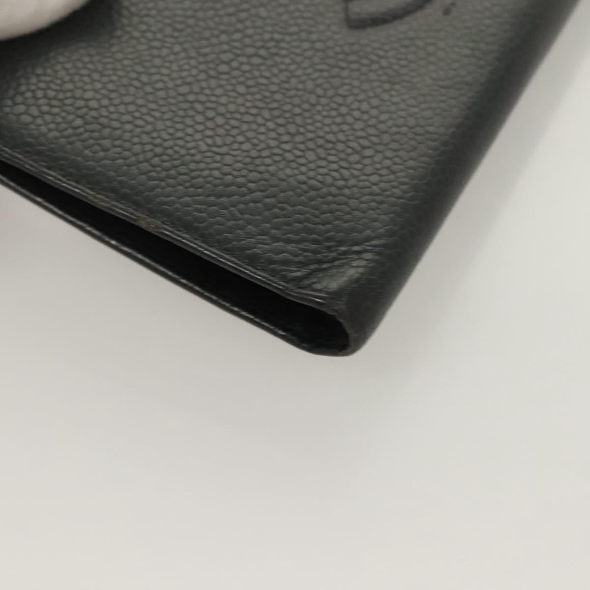 CHANEL Long Wallet Caviar Skin Black Gold CC Auth bs27231