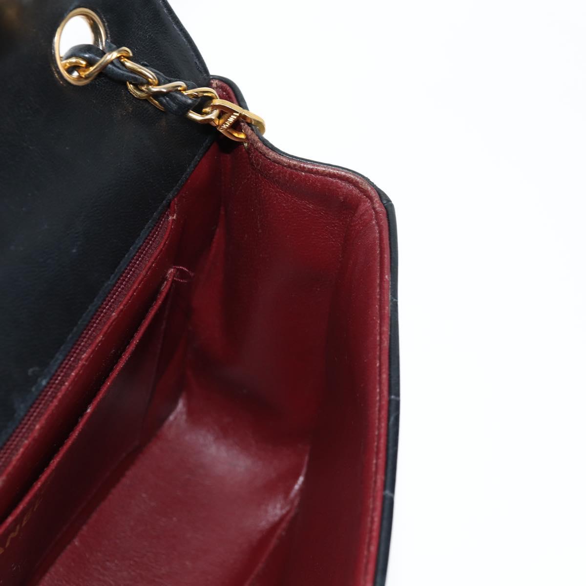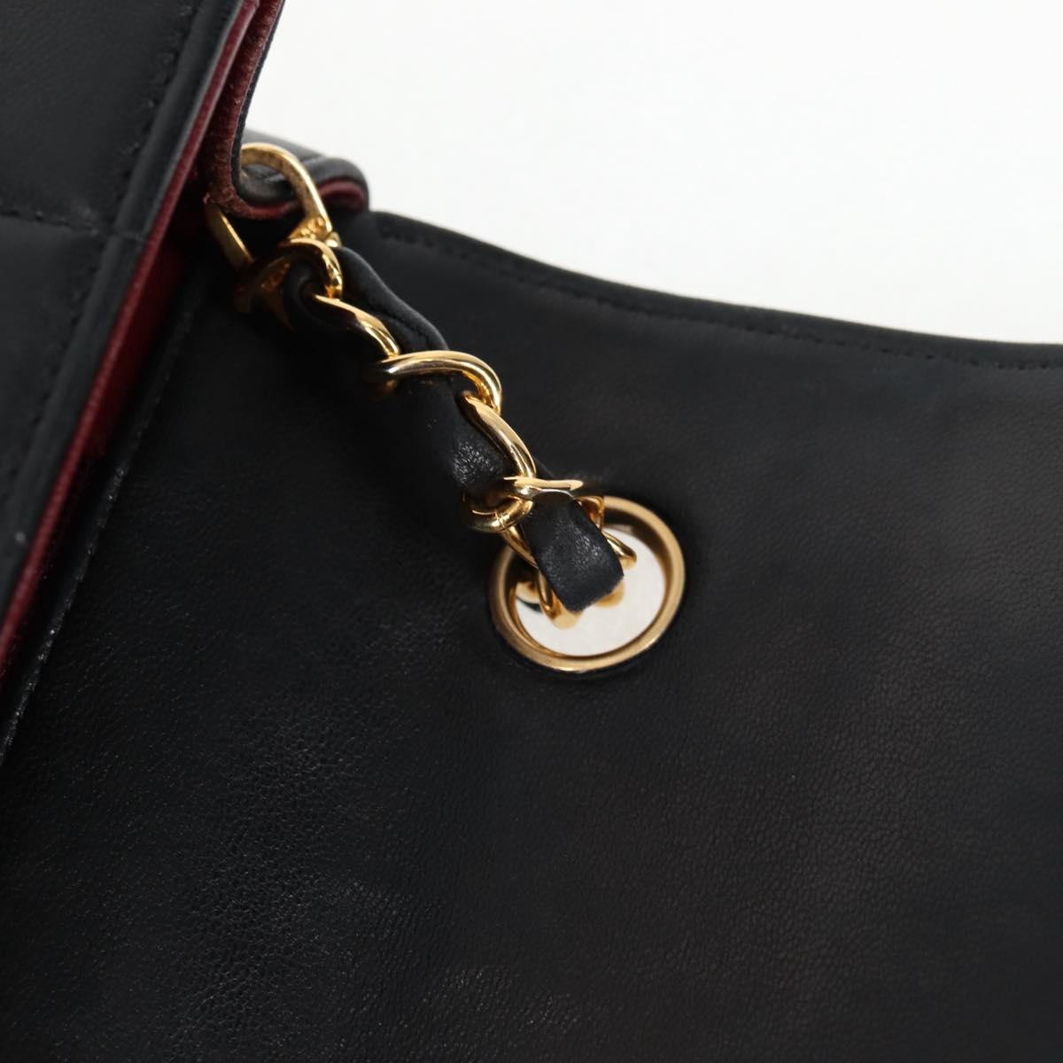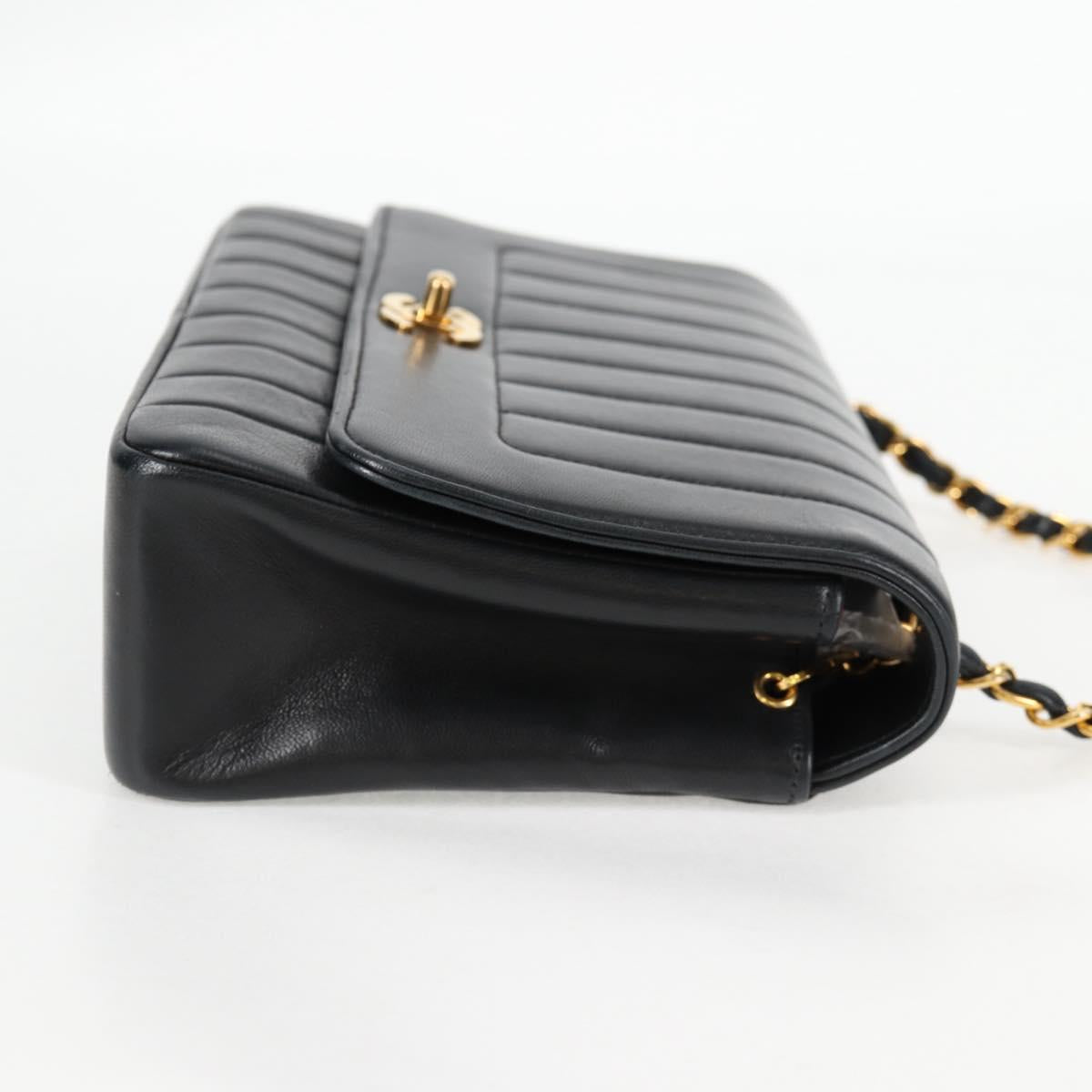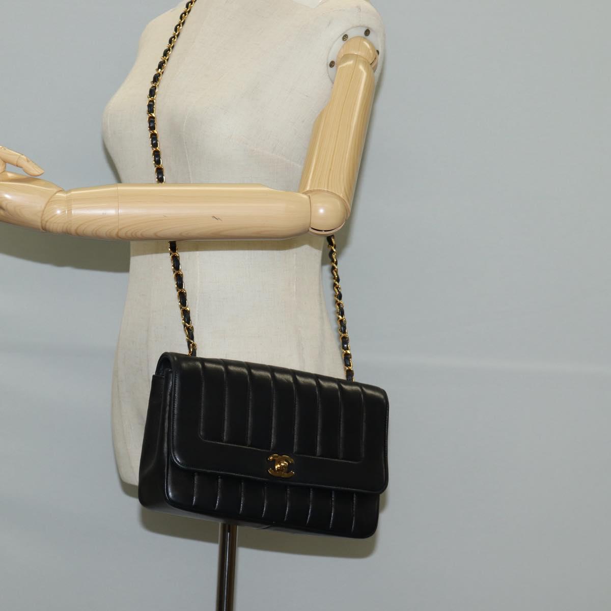 CHANEL Mademoiselle Chain Shoulder Bag Lamb Skin Black Gold CC Auth PP696V