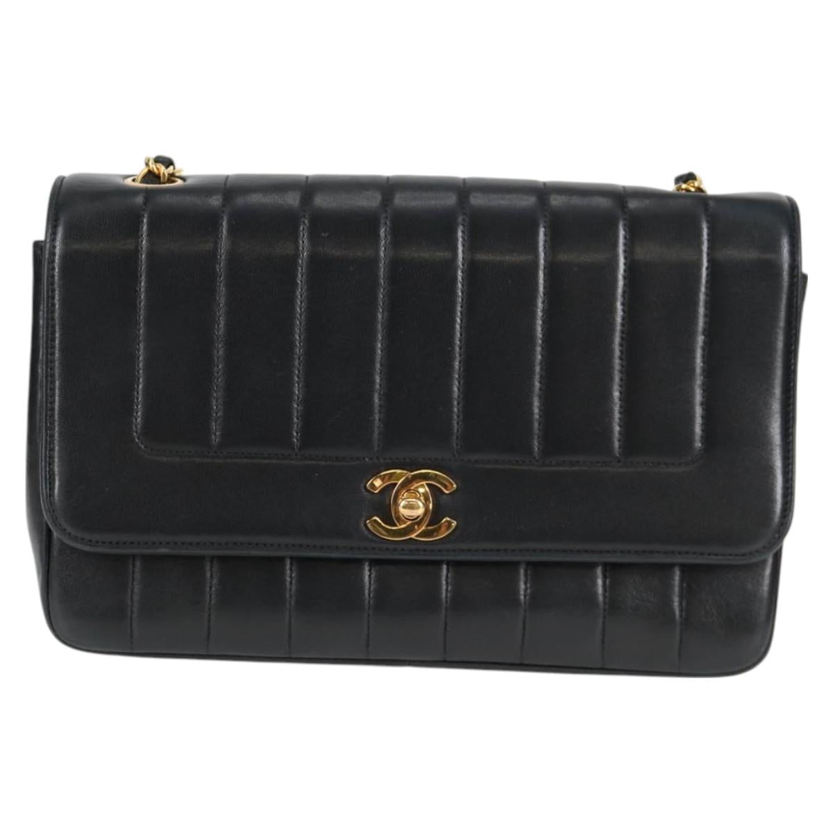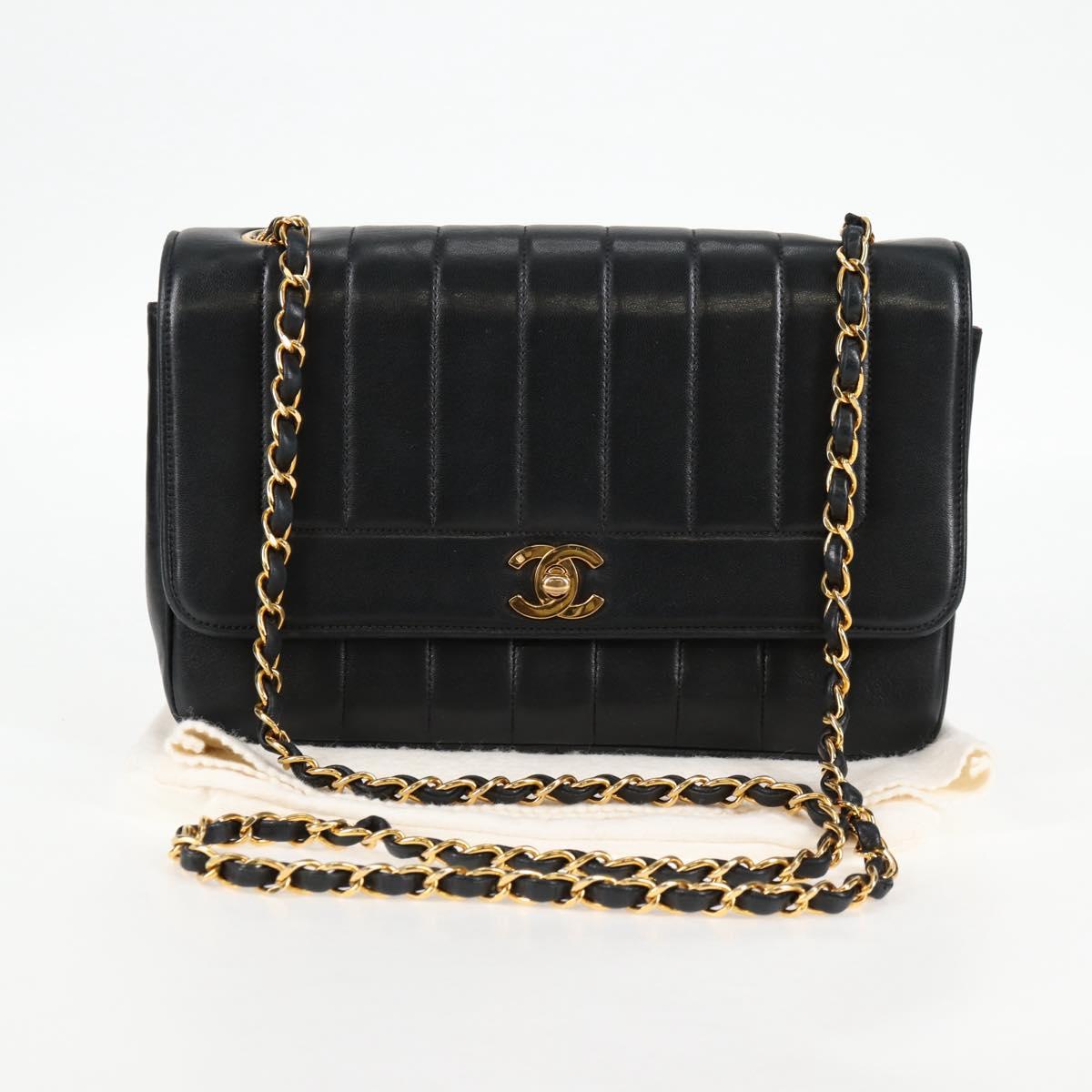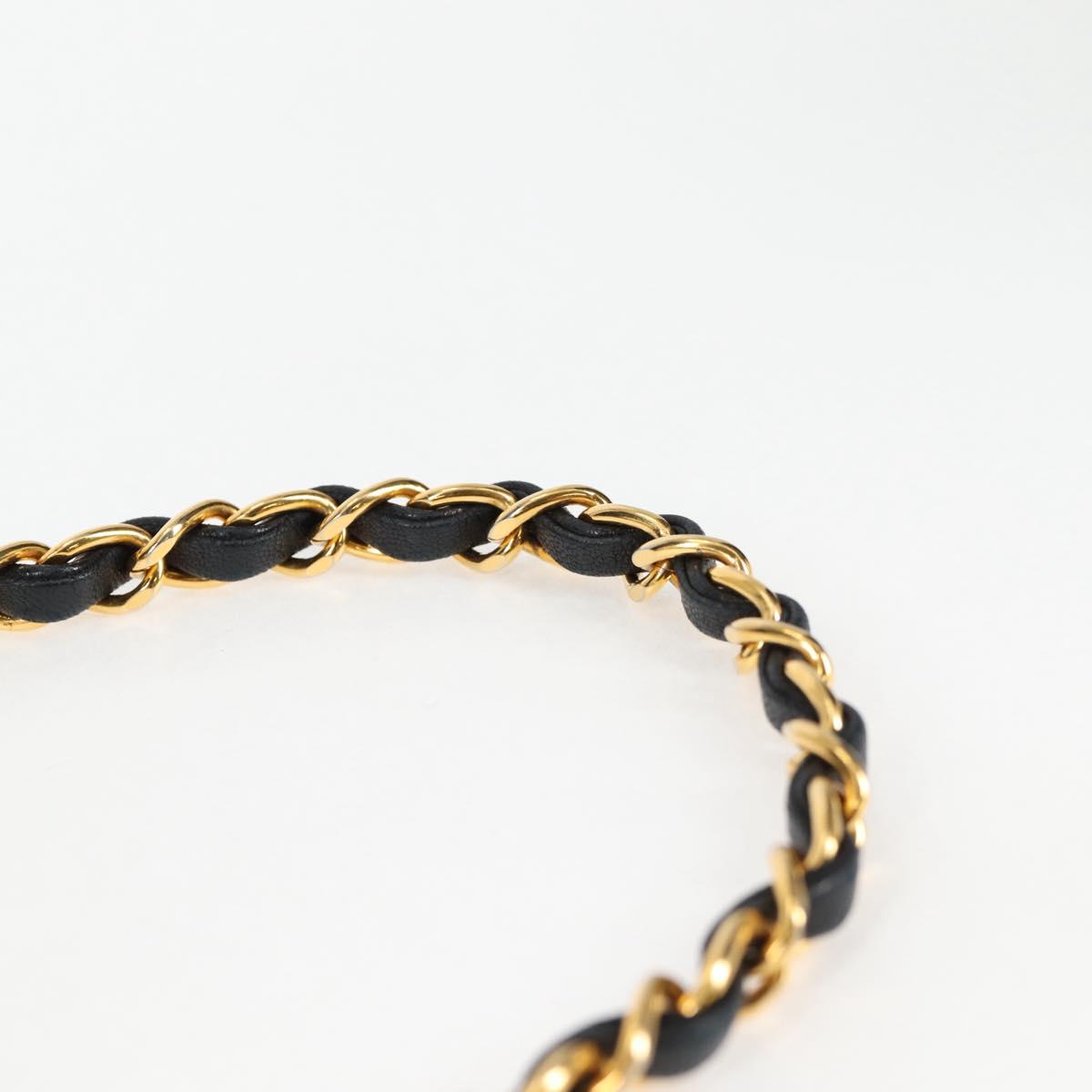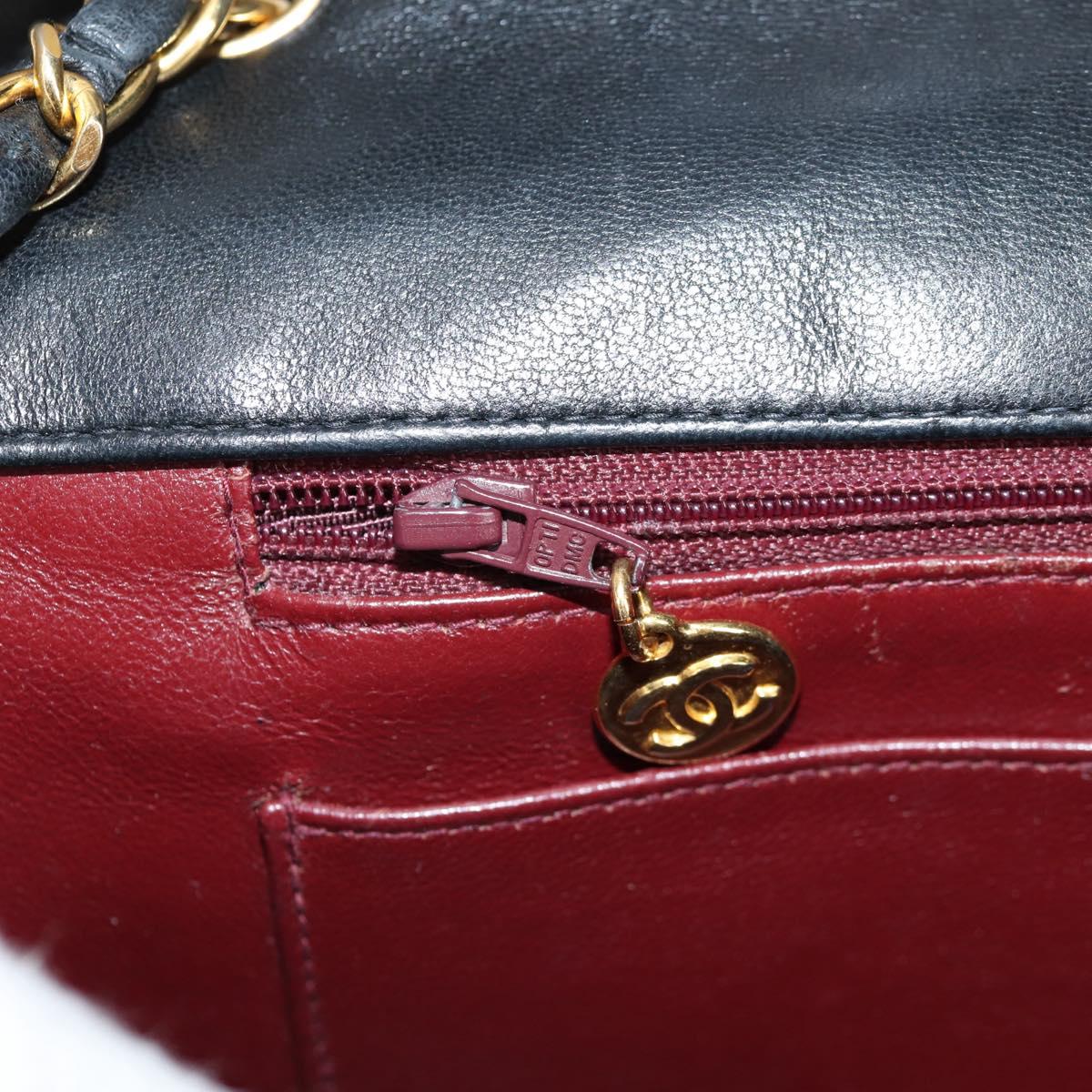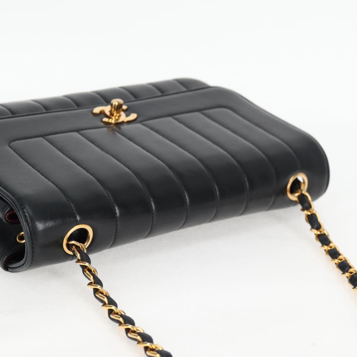 CHANEL Mademoiselle Chain Shoulder Bag Lamb Skin Black Gold CC Auth PP696V