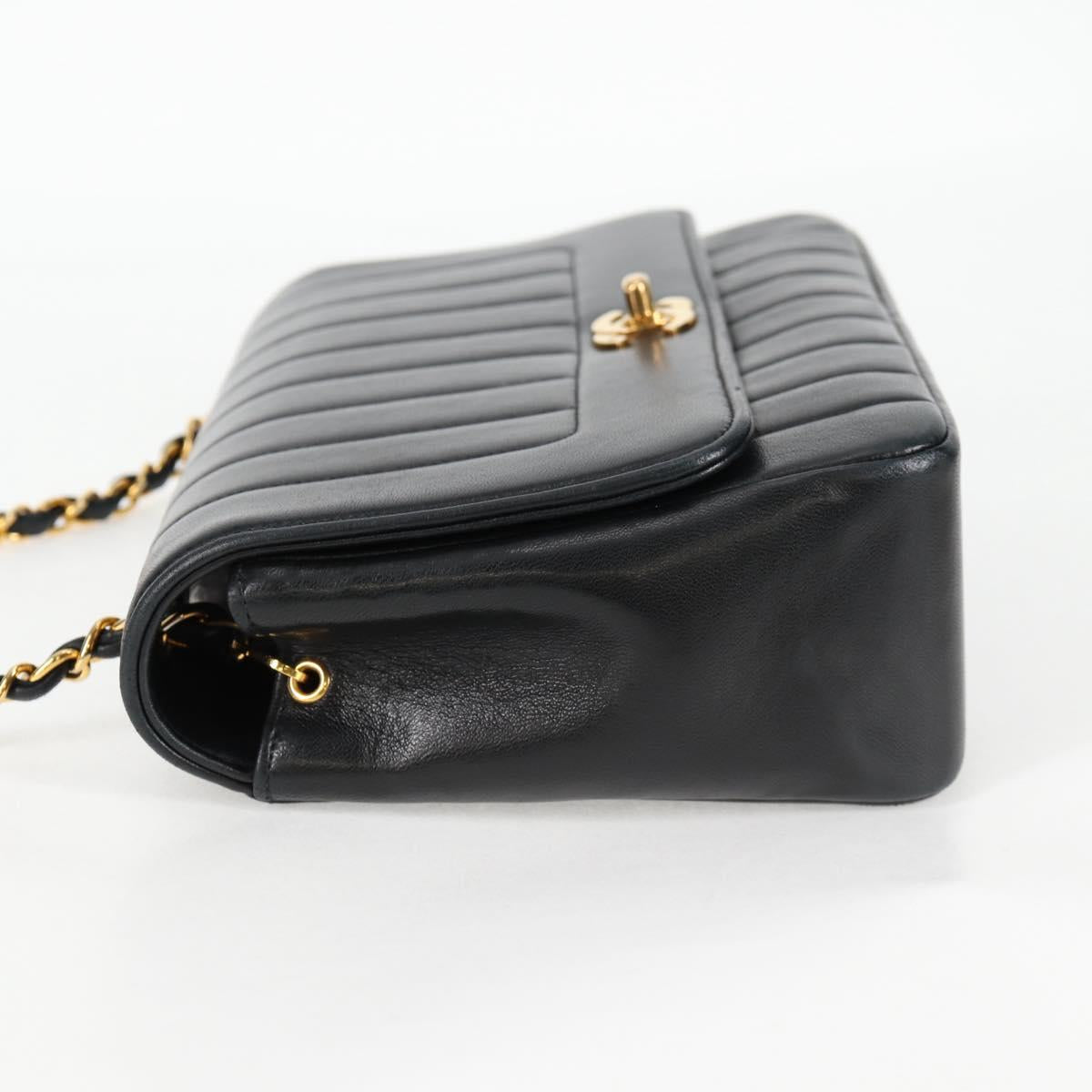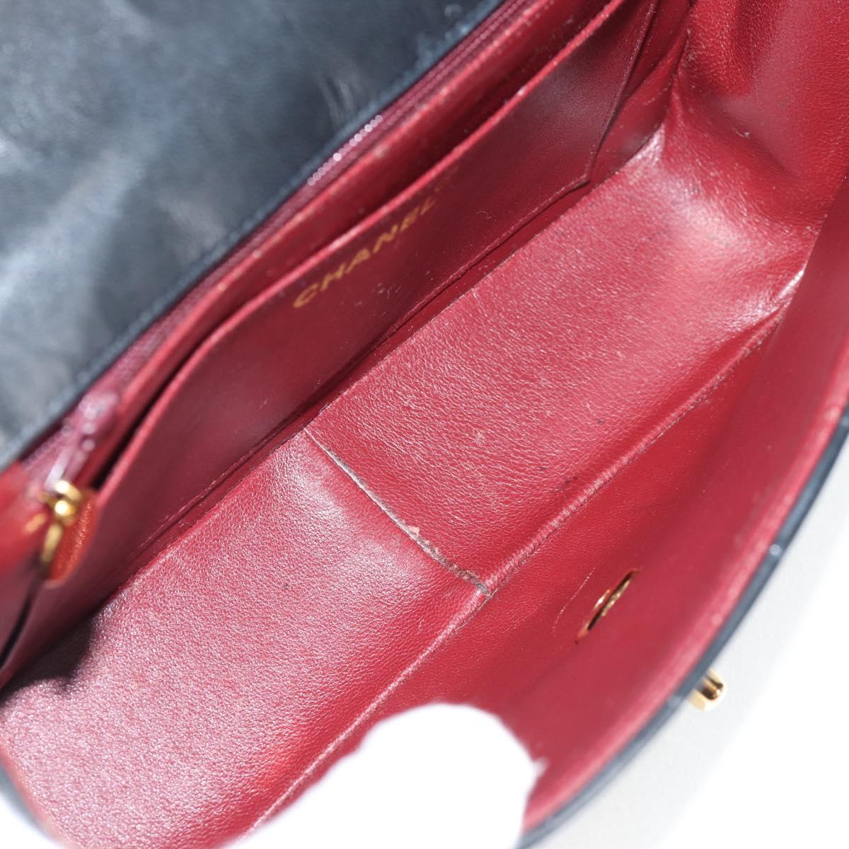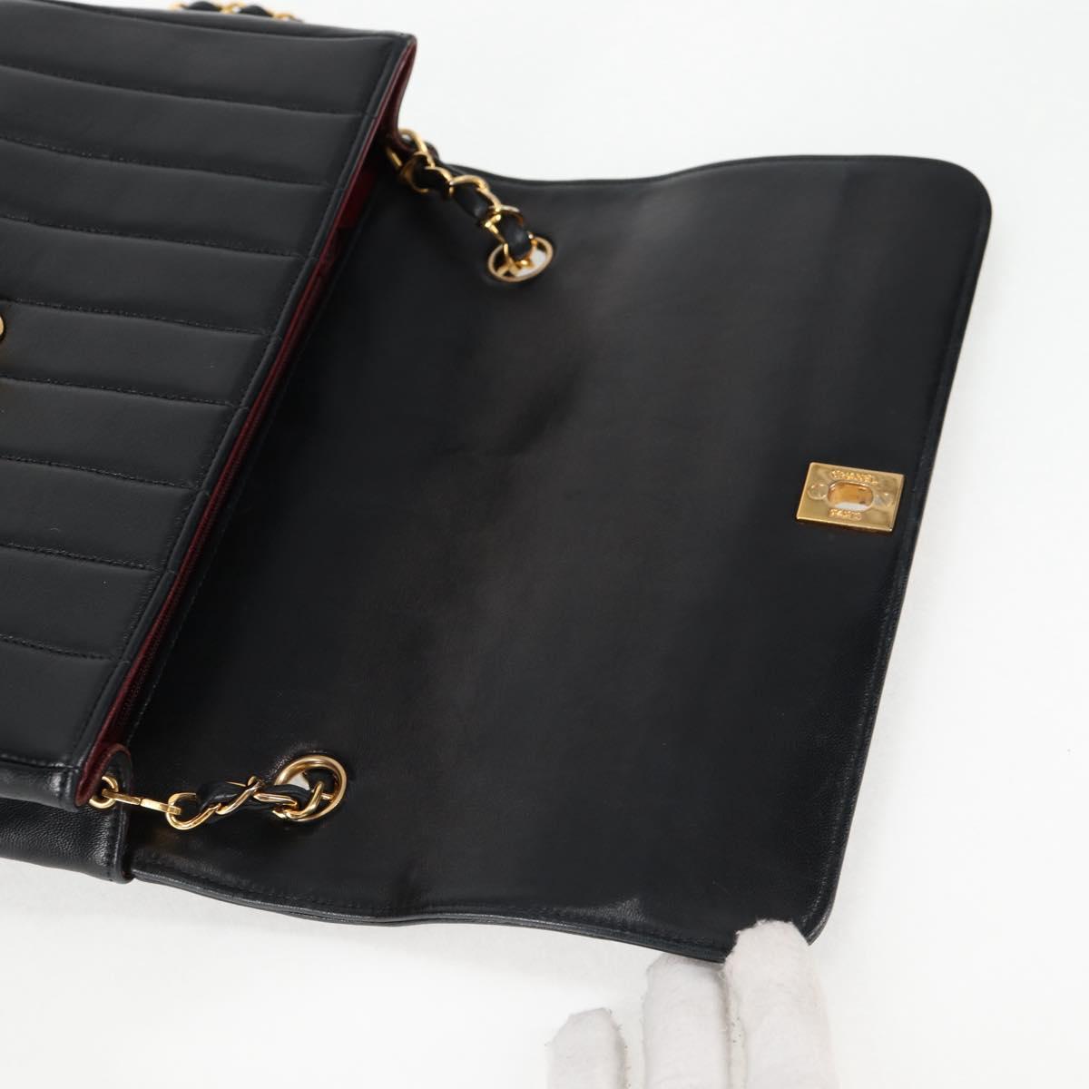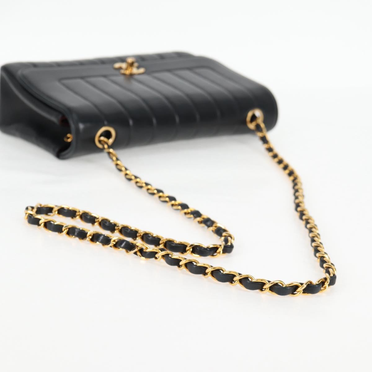 CHANEL Mademoiselle Chain Shoulder Bag Lamb Skin Black Gold CC Auth PP696V