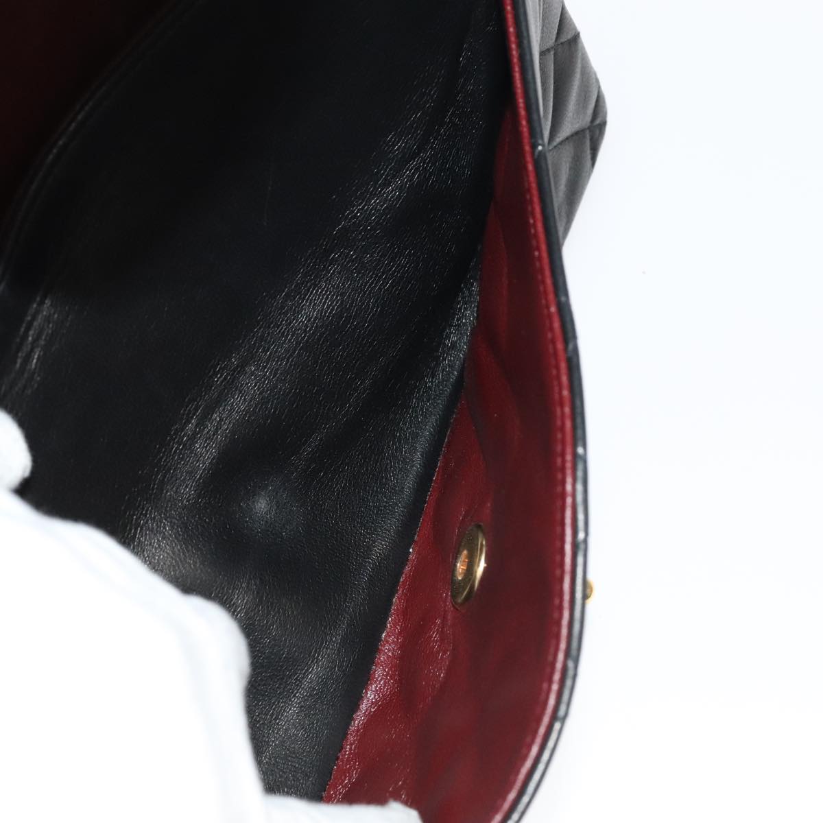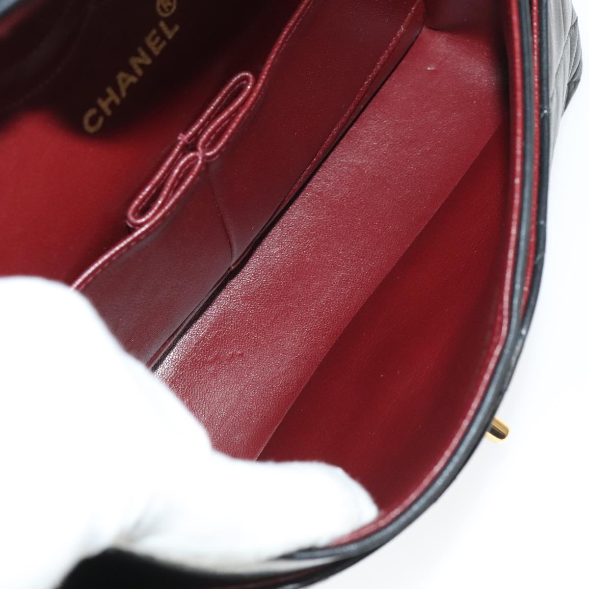 CHANEL Matelasse 25 Double Flap Hand Bag Lamb Skin Black Gold CC Auth yk16193AV