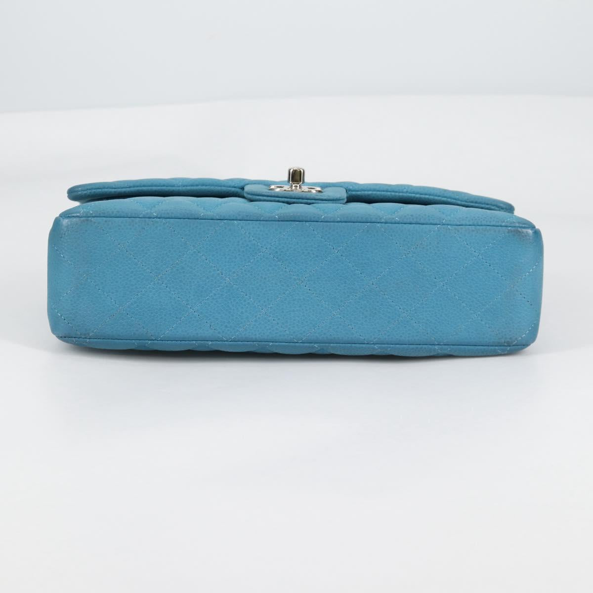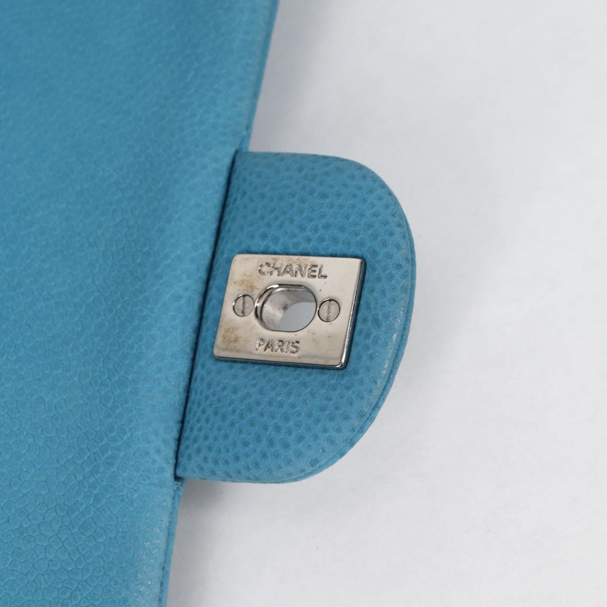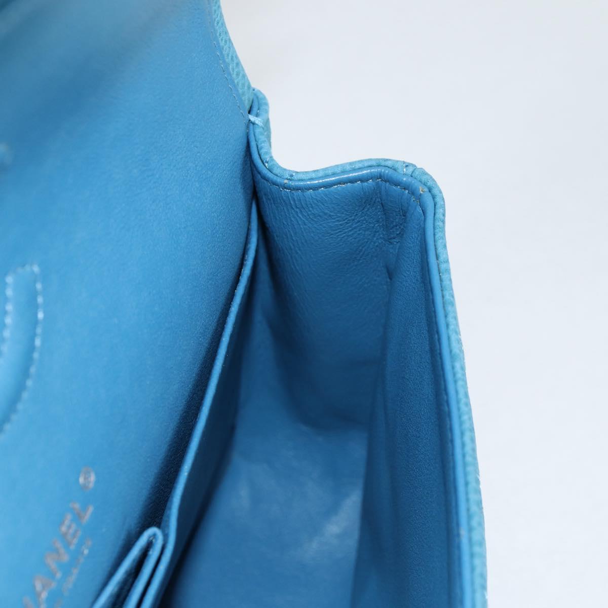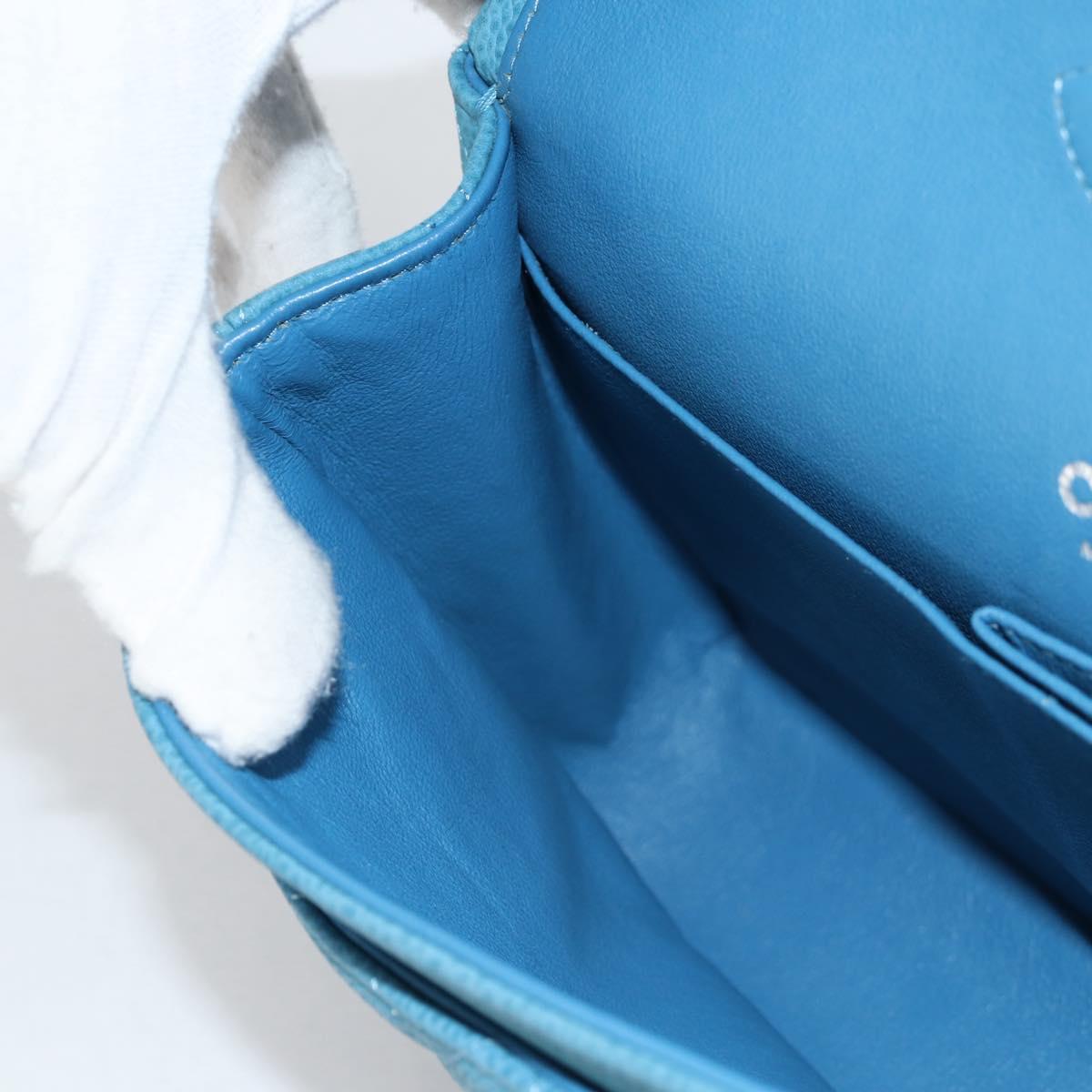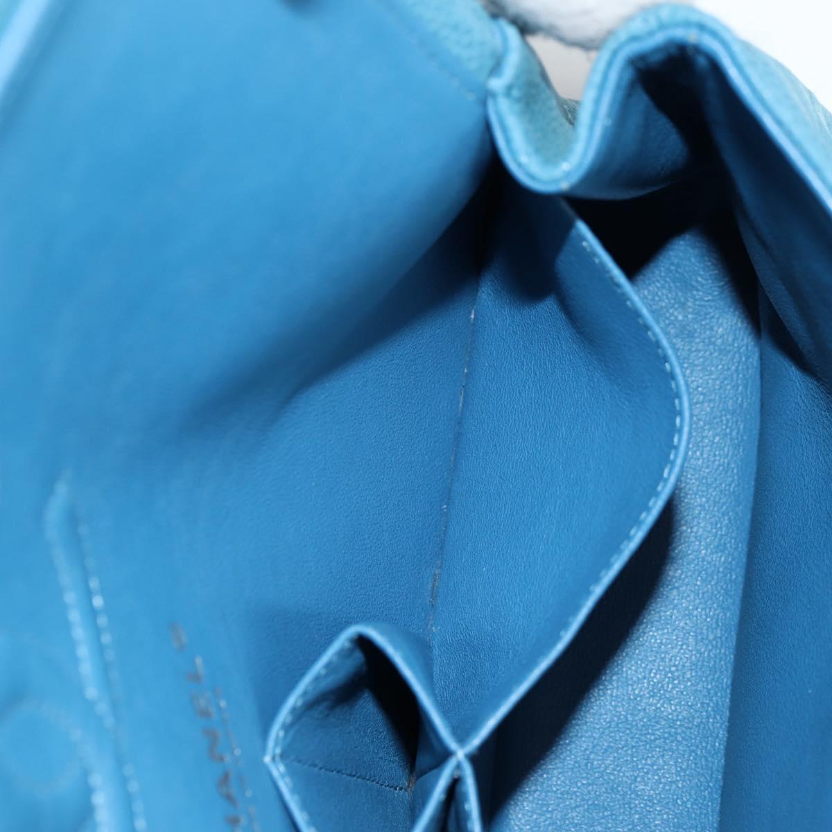 CHANEL Matelasse 25 Double Flap Chain Bag Caviar Skin Blue CC Auth 136821M