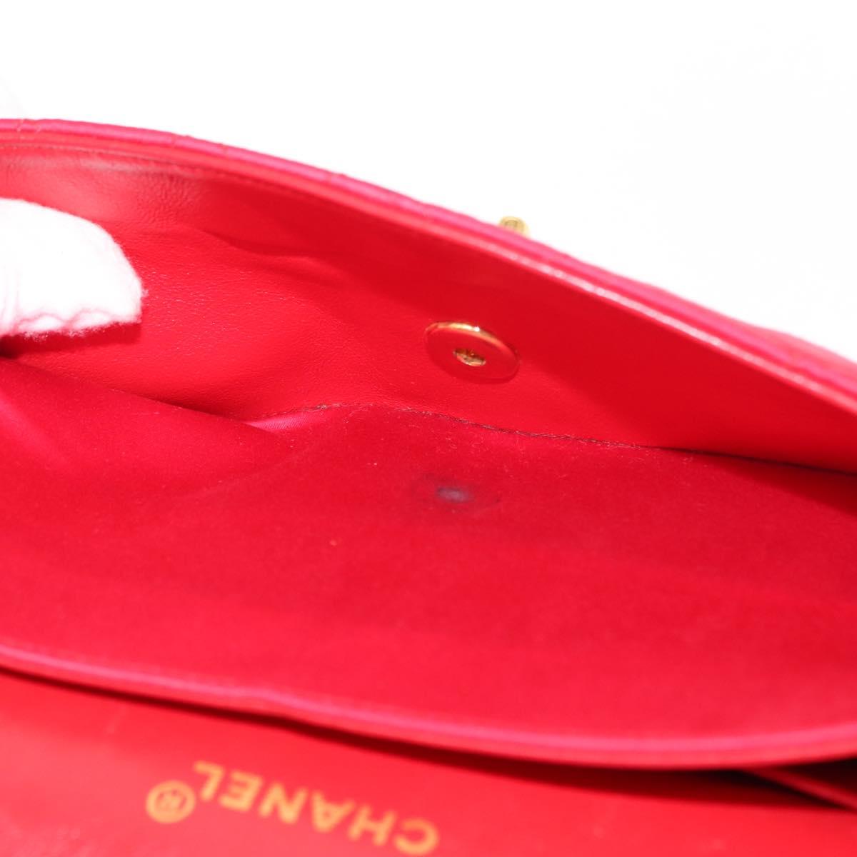 CHANEL Matelasse 25 Double Flap Chain Shoulder Bag Satin Red Gold CC Auth 145843