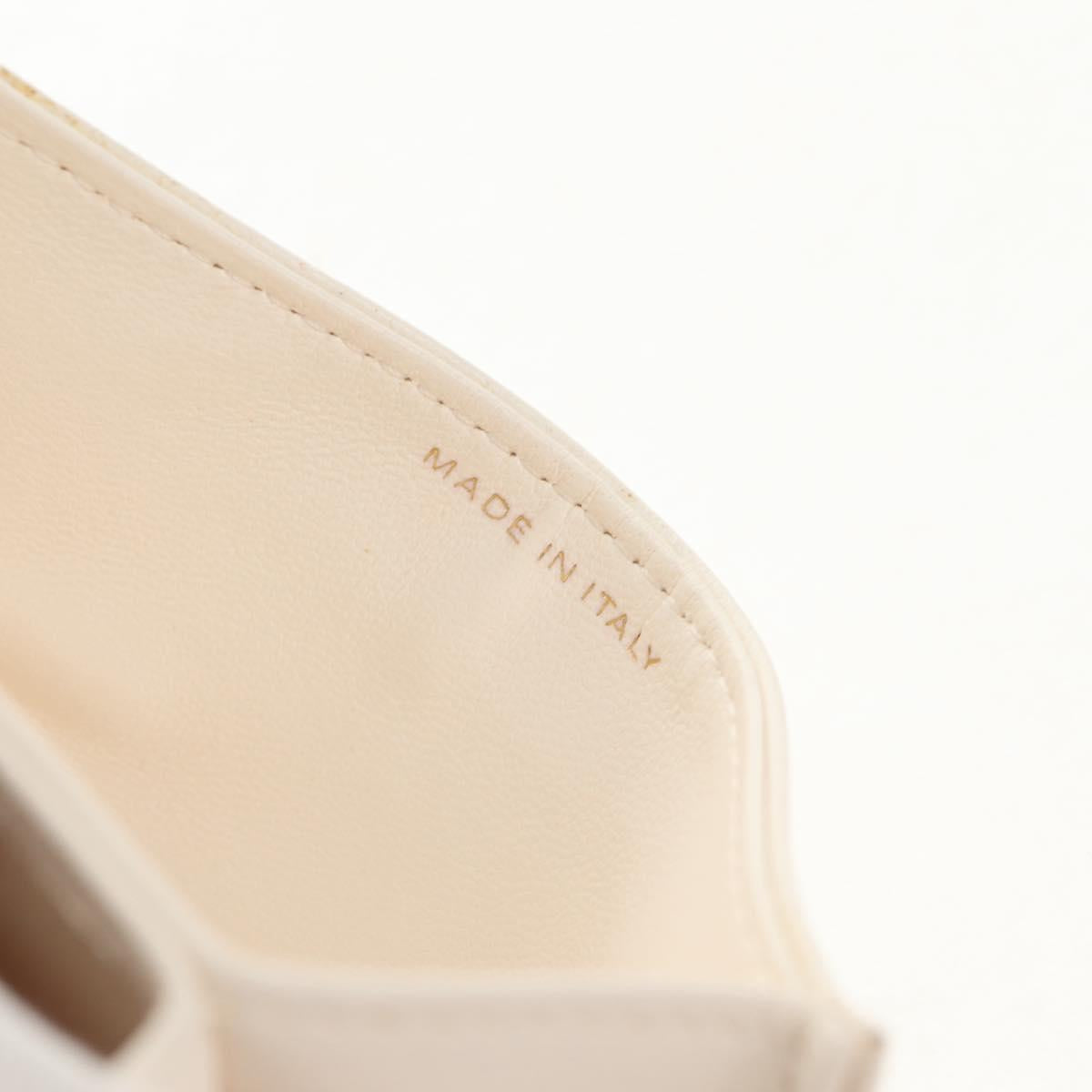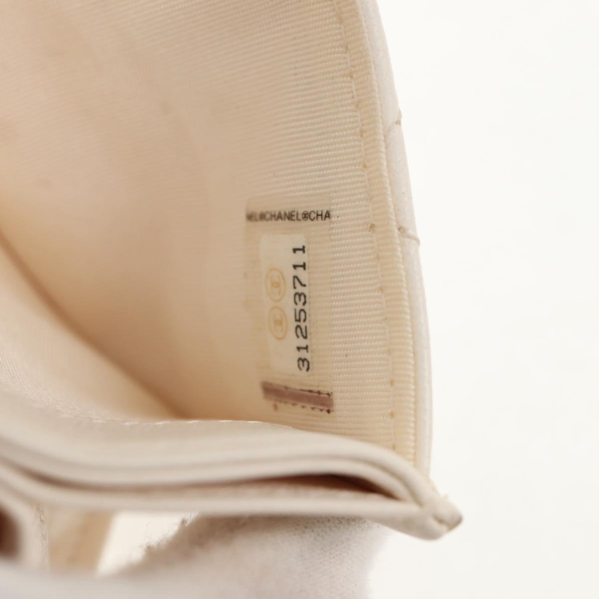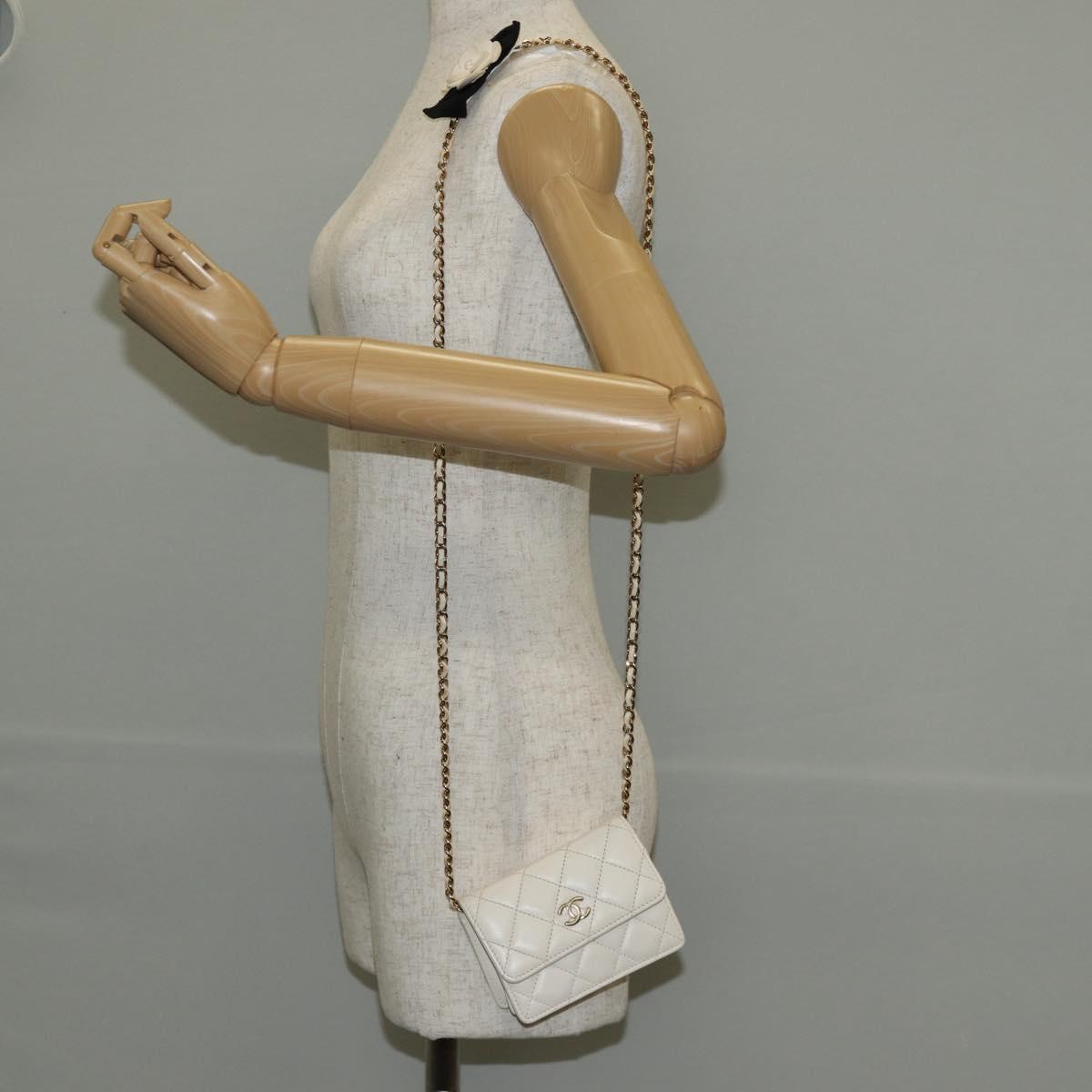 CHANEL Matelasse Camellia Chain Pouch Lamb Skin White Gold CC Auth 146359V