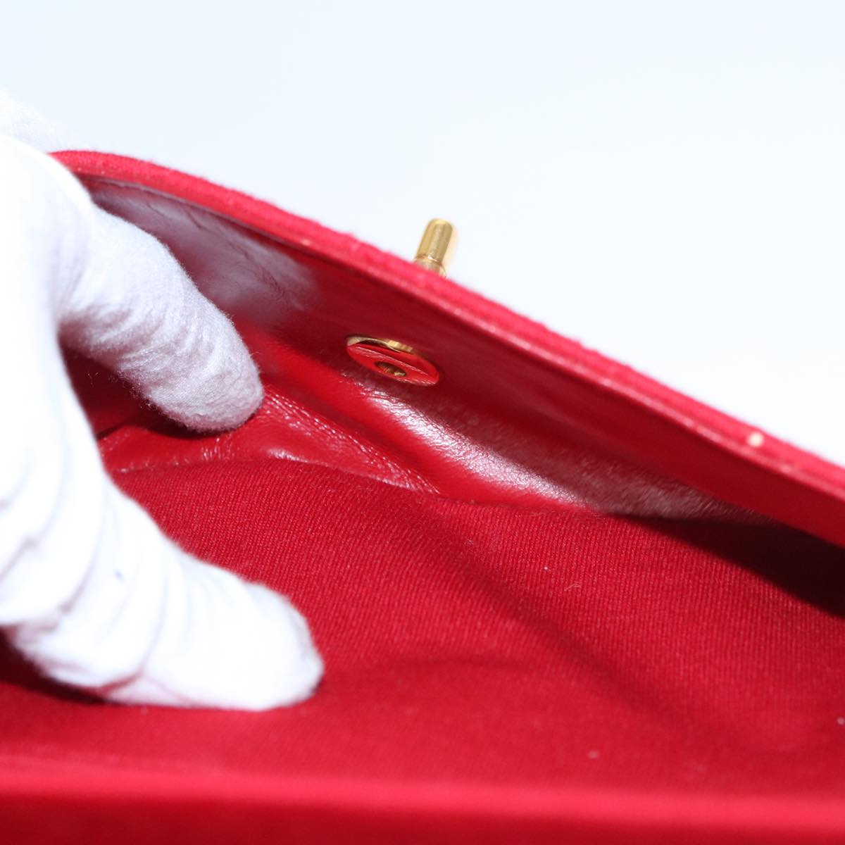 CHANEL Matelasse Chain Shoulder Bag Cotton Red Gold CC Auth 99908
