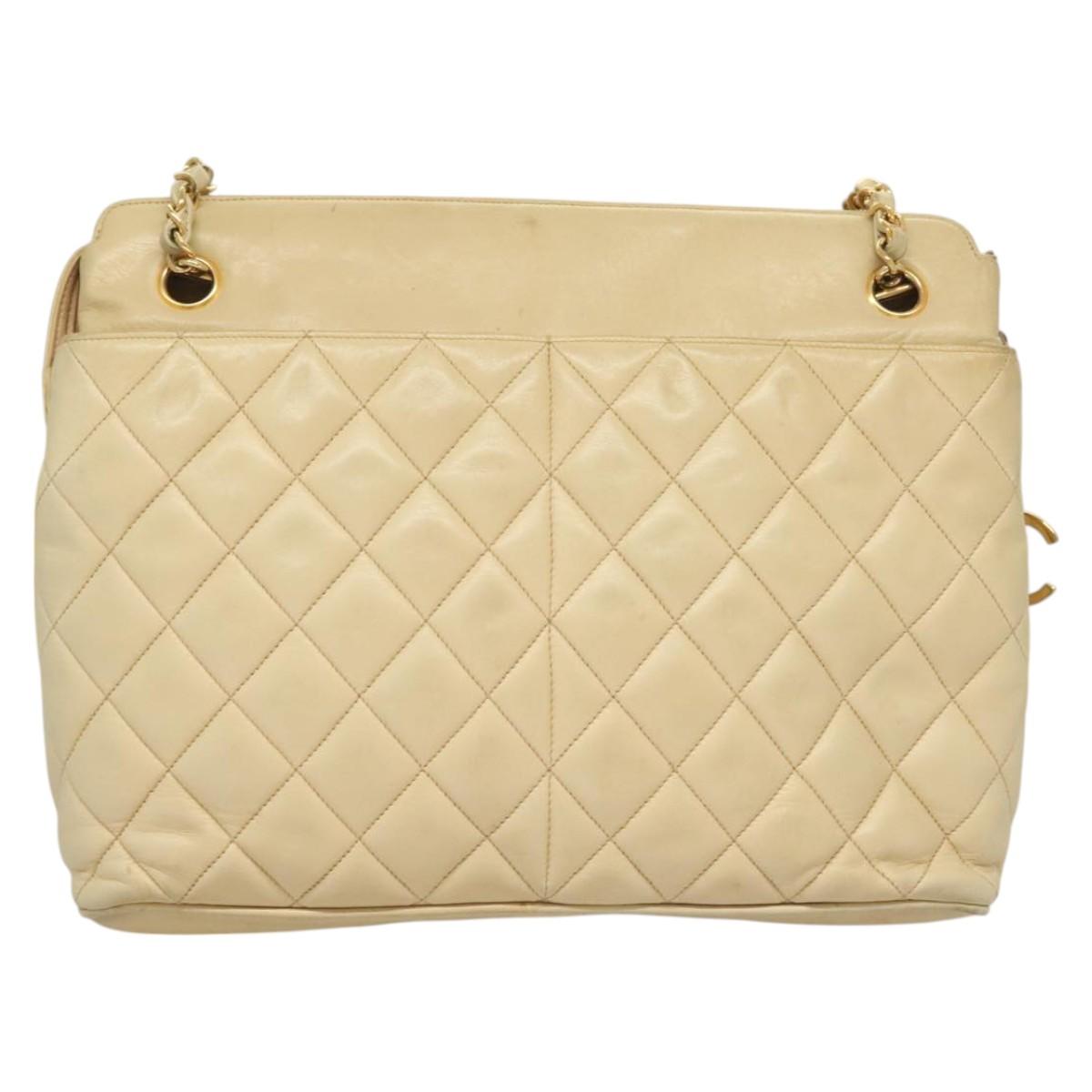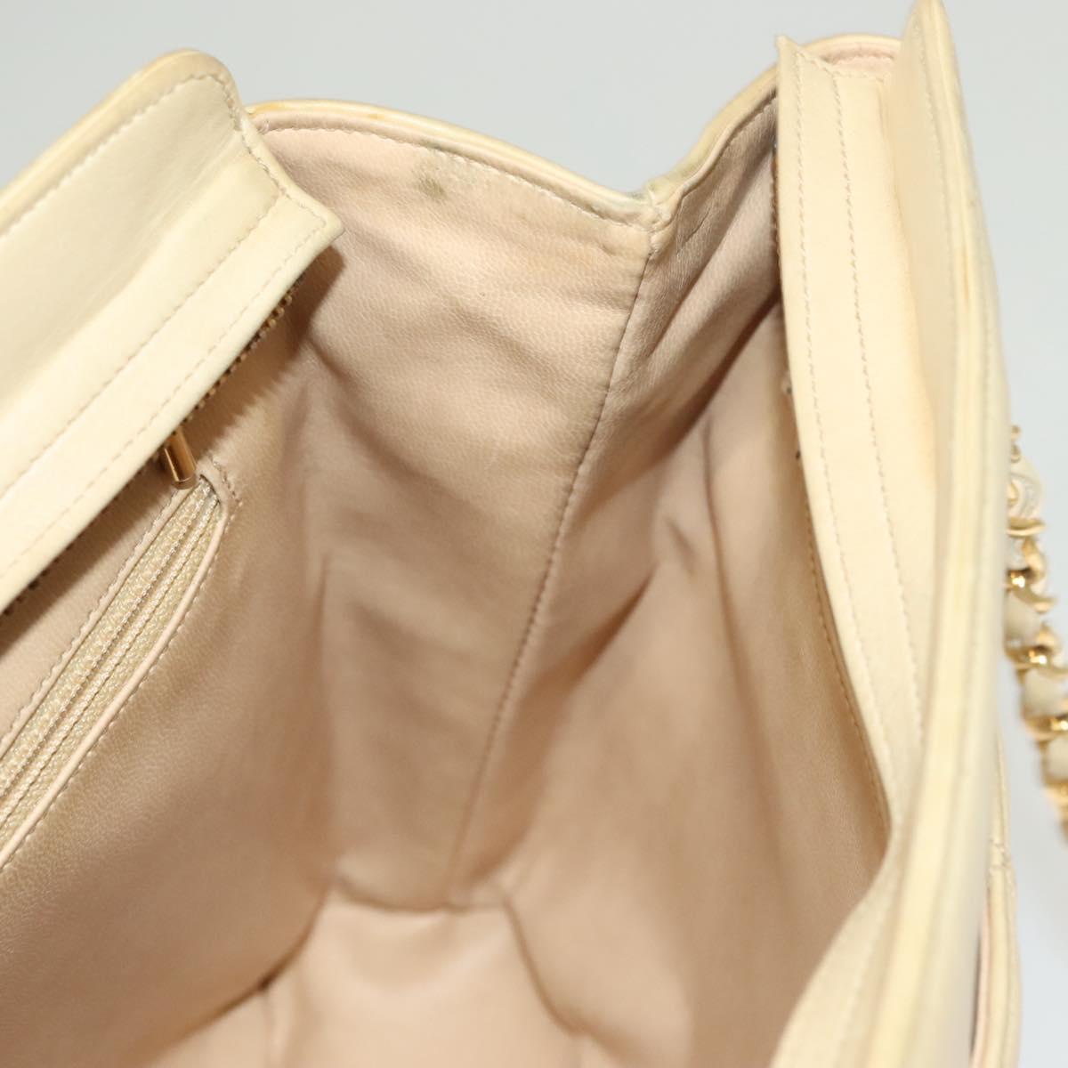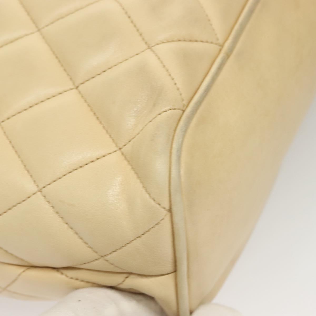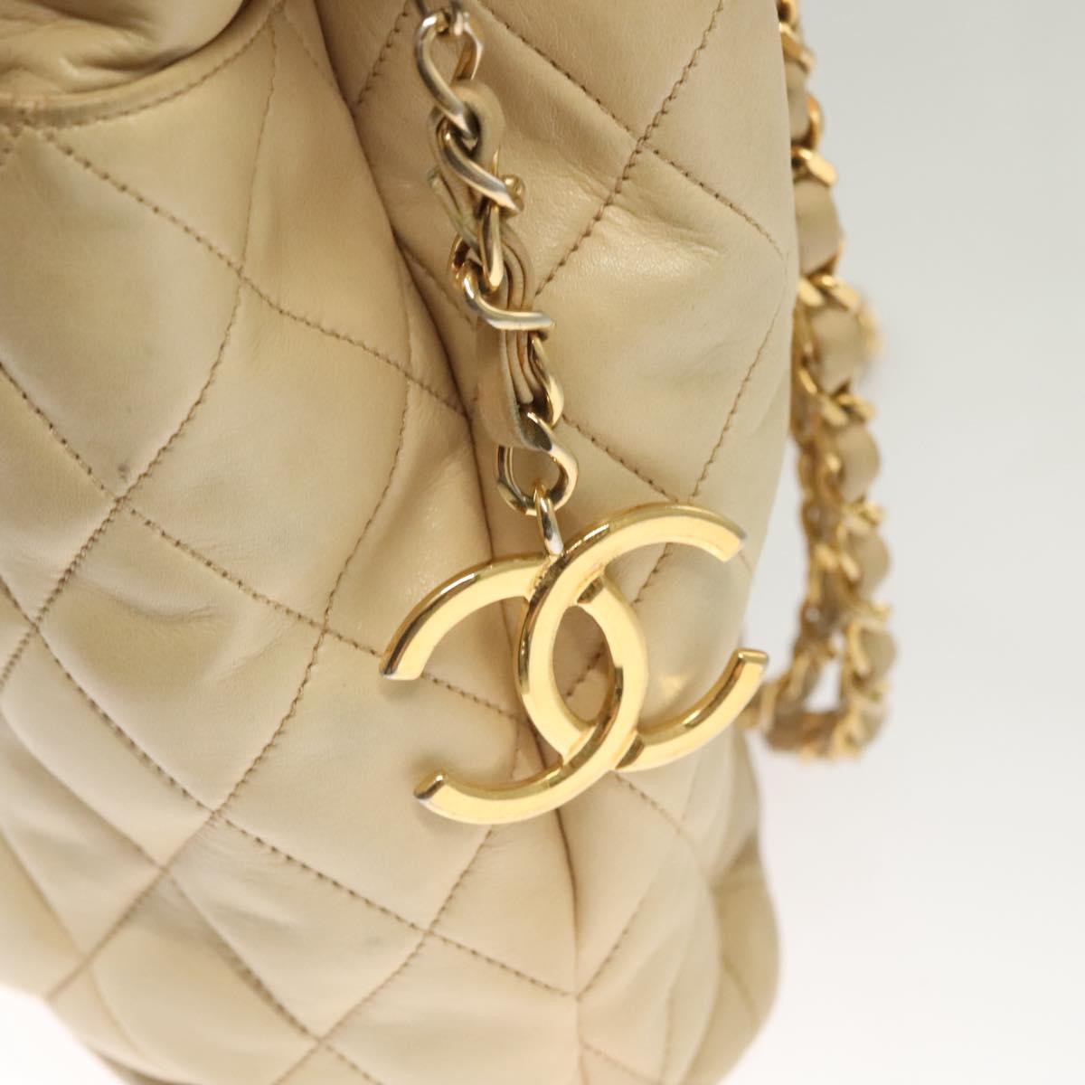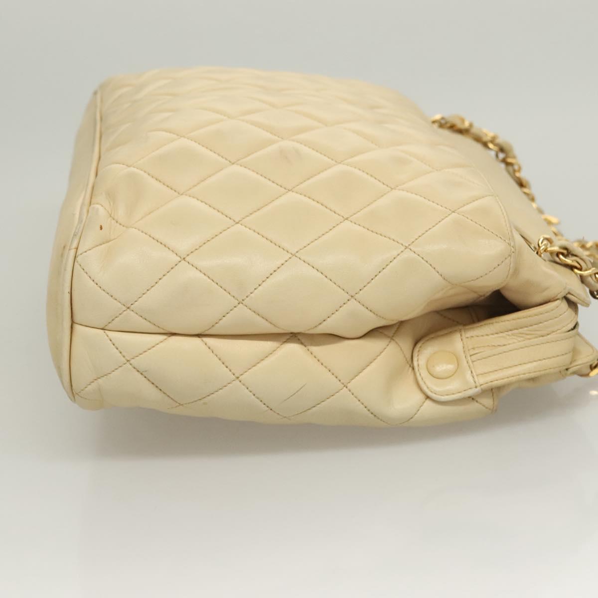 CHANEL Matelasse Chain Shoulder Bag Lamb Skin Beige Gold CC Auth bs27415
