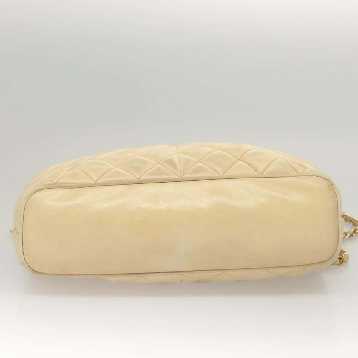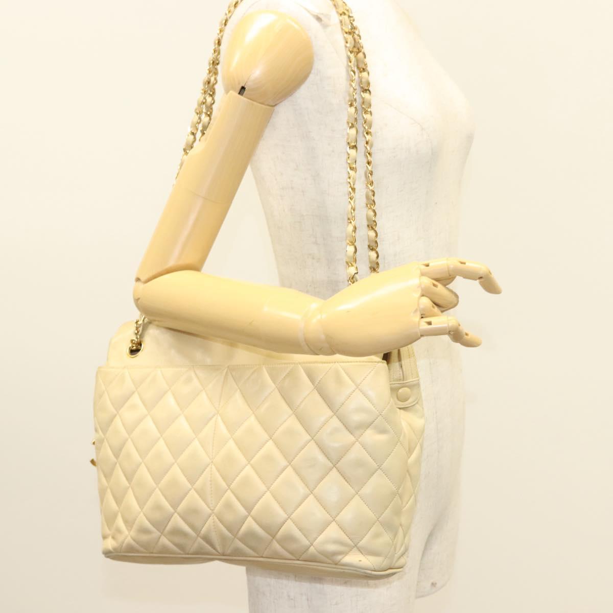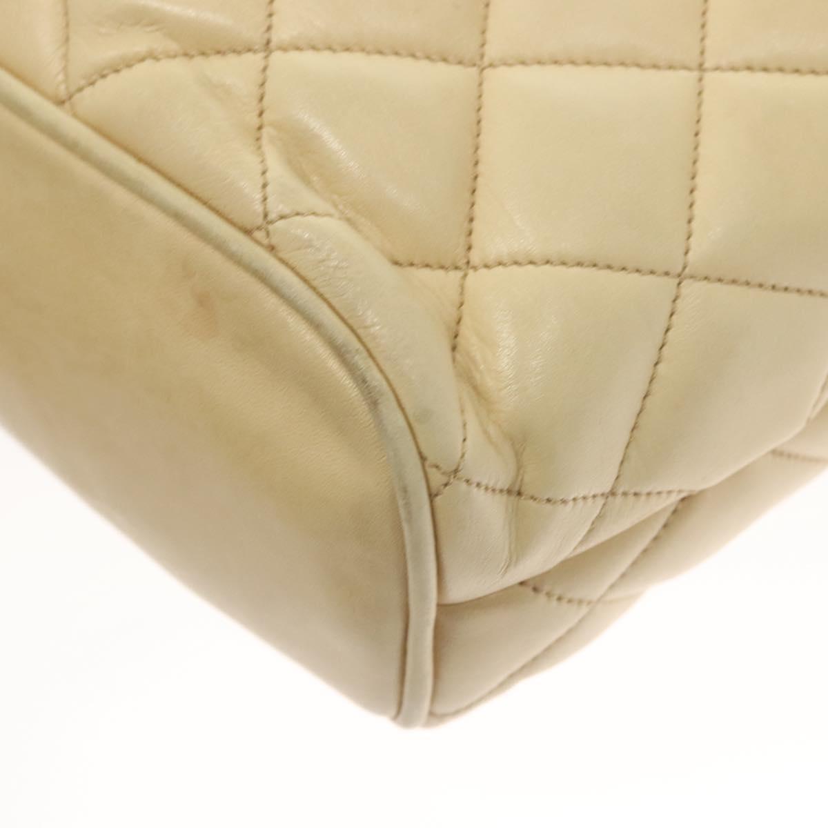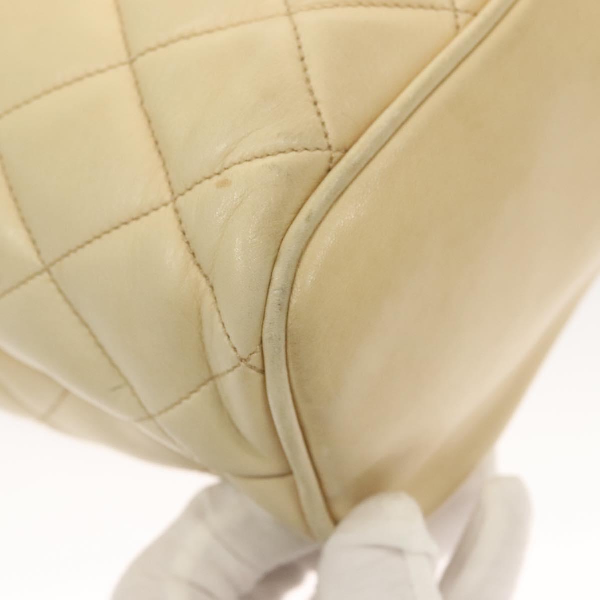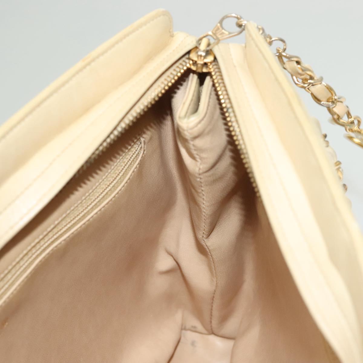 CHANEL Matelasse Chain Shoulder Bag Lamb Skin Beige Gold CC Auth bs27415
