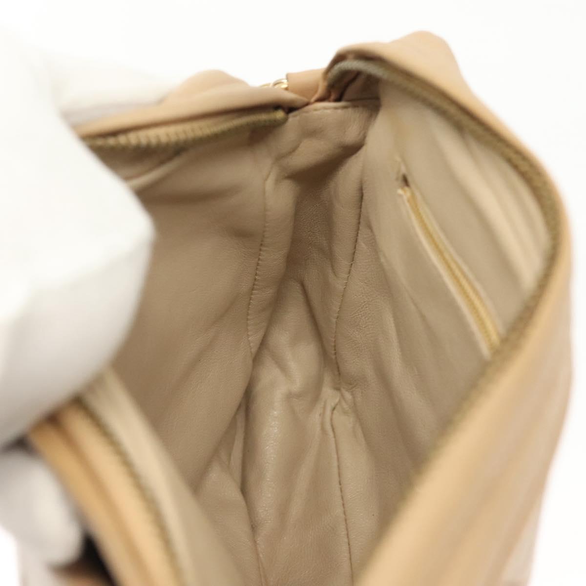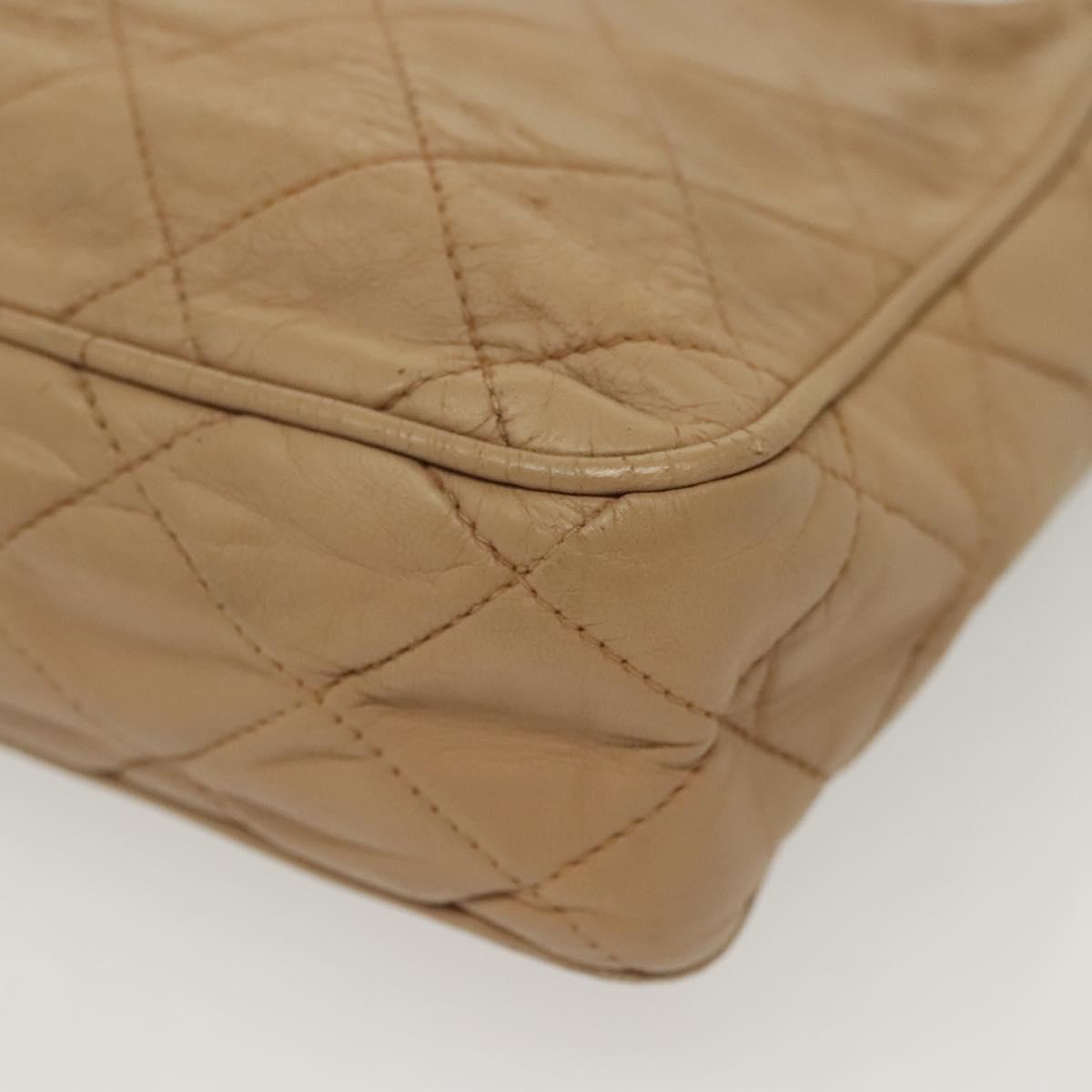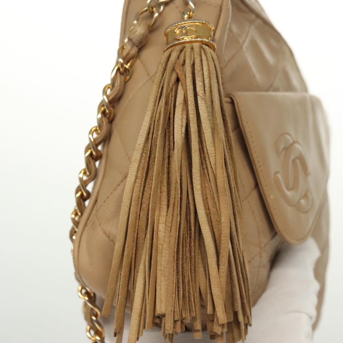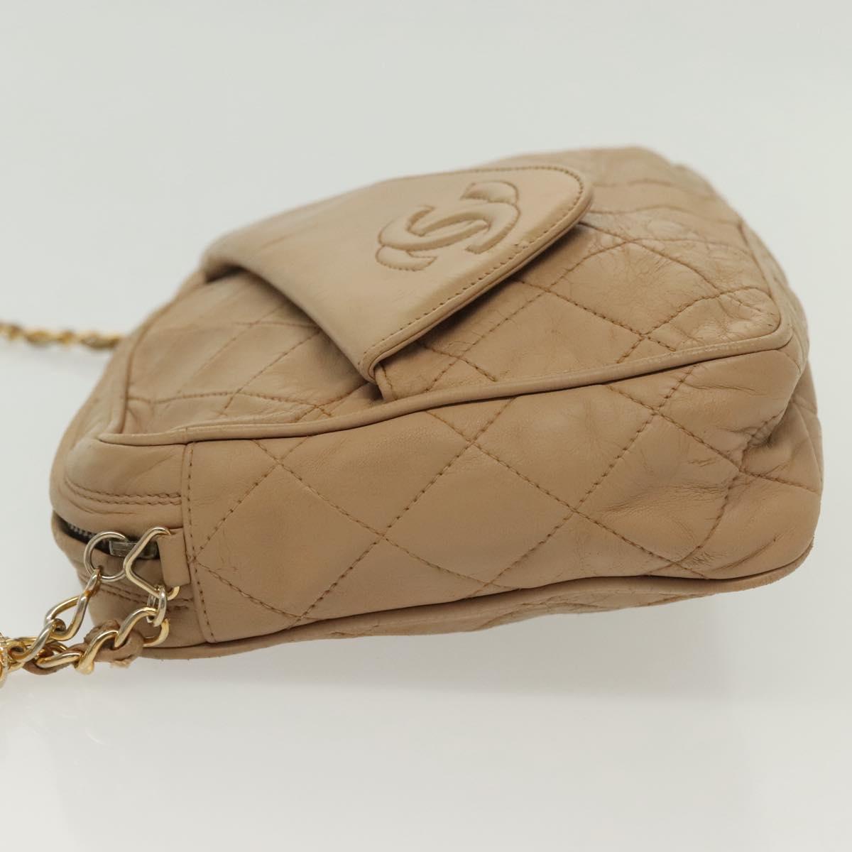 CHANEL Matelasse Chain Shoulder Bag Lamb Skin Beige Gold CC Auth bs28861
