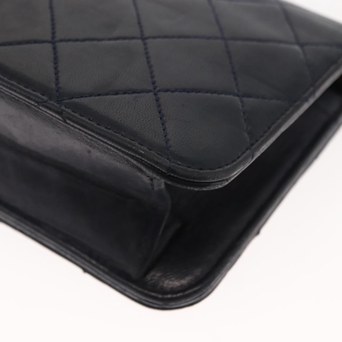 CHANEL Matelasse Chain Shoulder Bag Lamb Skin Navy Gold CC Auth bs29839
