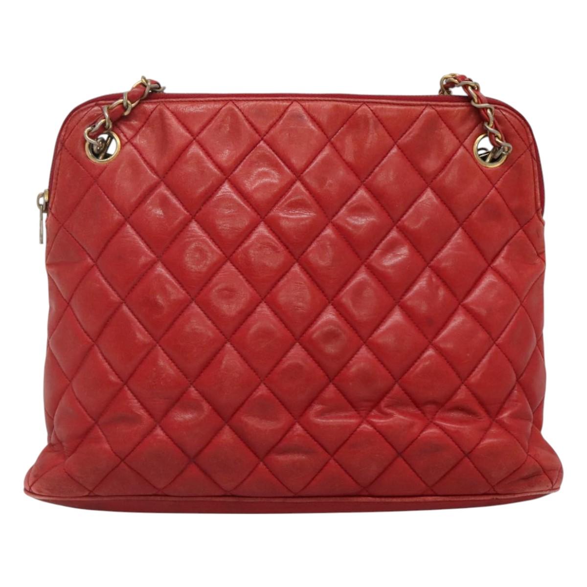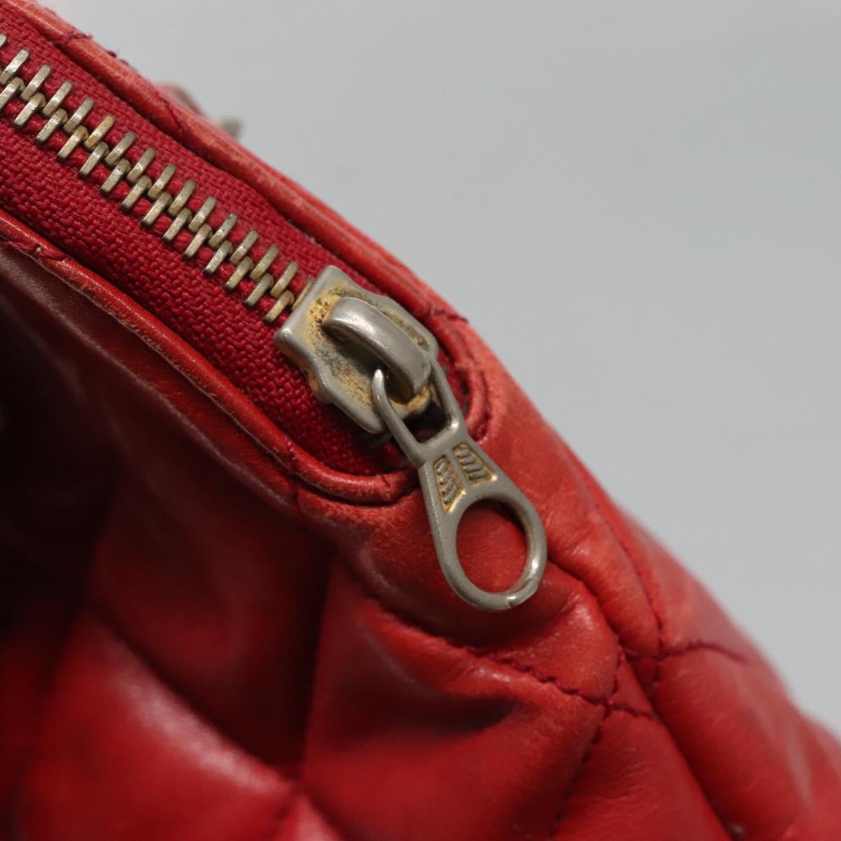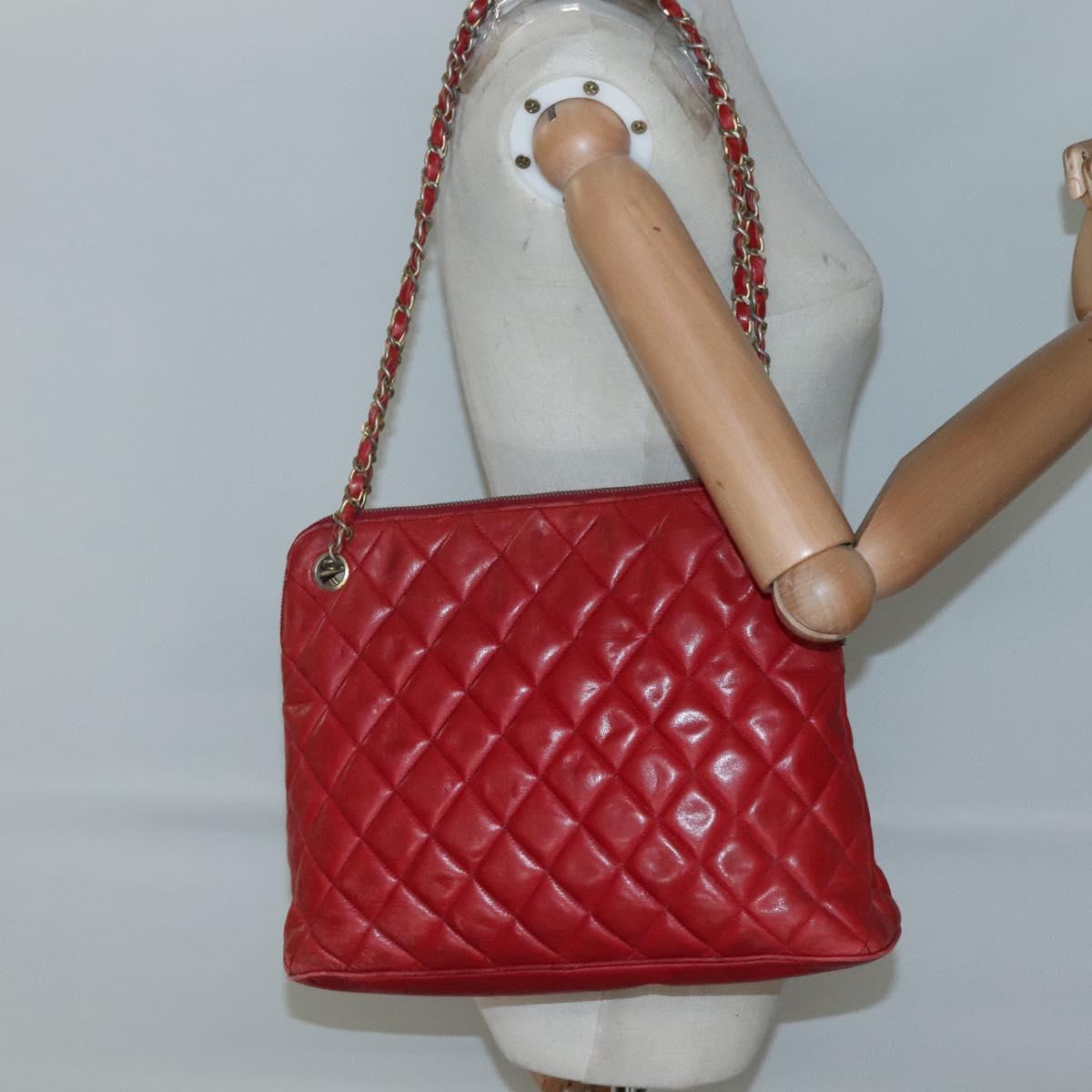 CHANEL Matelasse Chain Shoulder Bag Lamb Skin Red Gold CC Auth BA3499