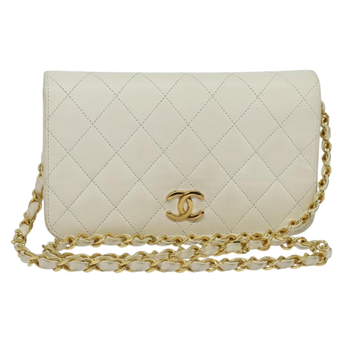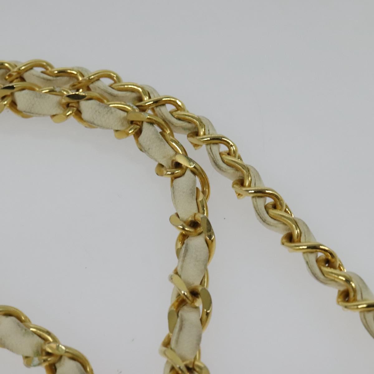 CHANEL Matelasse Chain Shoulder Bag Leather White Gold CC Auth bs29210