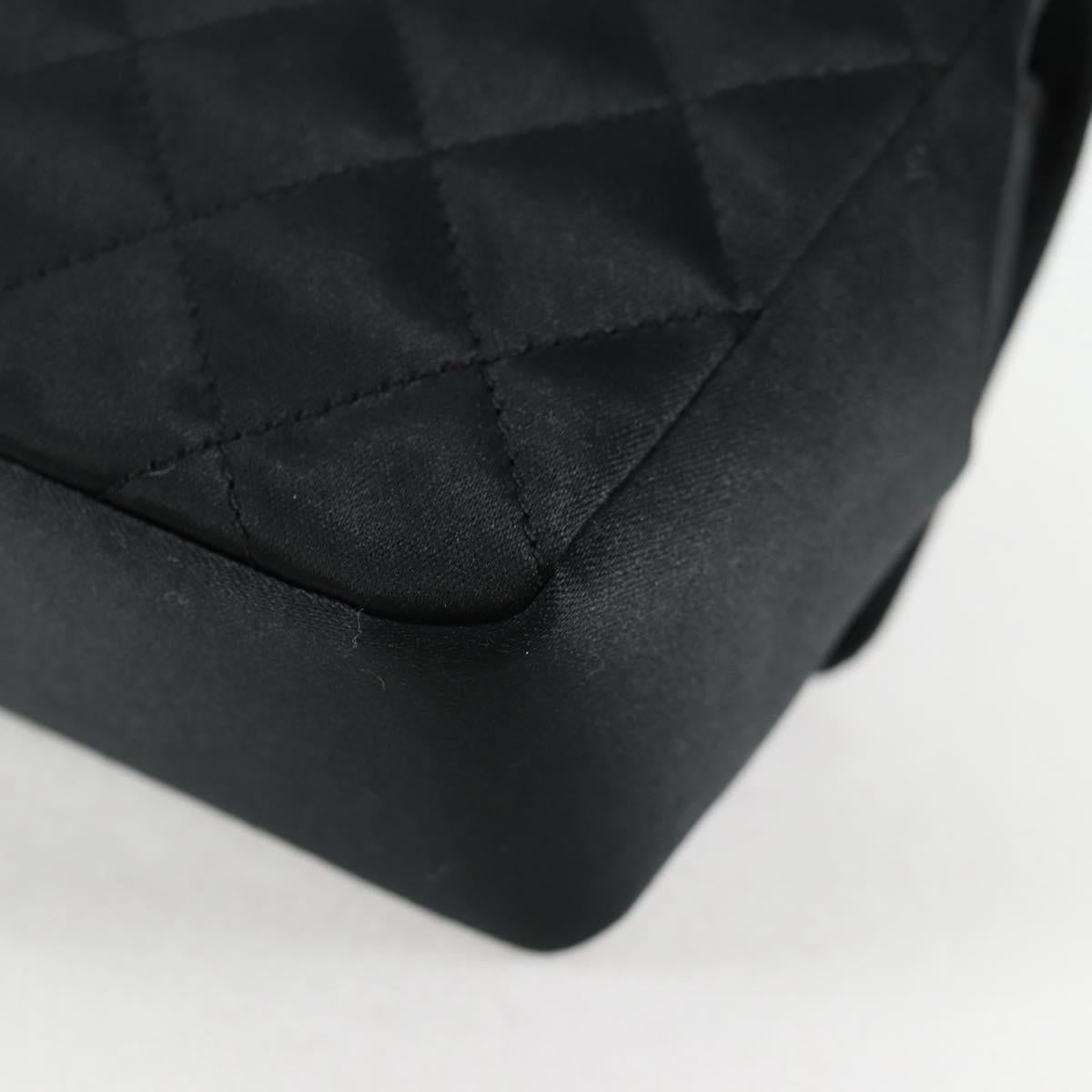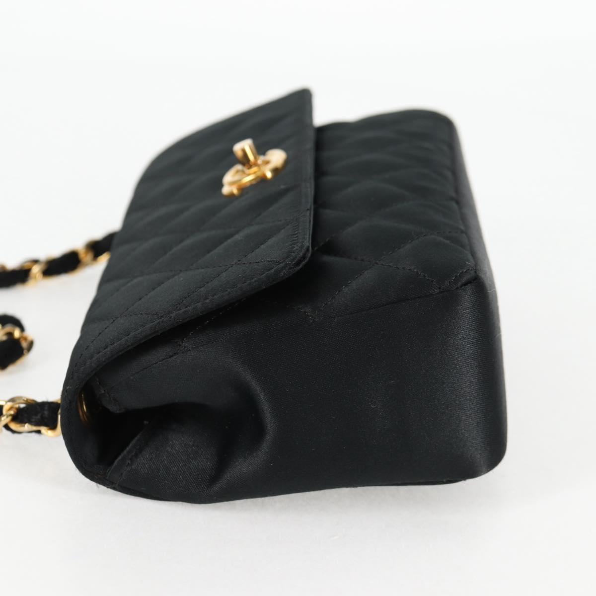 CHANEL Matelasse Chain Shoulder Bag Satin Black Gold CC Auth 126240V
