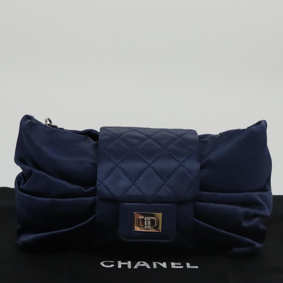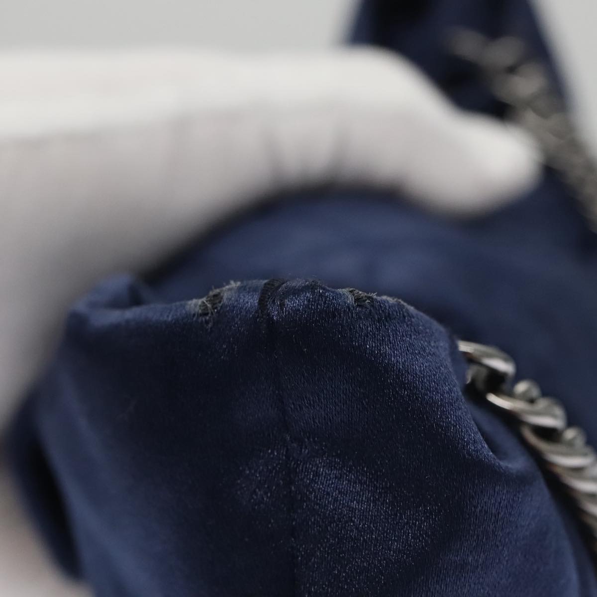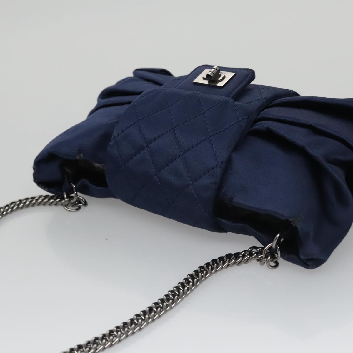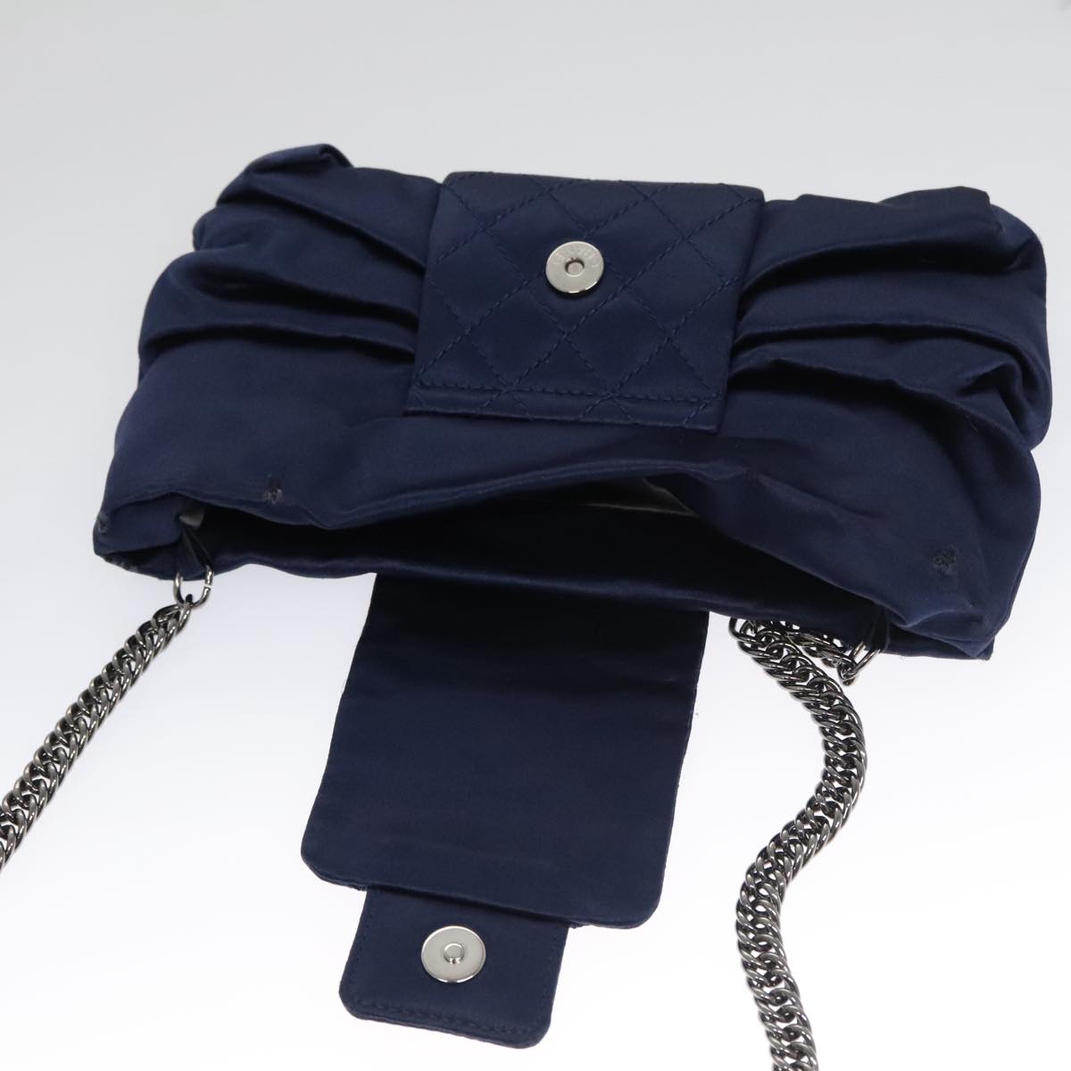 CHANEL Matelasse Chain Shoulder Bag Satin Navy CC Auth 103082