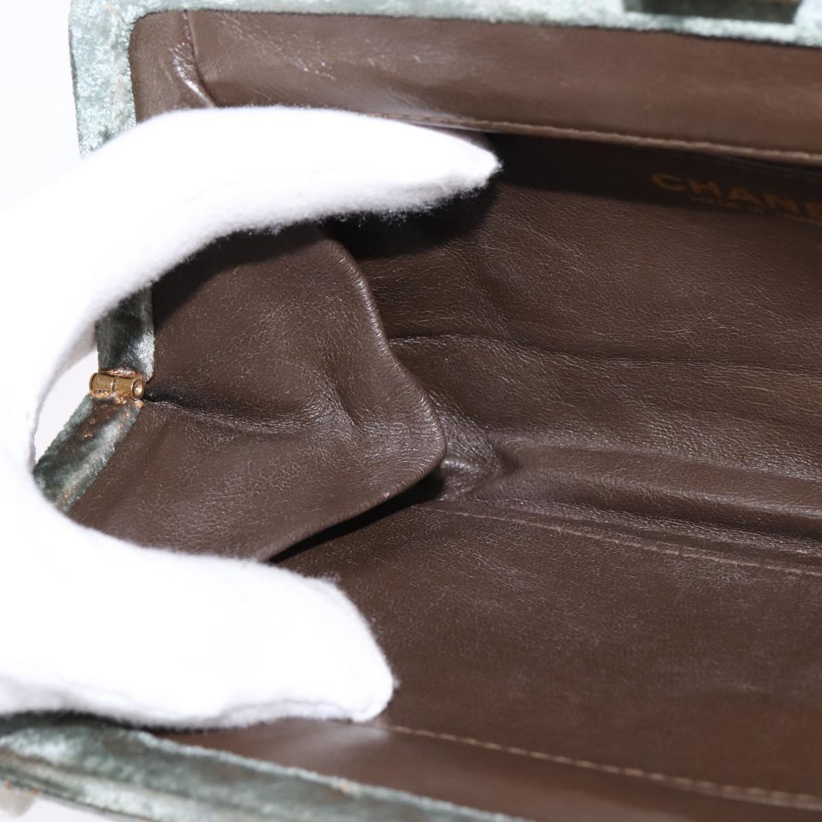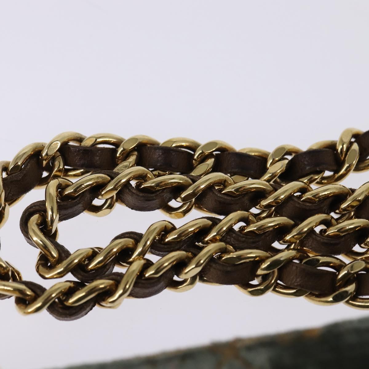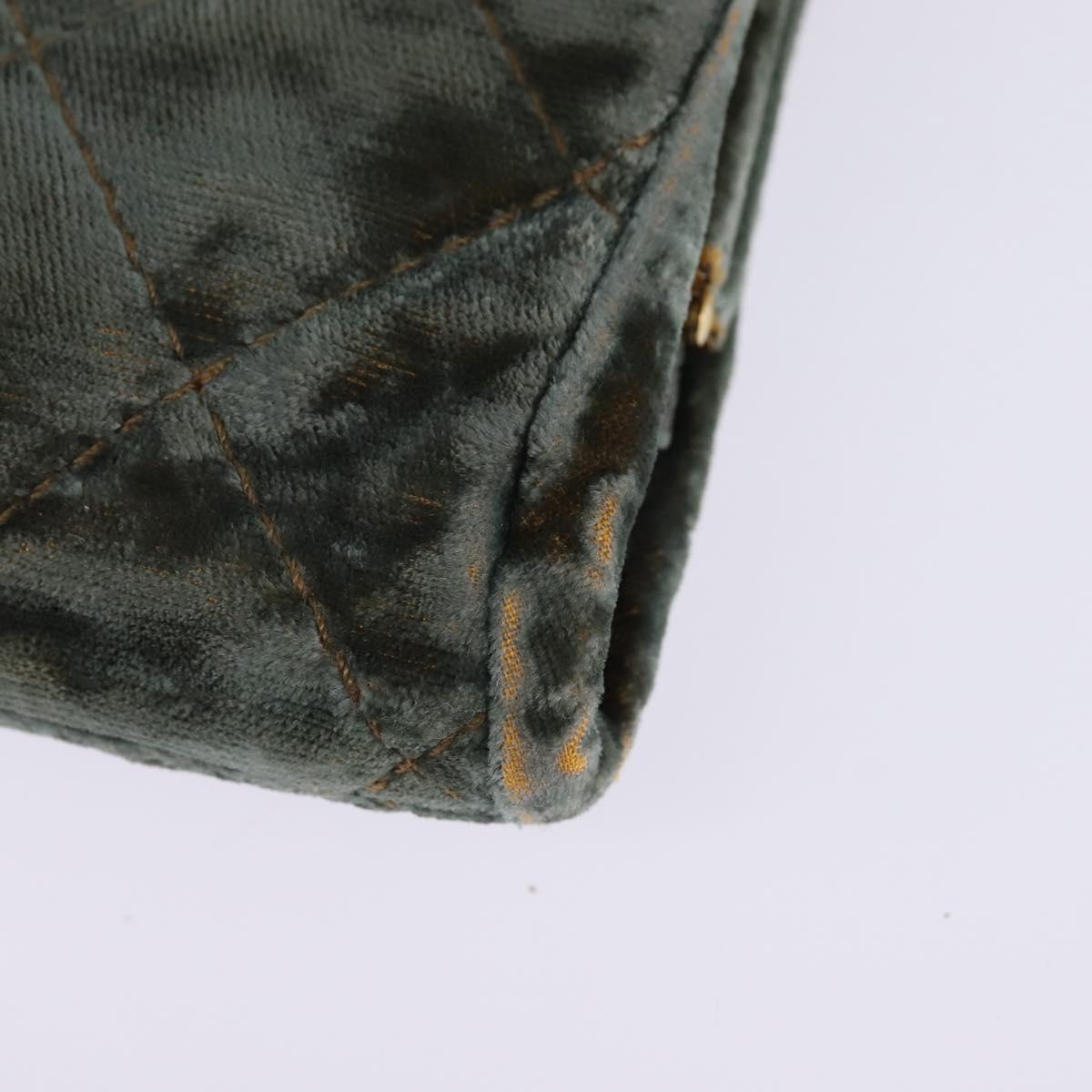 CHANEL Matelasse Clutch Bag Velor Green Gold CC Auth 142939