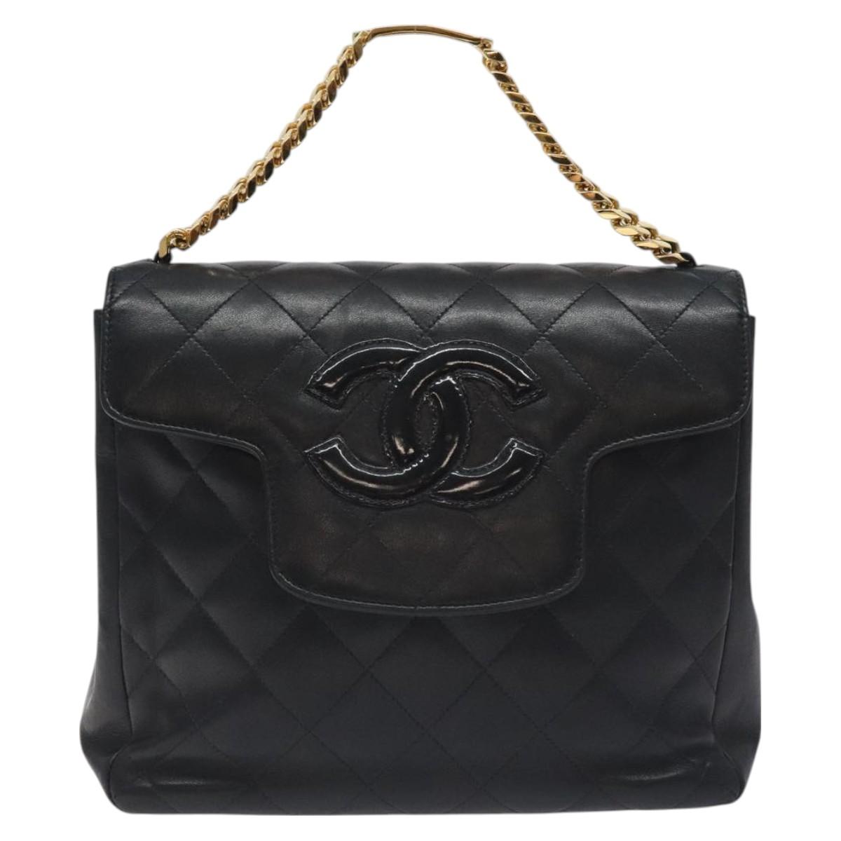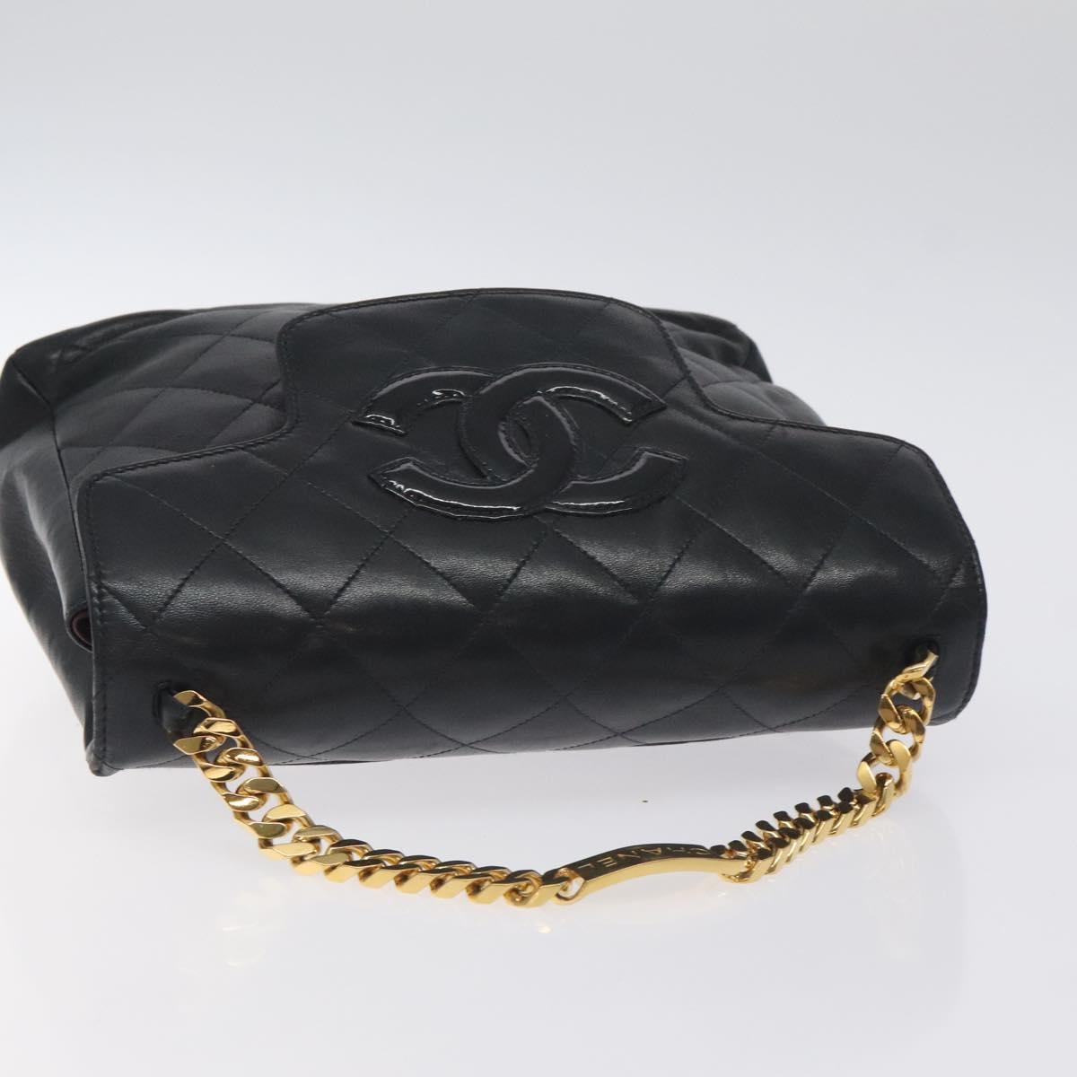 CHANEL Matelasse COCO Mark Chain Hand Bag Lamb Skin Black Gold CC Auth 129531V
